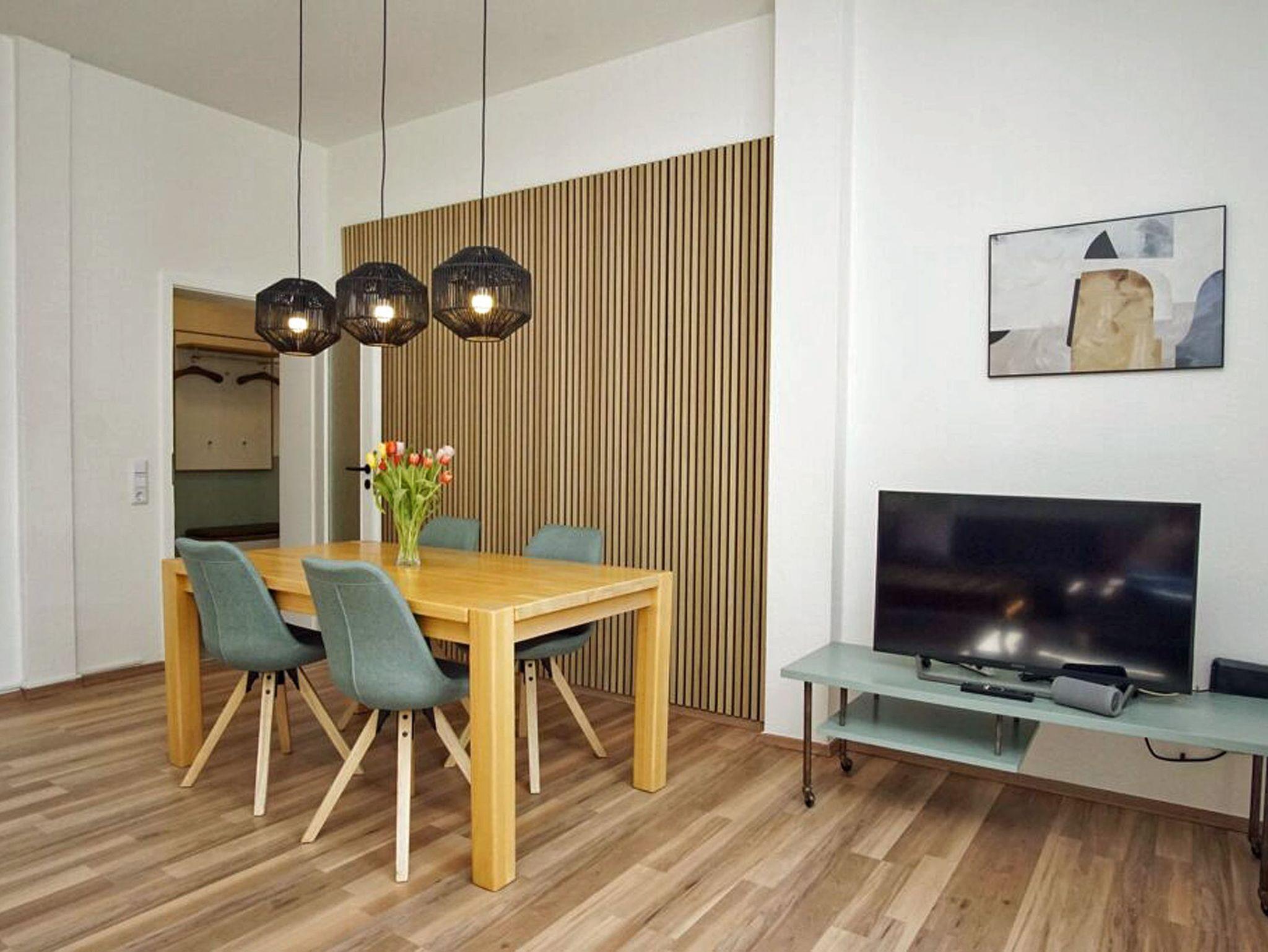 Als Gast erwartet Sie ein Schlafzimmer, ein Wohnzimmer, eine Essdiele mit einem großen Tisch, Alle Zimmer haben Fenster,