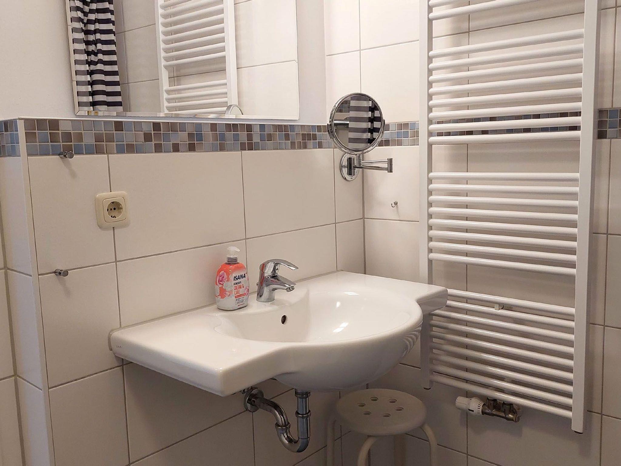 Diese freundliche Wohnung ist aufgeteilt in einen Wohnraum mit zwei Terrassen und integrierter Küchenzeile, ein Schlafzimmer und ein Duschbad mit Waschtisch und WC. Das Wohnzimmer begrüßt Sie mit einem Schlafsofa und Sessel sowie Flachbild-TV. Das geräumige Schlafzimmer verfügt über ein Doppelbett (1,80m x 2m) sowie einen Kleiderschrank. Die Küchenzeile ist mit Backofen, Geschirrspüler, Cerankochfeld, Kühlschrank mit kleinem Gefrierfach, Cerankochfeld, Microwelle, Kaffeemaschine, Wasserkocher und Toaster ausgestattet. Highlights: Kostenfreies WLAN sowie ein frei wählbarer PKW-Stellplatz direkt am Haus. Haustiere sind in dieser Wohnung herzlich willkommen.