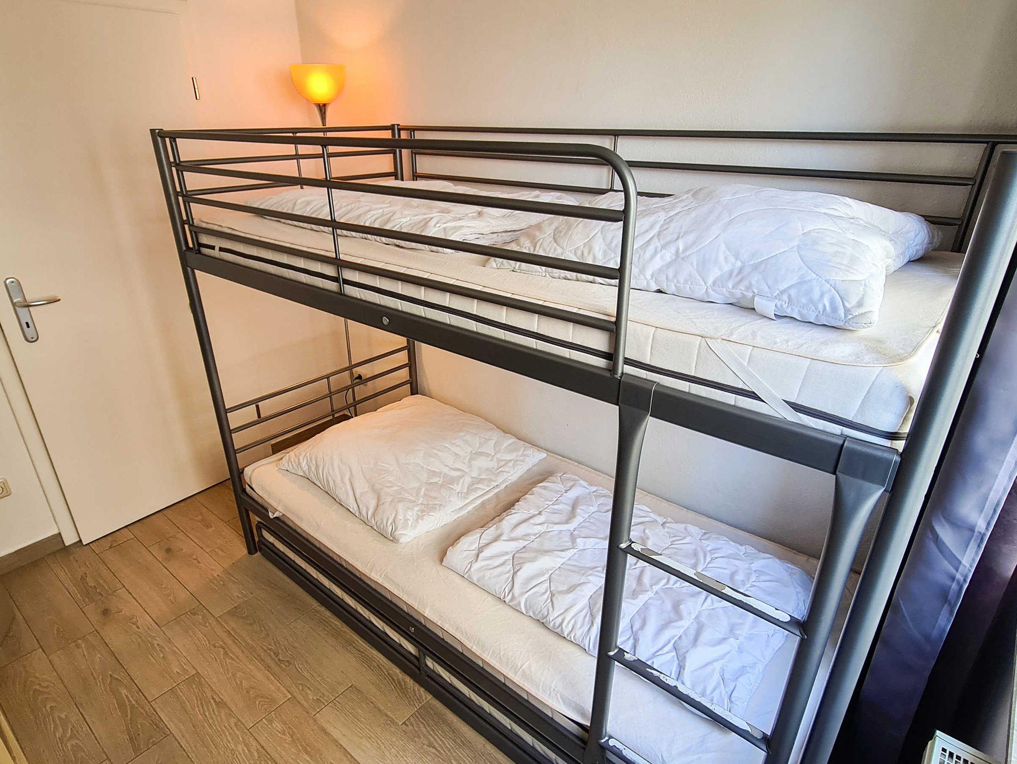 * Ruhige, lichtdurchflutete 3-Zimmerwohnung mit 2 separaten Schlafräumen (ein großes Schlafzimmer mit Doppelbett, ein kleineres Zimmer mit Doppelstockbett und drittem Ausziehbett), Wohnzimmer und Terrasse mit Seeblick.