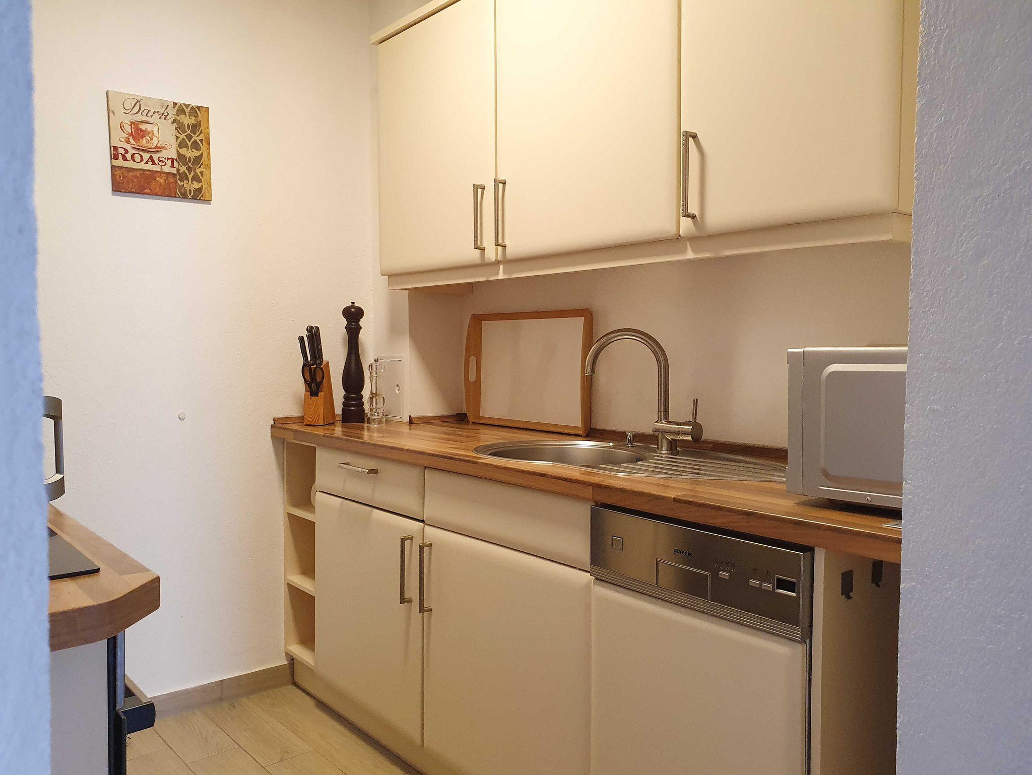 * Küche mit Cerankochfeld, Backofen, Kühlgefrierkombination, Spüle und Geschirrspüler, Kaffeemaschine, Wasserkocher, Eierkocher und vieles mehr