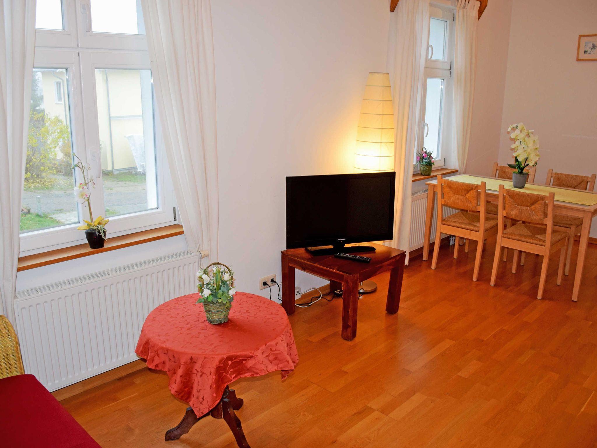 Wohnfläche ca. 35 m² für max. 2 Personen sowie einem Kleinkind bis 3 Jahren. Sollten Sie ein KInderreisebett wünschen, bitten wir Sie dieses bei Buchung mit anzugeben. Der Wohnraum ist ausgestattet mit ausziehbarer Couch, Couchtisch, Flat-TV 32, Esstisch mit 4 Stühlen.