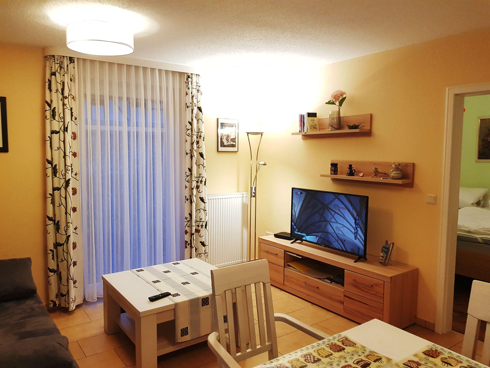 Diese schöne 2 Raumwohnung mit Terrasse befindet sich in einem Haus mit mehreren Ferienwohnungen. Direkt am Haus befindet sich Ihr Parkplatz. Für Ihre Fahrräder ist ein abschliesbarer Raum vorhanden.