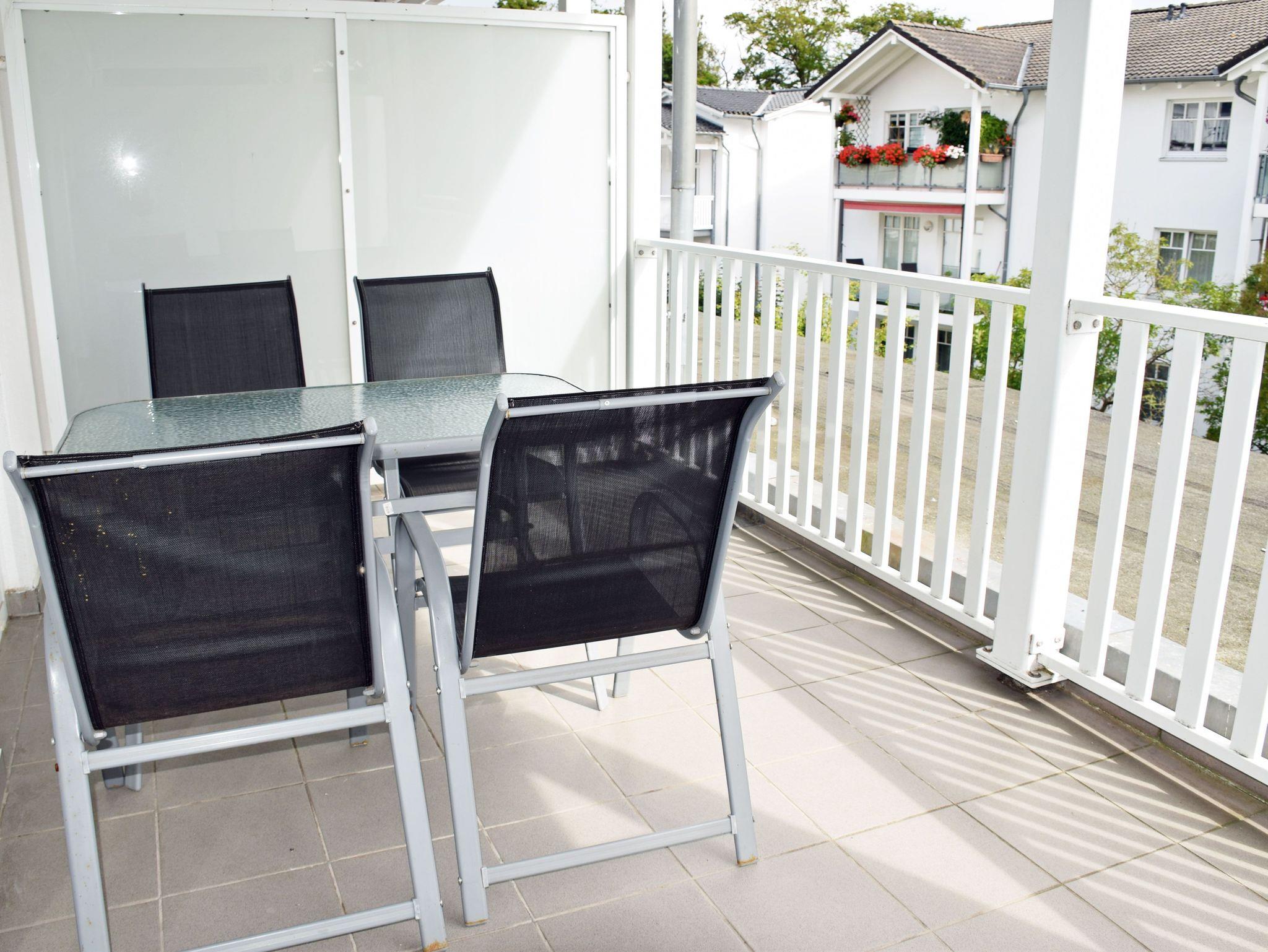 Der schöne Balkon mit Gartenmöbeln lädt zu gemütlichen Stunden ein. Hier können Sie die Abende bei einem Glas Wein ausklingen lassen und jederzeit die gute Ostseeluft und Sonne auf Rügen genießen.