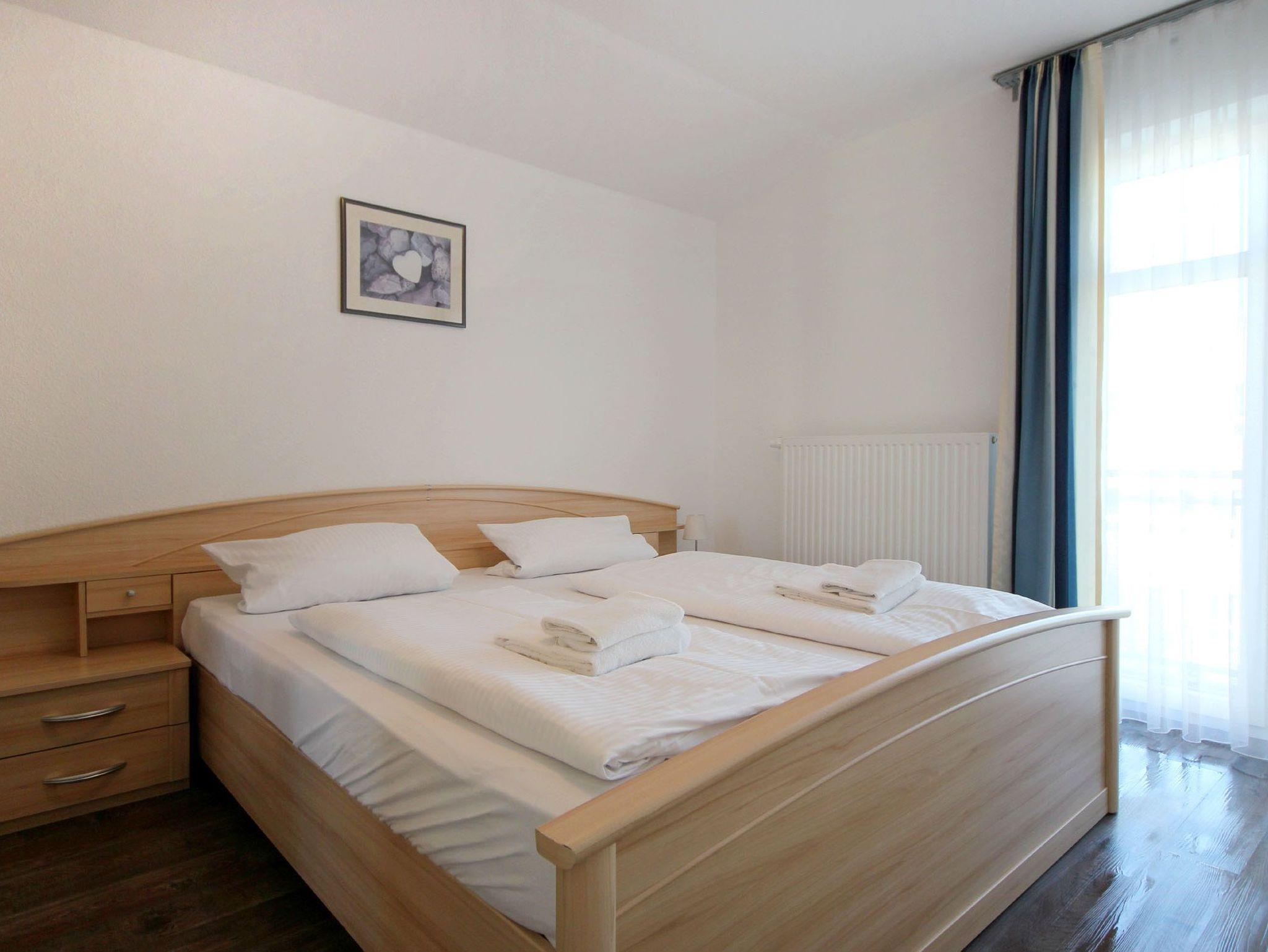 Diese freundliche Wohnung ist aufgeteilt in einen Wohnraum mit Balkon und integrierter Küchenzeile, ein Schlafzimmer ebenso mit Zugang zum Balkon und ein Duschbad mit Waschtisch und WC. Das Wohnzimmer begrüßt Sie mit einem Schlafsofa und Sessel sowie Flachbild-TV. Das Schlafzimmer verfügt über ein Doppelbett (1,80m x 2m) sowie einen Kleiderschrank. Die Küchenzeile ist mit Backofen, Geschirrspüler, Cerankochfeld, Kühlschrank mit kleinem Gefrierfach, Cerankochfeld, Mikrowelle, Kaffeemaschine, Wasserkocher und Toaster ausgestattet. Highlights: Kostenfreies WLAN sowie ein frei wählbarer PKW-Stellplatz direkt am Haus.