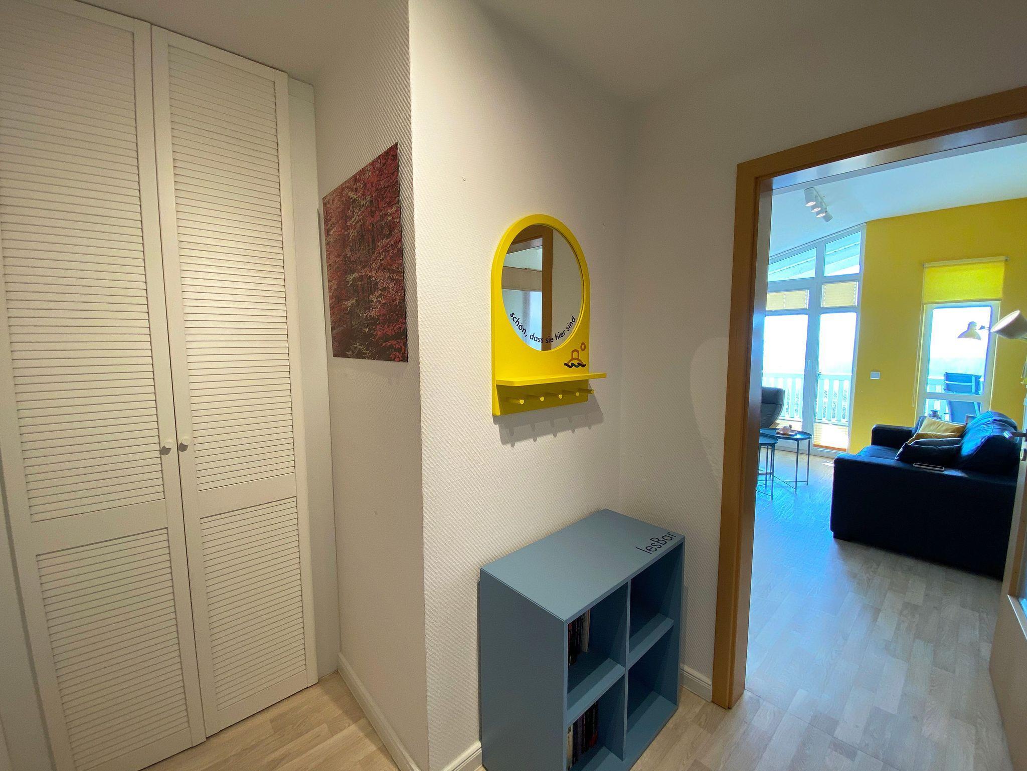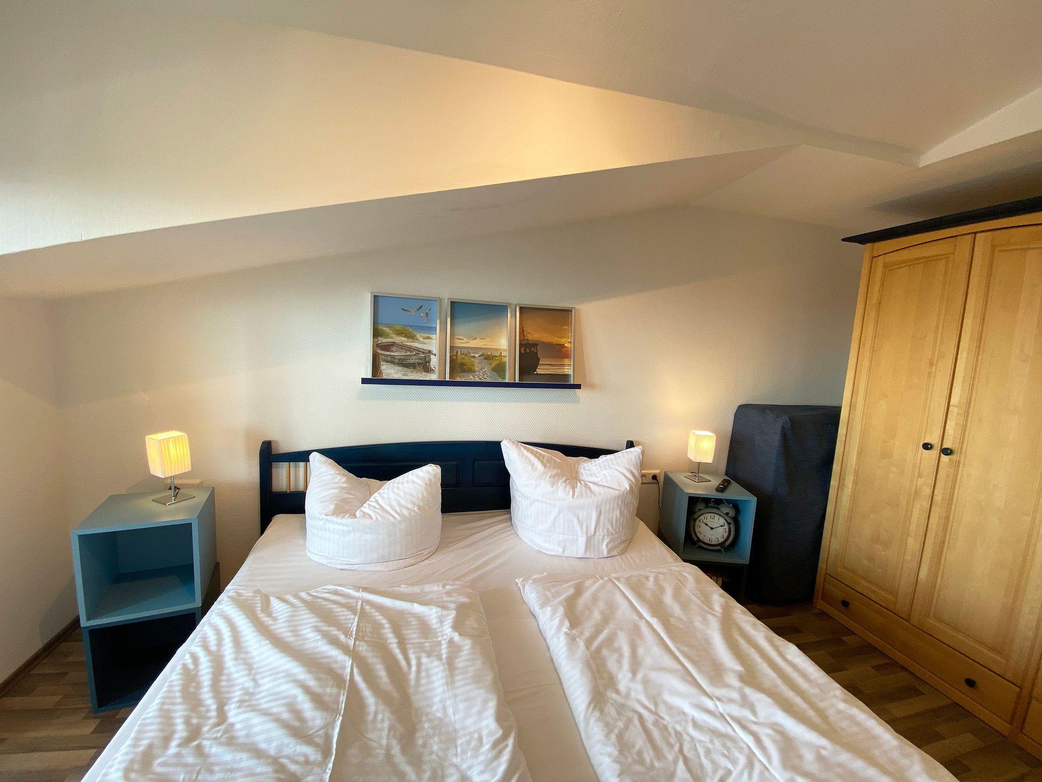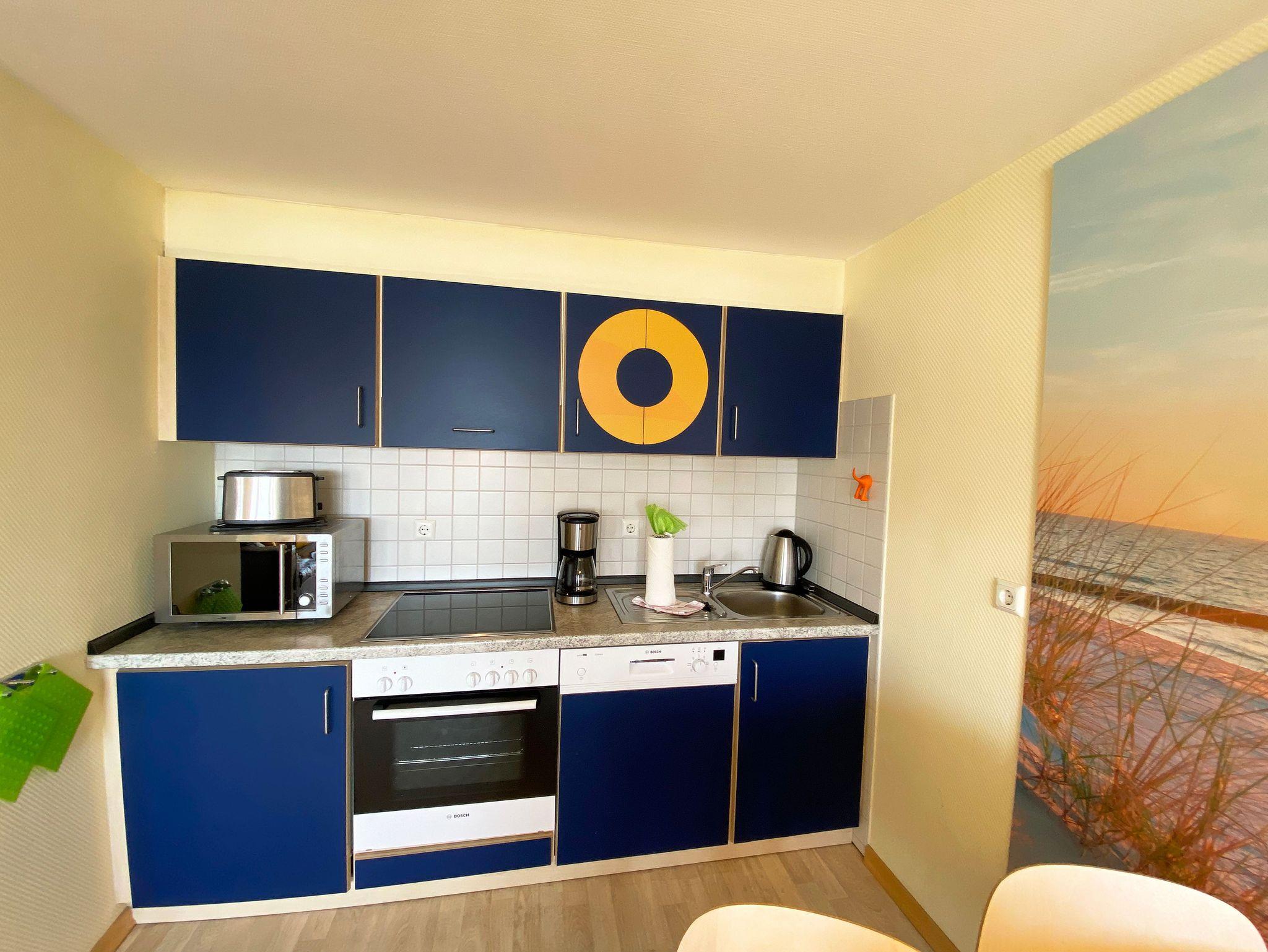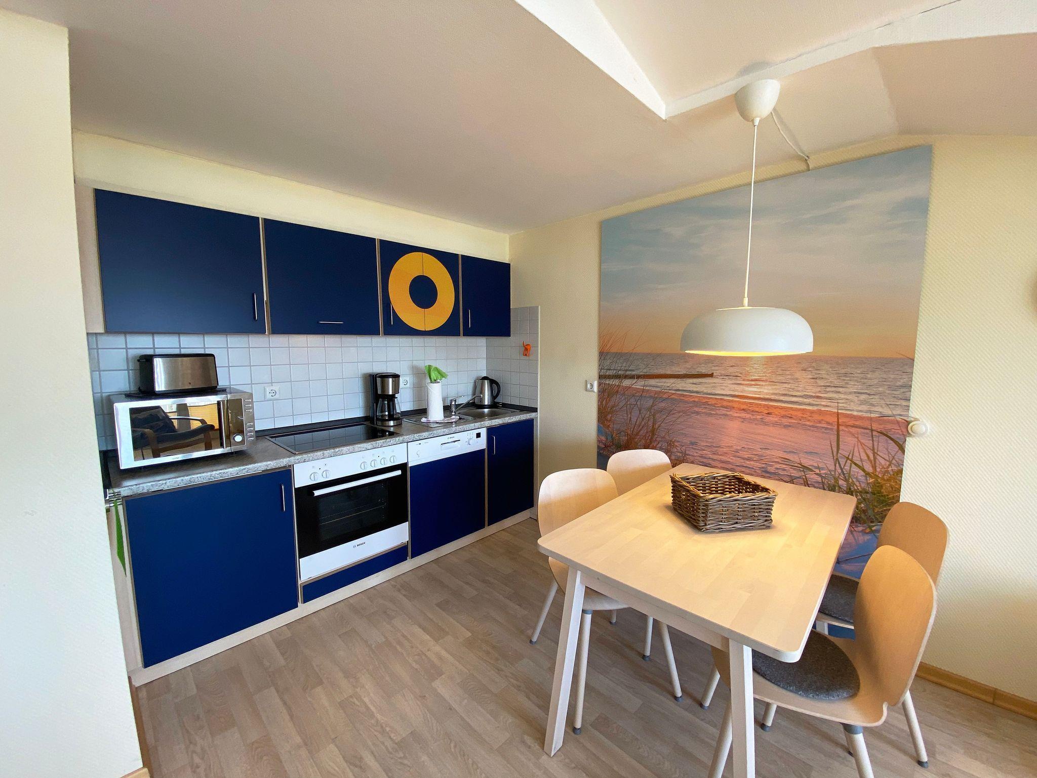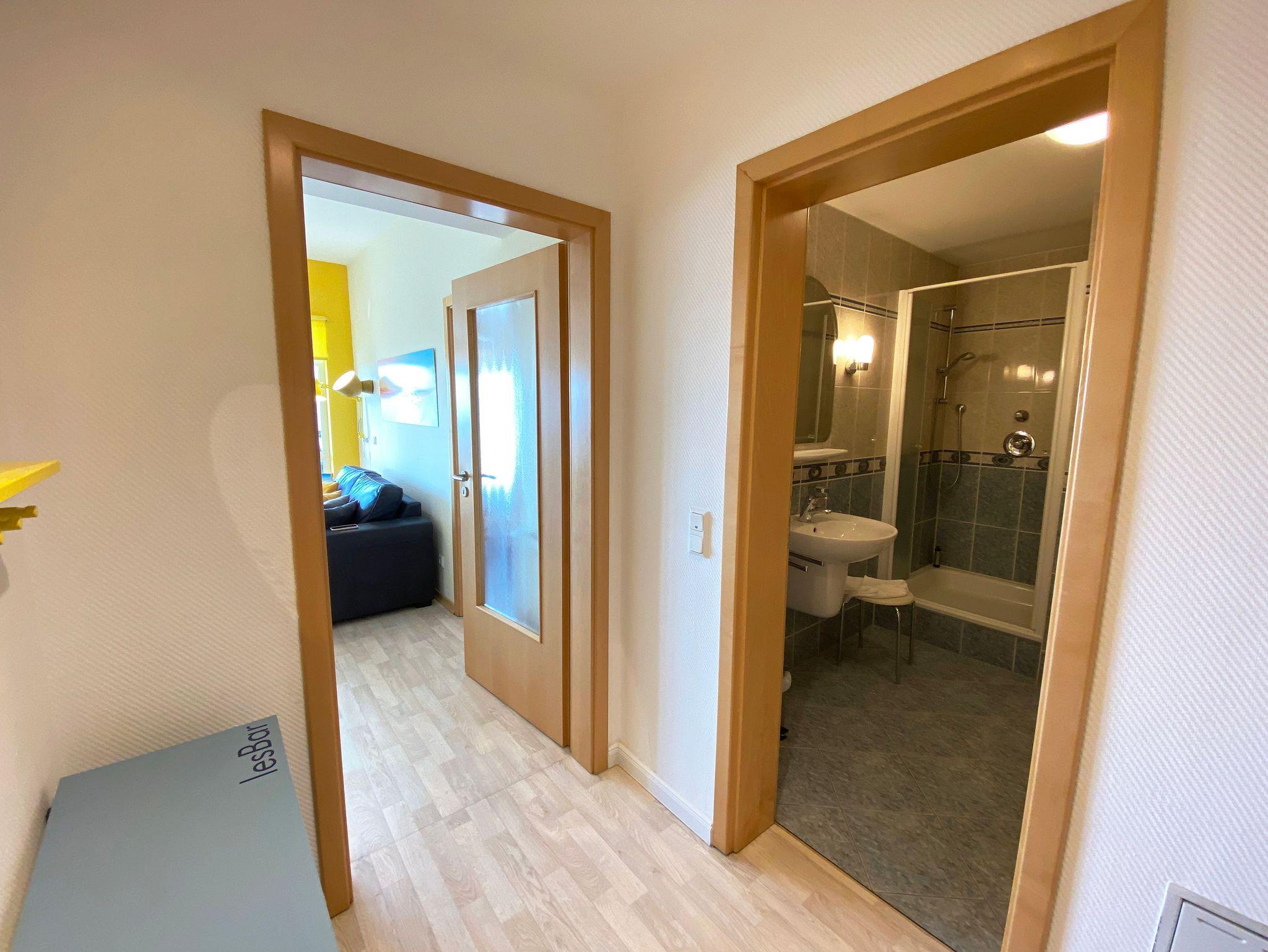 Unsere komfortable Nichtraucherwohnung von ca. 50 qm für max. 2 Erwachsene und 1 Kleinkind bis 3 Jahre im Kinderreisebett verfügt über ein Schlafzimmer mit Doppelbett, Nachttischkonsolen und Kleiderschrank. Der Wohnbereich ist mit einer Sitzecke, Sessel, Leselampe, TV-Board, Smart-TV/Mini-Stereo-Anlage und DVD-Player eingerichtet. Das Badezimmer ist mit einer Dusche, WC und Fön ausgestattet. Die Küchenzeile bietet einen Esstisch und 4 Stühlen, Geschirrspüler, Cerankochfeld mit Backofen, Toaster, Kaffeemaschine, Wasserkocher und diverse Küchenutensilien. Vom bestuhlten Balkon aus können Sie den Blick auf die Ostsee genießen. Insektenschutzgitter sind vorhanden. WLAN ist für Sie inklusive nutzbar!! Kinderreisebett (ohne Matratze und Bett-Inlett) und Hochstuhl können für unsere kleinen Gäste gegen eine Gebühr gestellt werden. Ein PKW-Stellplatz (Nr. 08) sowie eine Unterstellmöglichkeit für Ihre Fahrräder ist am Haus vorhanden. 2 Haustiere sind gegen eine Gebühr gern gesehene Gäste. Die Erstausstattung eines Wäschepaketes (komplette Bettwäsche, 1 Duschhandtuch, 1 kleines Handtuch) können Sie bis 14 Tage gegen einen Aufpreis dazu buchen oder durch eigene ergänzen. Ab 2 gebuchten Paketen erhalten Sie einmalig 1 Geschirrhandtuch und 1 Duschvorleger hinzu.