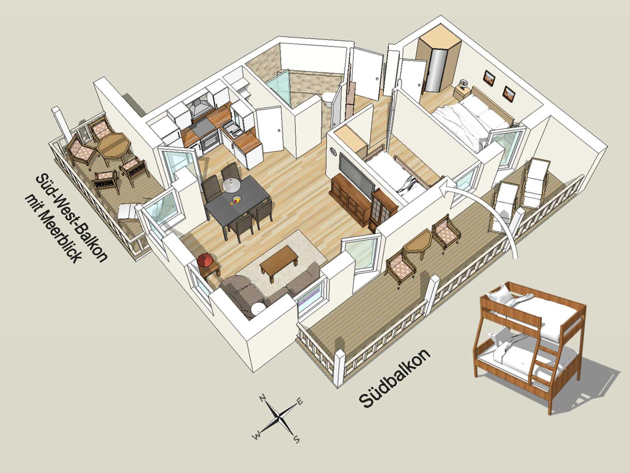 Südbalkon und Westbalkon mit Meerblick