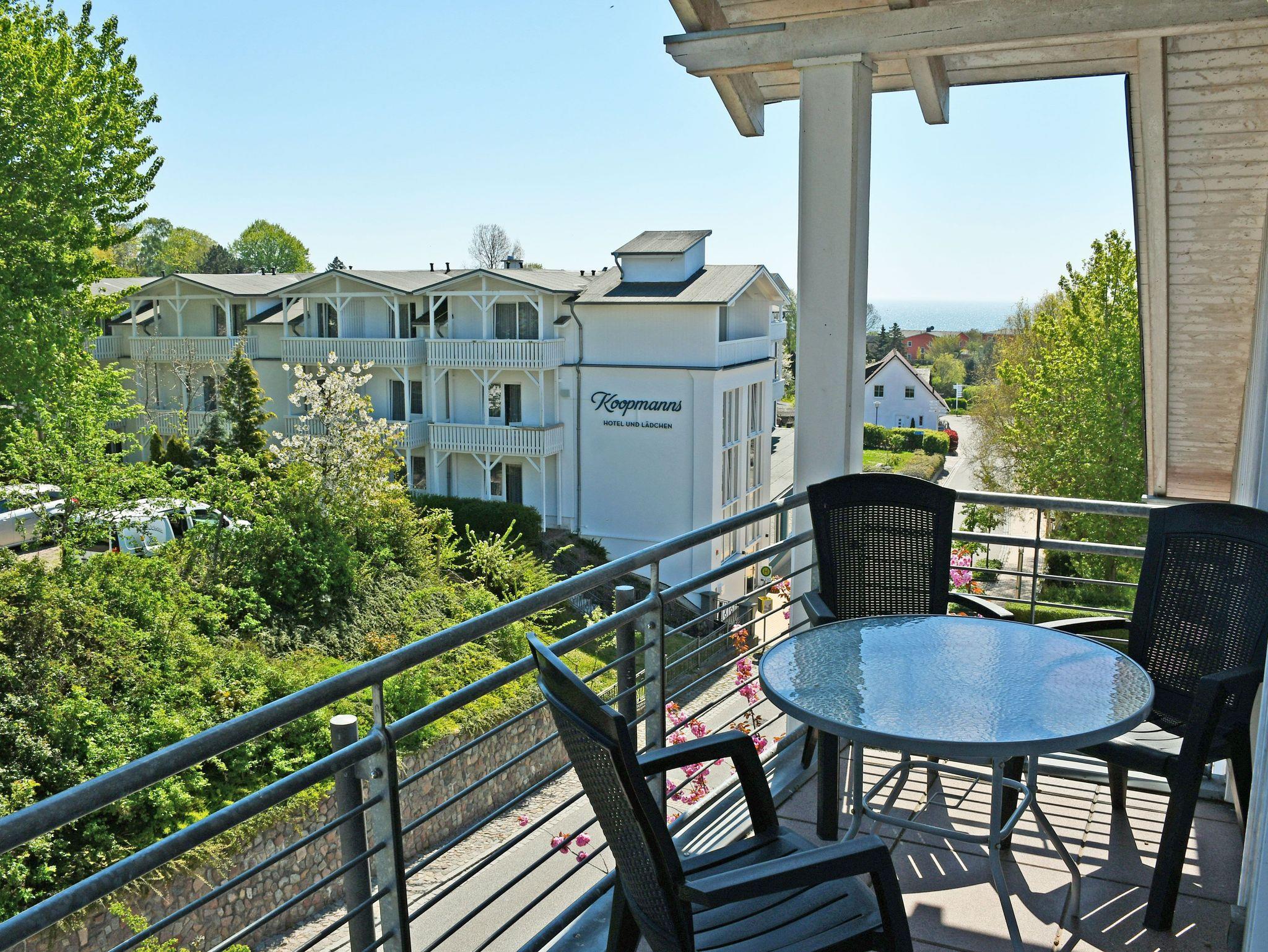Der schöne Balkon mit Gartenmöbeln lädt zu gemütlichen Stunden ein. Hier können Sie die Abende bei einem Glas Wein ausklingen lassen und jederzeit die gute Ostseeluft und Sonne auf Rügen genießen.