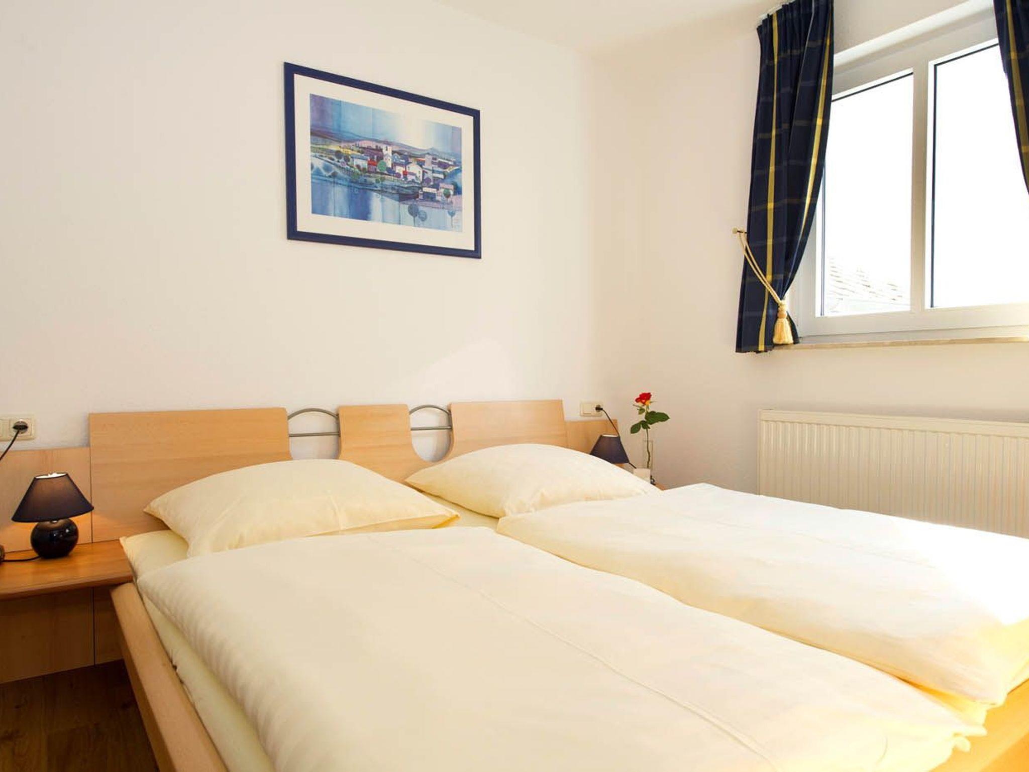 Mit Wohnraum, Küchenzeile, 1 Schlafzimmer und Bad mit WC sind die Ferienwohnungen für 4 Erwachsene und ein Kind im Kinderreisebett bis 3 Jahre modern und komfortabel eingerichtet. Ein kleines Kinderreisebett sowie ein Hochstuhl können auf Wunsch kostenpflichtig zugebucht werden.