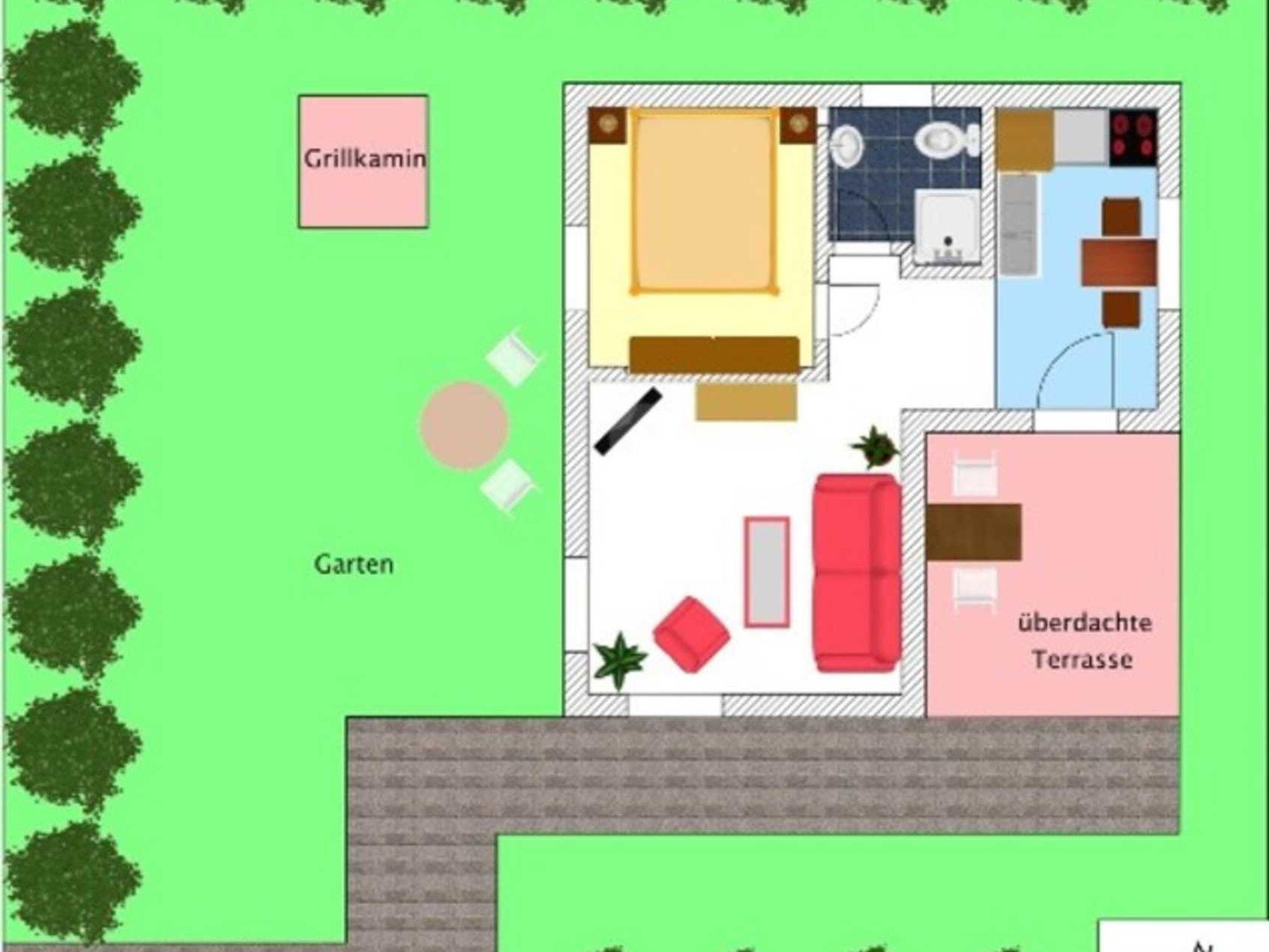 Auf der überdachten Terrasse stehen Gartenmöbel und ein Grill, der zu gemütlichen Stunden einlädt. Für Ihren PKW steht natürlich ein Stellplatz zur Verfügung.