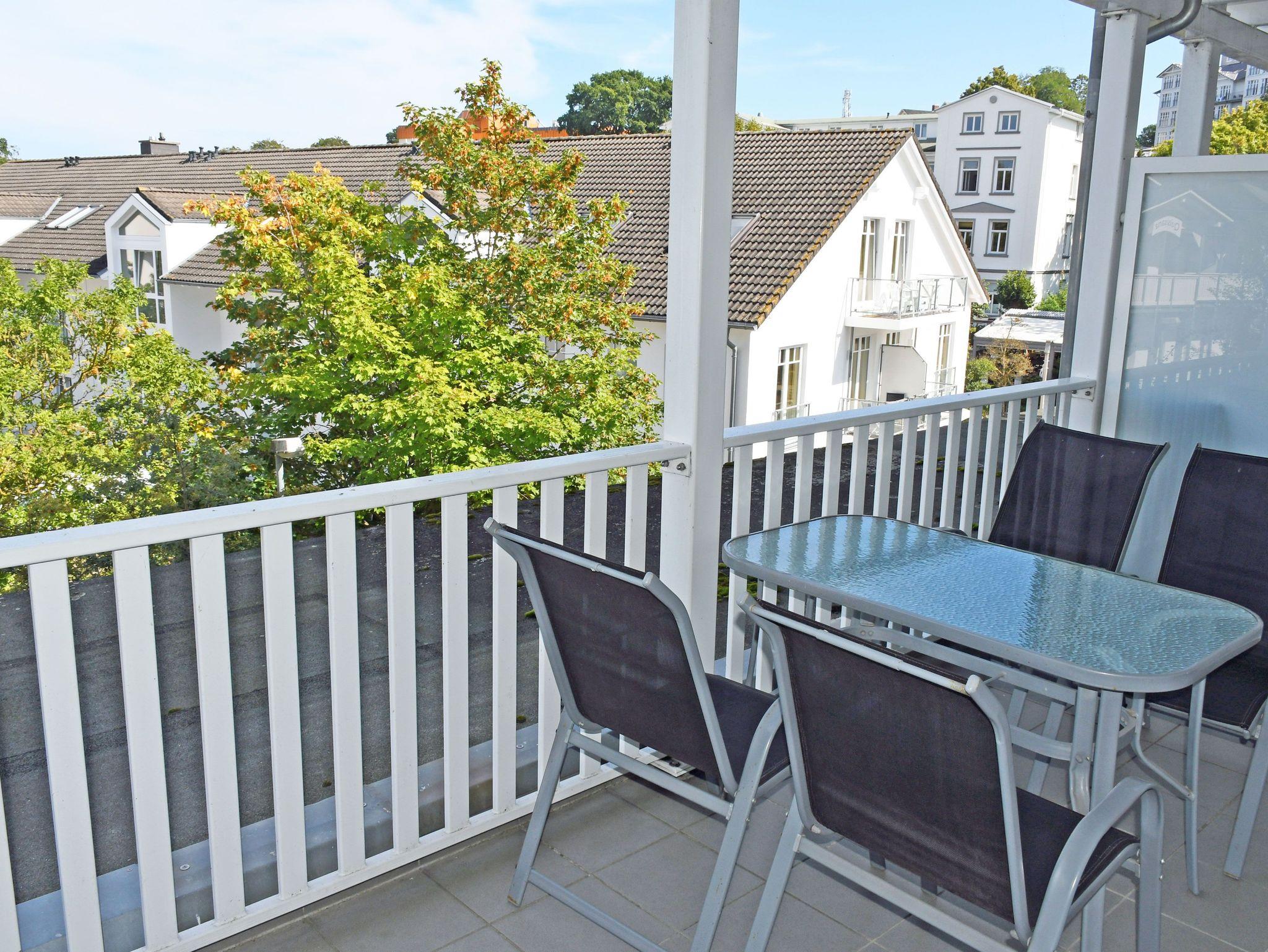 Modernes 2-Raum-Appartement mit Balkon, 300 m vom feinsandigen Strand im Ostseebad Göhren entfernt.