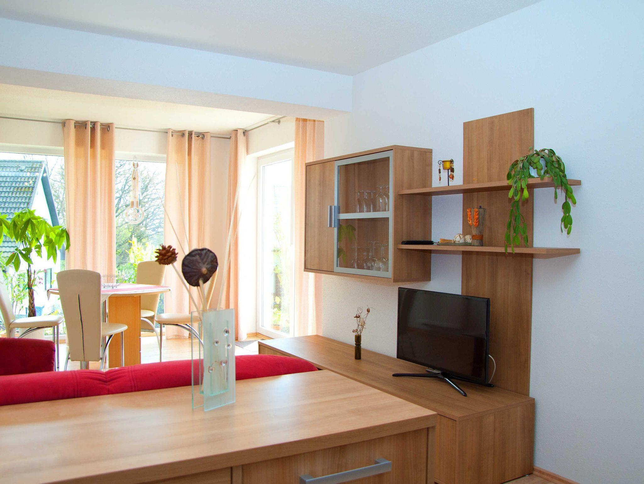 Moderne Ferienwohnung Strandkorb 4 in Göhren, nur 150 m vom feinsandigen Südstrand entfernt, mit Terrasse und kostenfreiem WLAN.
