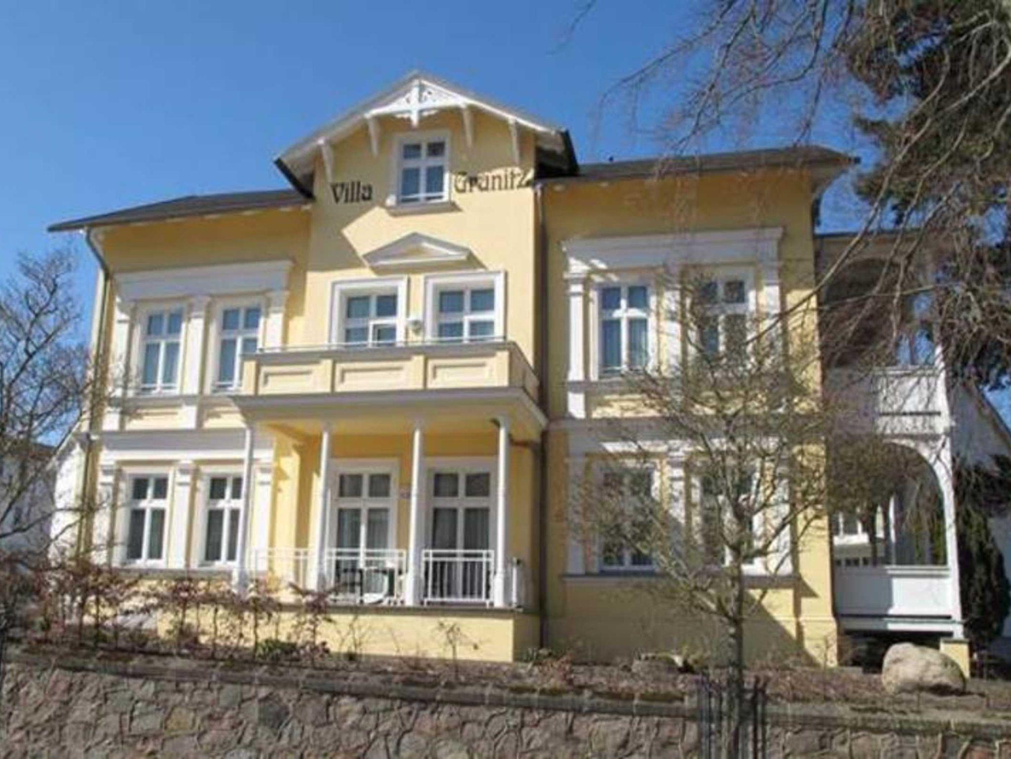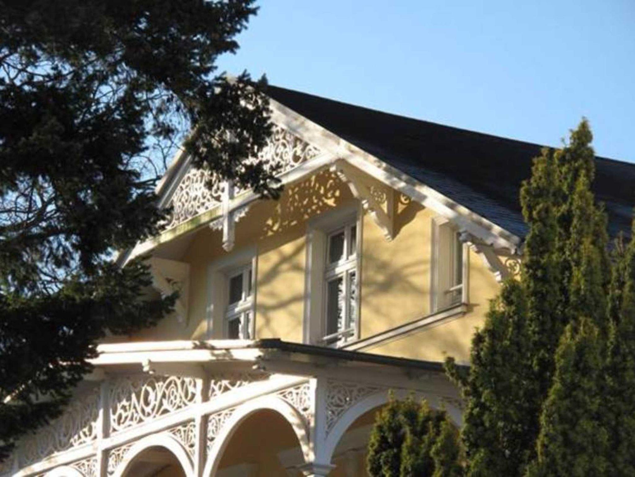 Gemütliche Ferienwohnung in der denkmalgeschützten Jugendstilvilla Granitz in Göhren, umgeben von Garten und mit Meerblick.
