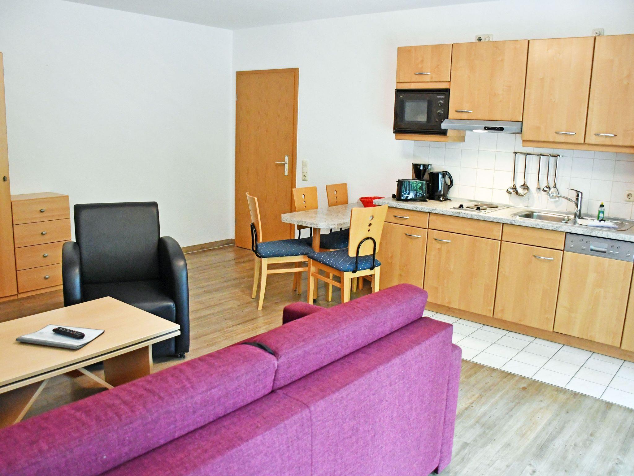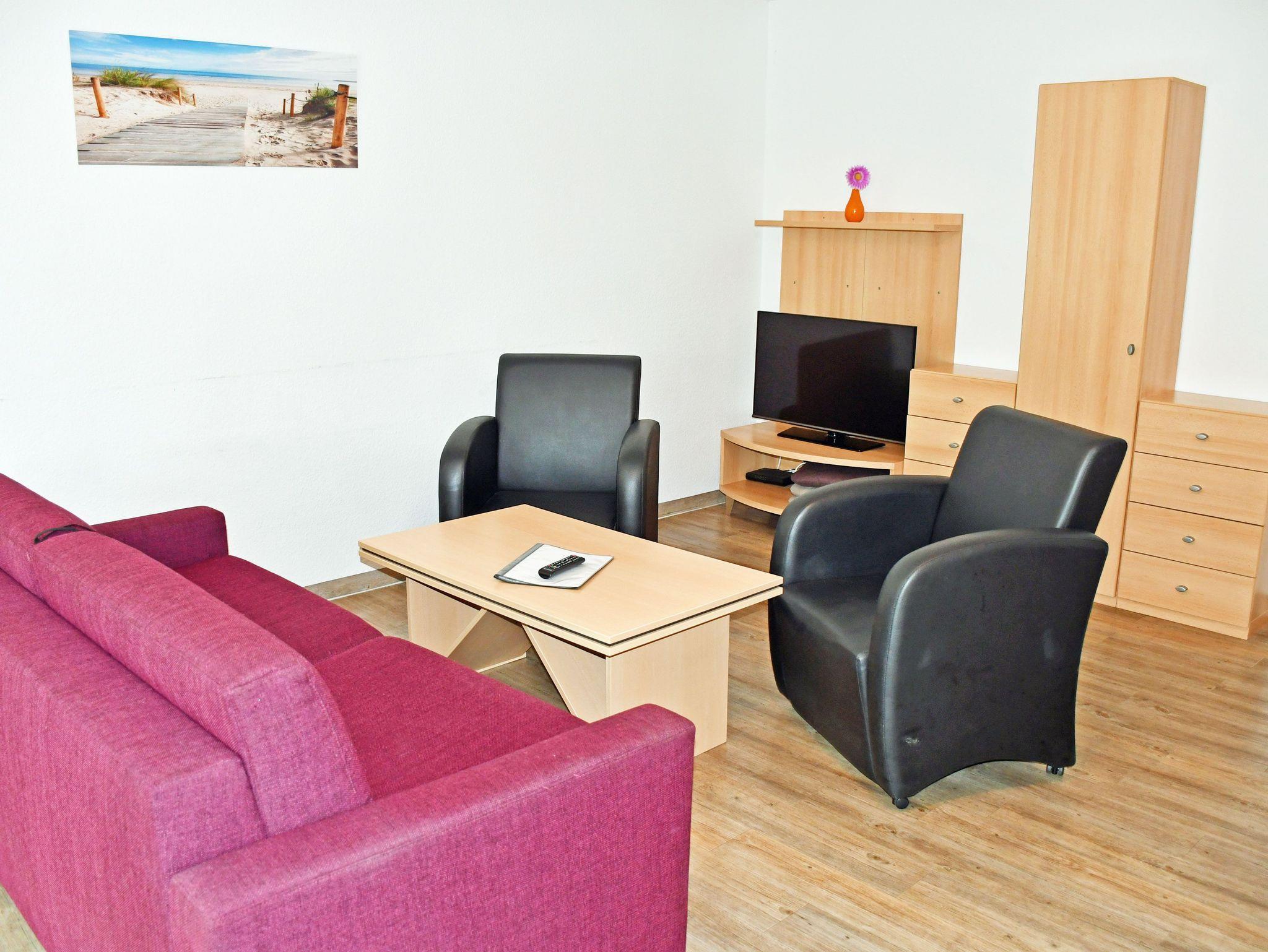 Unsere ruhig gelegenen, hellen und lichtdurchfluteten 2-Raum-Ferienwohnungen mit Balkon oder Terrasse sind wie folgt ausgestattet: