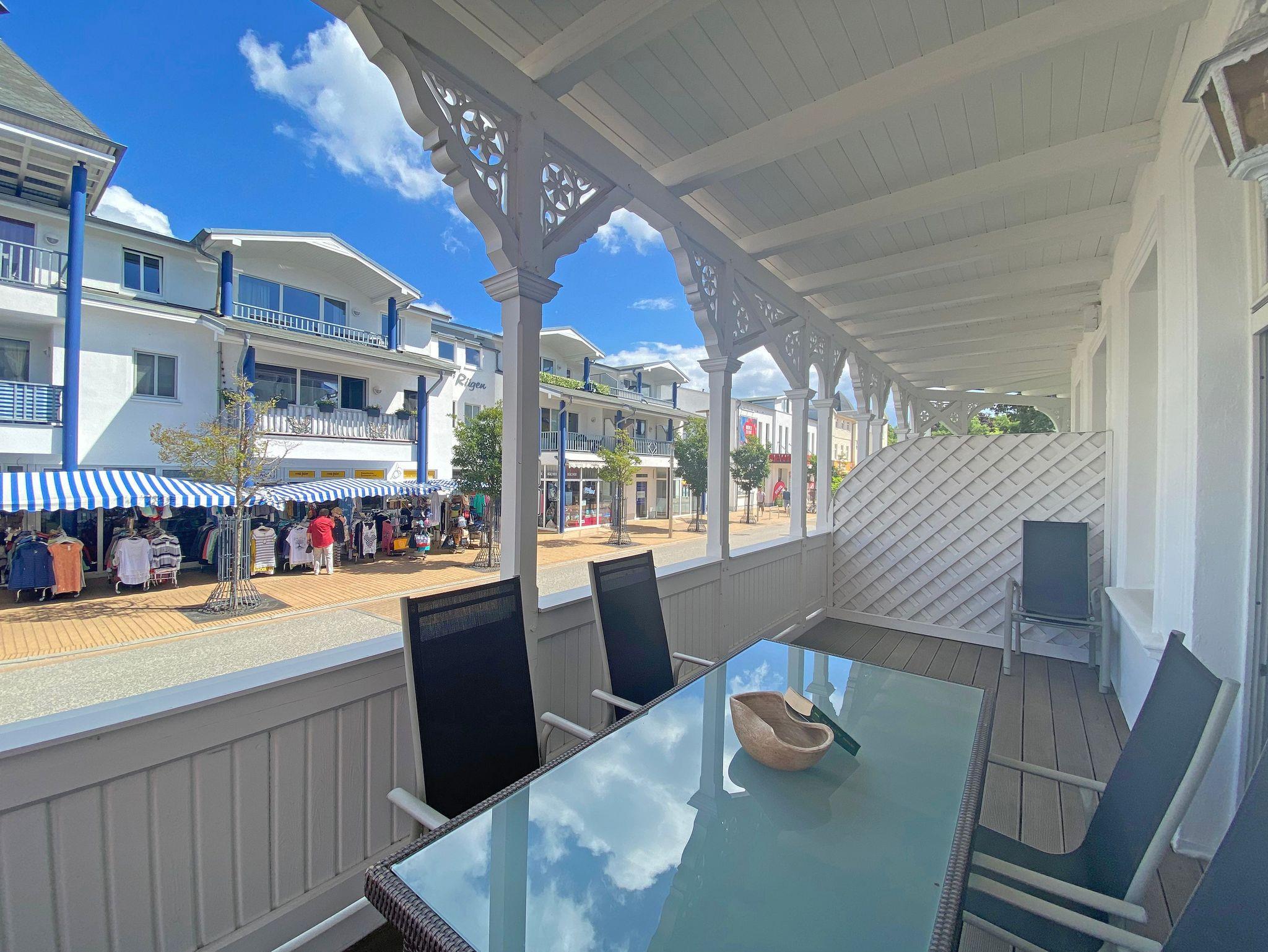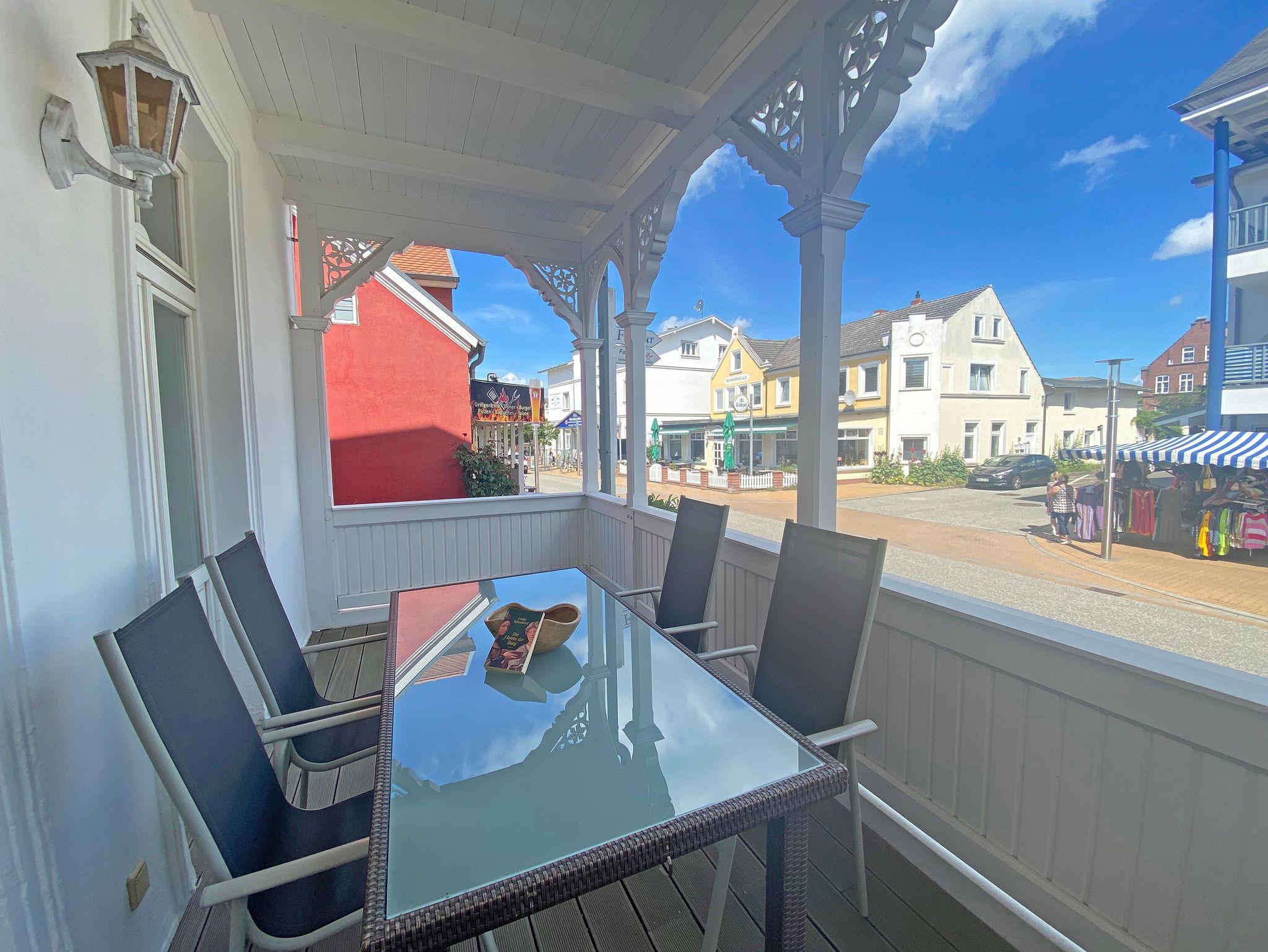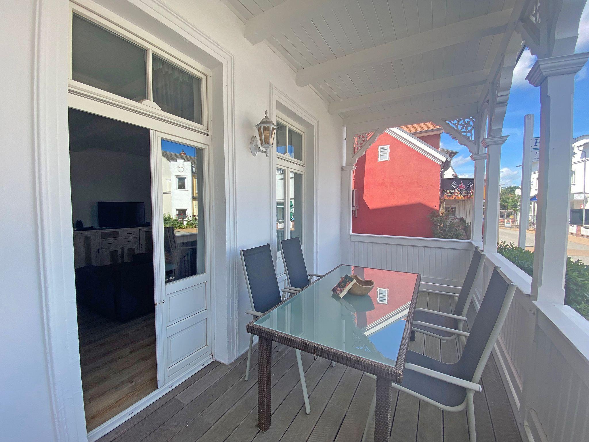 Modern eingerichtete Ferienwohnung mit Balkon im denkmalgeschützten Haus in Göhren, nahe Strand und Zentrum.