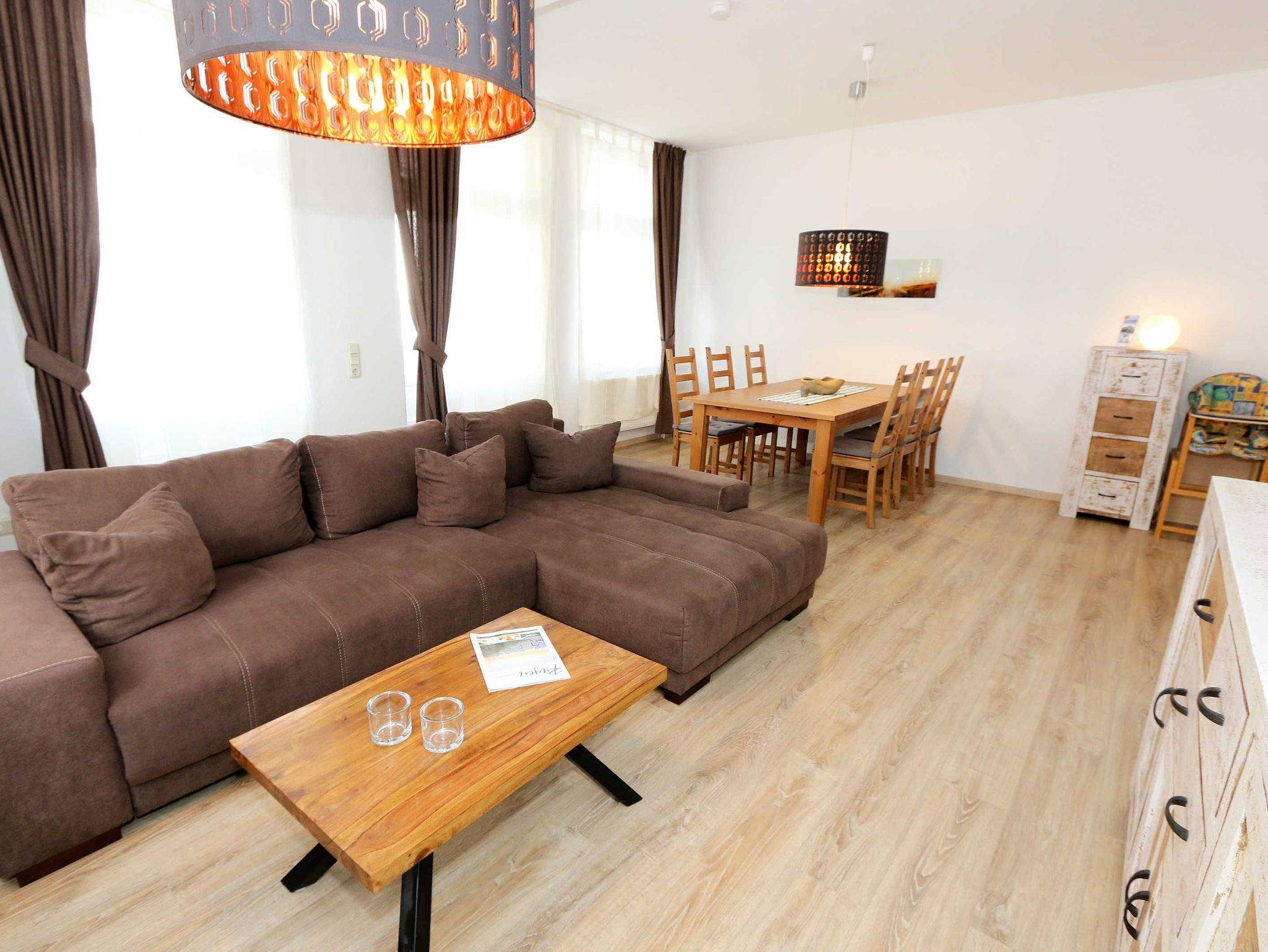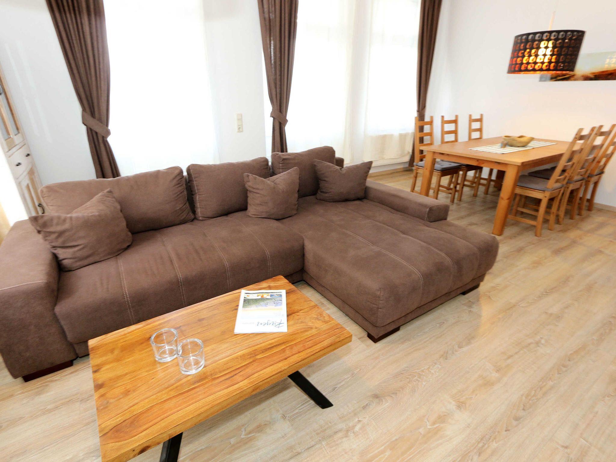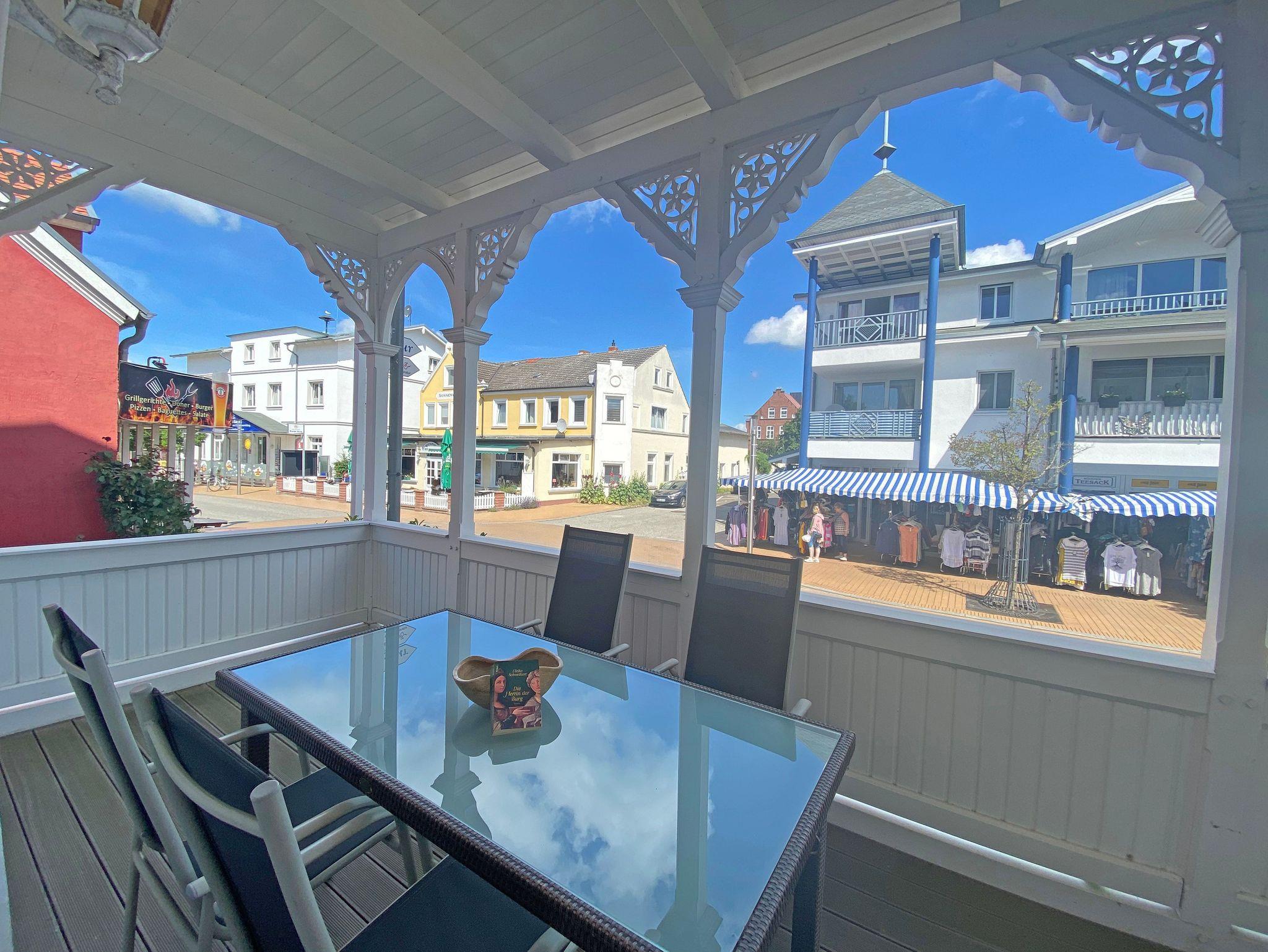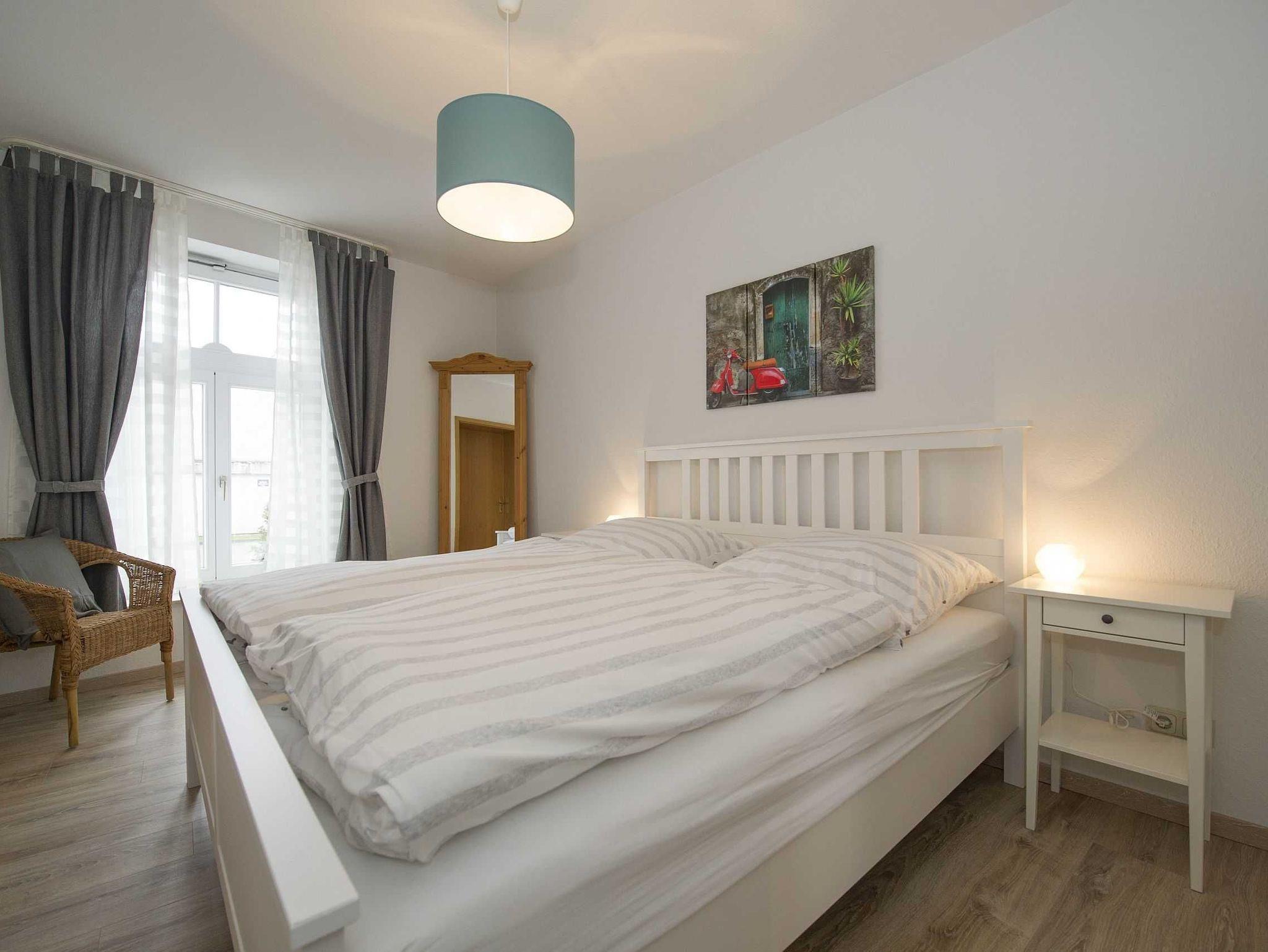 Modern eingerichtete Ferienwohnung mit Balkon im denkmalgeschützten Haus in Göhren, nahe Strand und Zentrum.