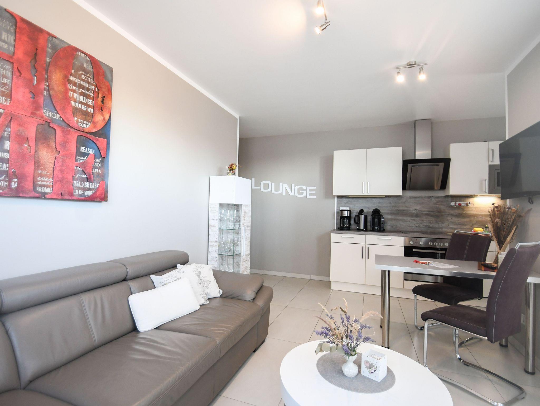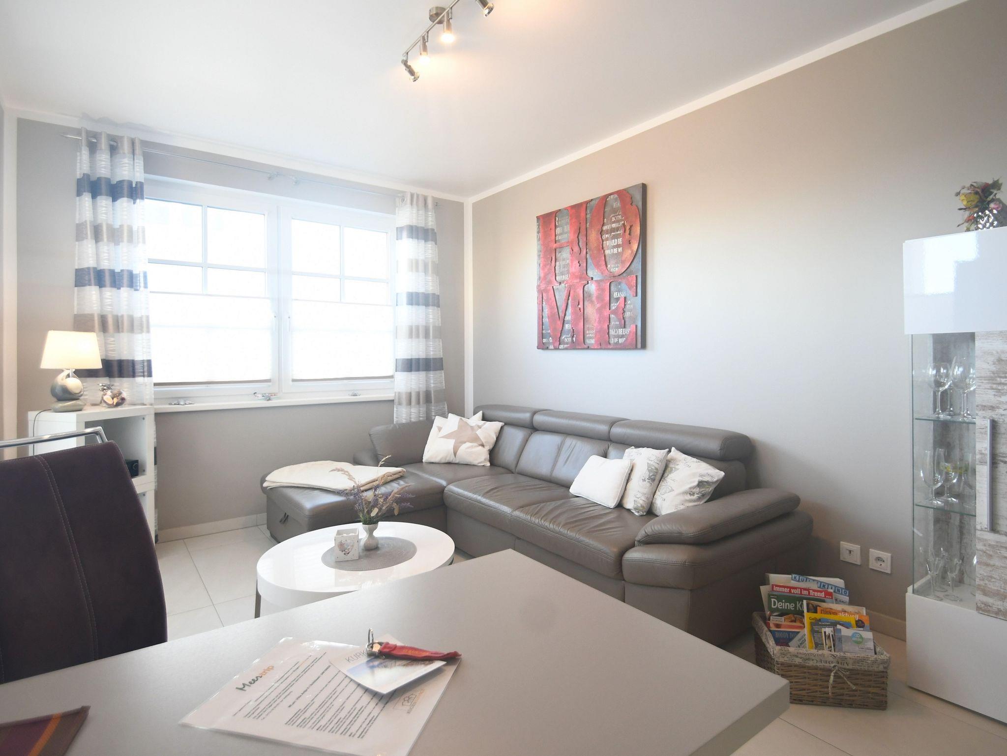 Unser modern und liebevoll eingerichtetes 4**** Nichtraucher-Ferienappartement mit teilweisem Meerblick (47 qm, 1 Wohnzimmer, 1 Schlafzimmer; max. 3 Erw., Internet WLAN) befindet sich in einem 2013 neu errichteten Appartementhaus mit viel Flair.