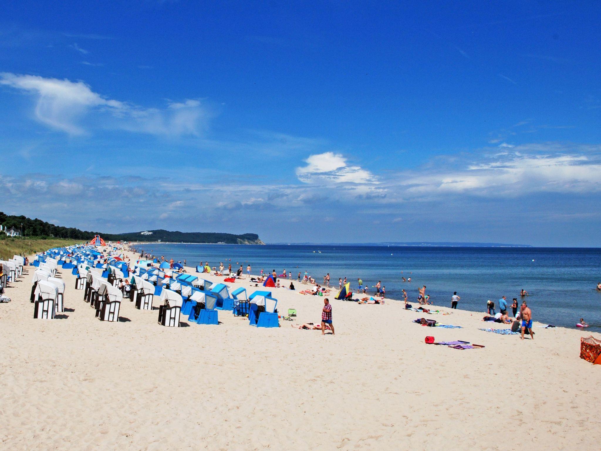 Der nur ca. 700 m entfernte feinsandige Badestrand mit seinen wunderschönen Aussichten auf die Ostsee und die Küste mit der Seebrücke versprechen einen einmaligen Urlaub auf Rügen. Den Strand erreicht man ganz gemütlich in wenigen Gehminuten ggf. auch mit einem Lift oder in noch kürzerer Zeit mit dem Fahrrad.