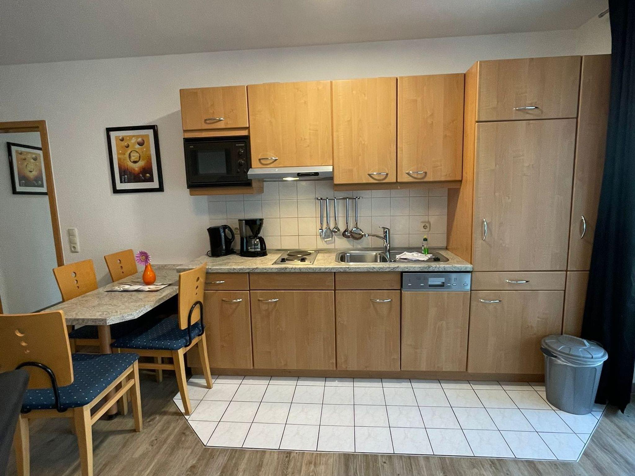 Unsere ruhig gelegenen, hellen und lichtdurchfluteten 2-Raum-Ferienwohnungen mit Balkon oder Terrasse sind wie folgt ausgestattet: