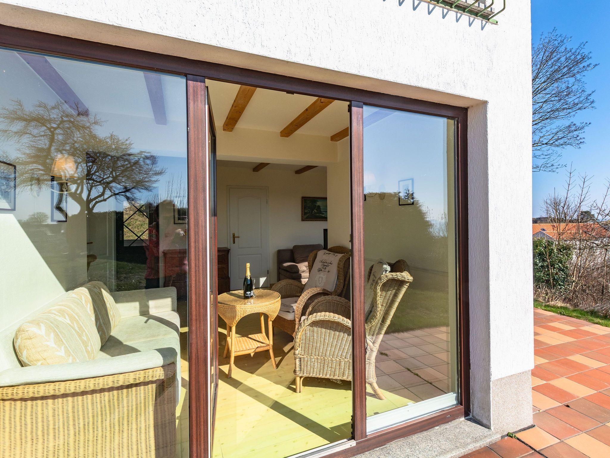 • Verandazimmer mit Korbmöbel, Ostsee- und Mönchgutblick
