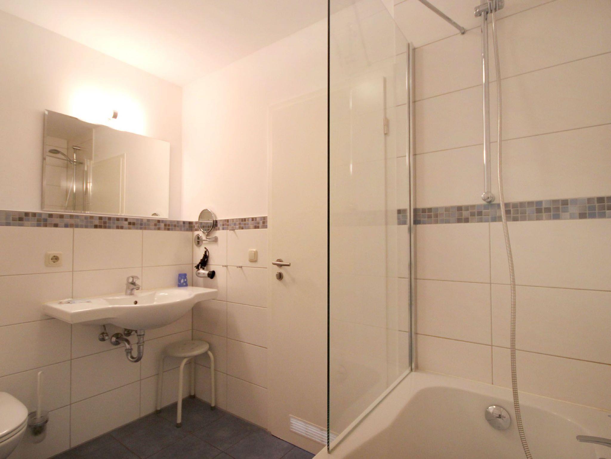 Diese freundliche Wohnung ist aufgeteilt in einen Wohnraum mit Balkon und integrierter Küchenzeile, zwei Schlafzimmer und ein Bad mit Badewanne, Waschtisch und WC. Das Wohnzimmer begrüßt Sie mit einem Schlafsofa und Sessel sowie Flachbild-TV. Das Hauptschlafzimmer verfügt über ein Doppelbett (1,80m x 2m), zusätzlichem Balkon sowie einen Kleiderschrank. Der zweite Schlafraum begrüßt Sie mit einem Etagenbett, Kleiderschrank und TV. Die Küchenzeile ist mit Backofen, Geschirrspüler, Cerankochfeld, Kühlschrank mit kleinem Gefrierfach, Cerankochfeld, Mikrowelle, Kaffeemaschine, Wasserkocher und Toaster ausgestattet. Highlights: Kostenfreies WLAN sowie ein frei wählbarer PKW-Stellplatz direkt am Haus.