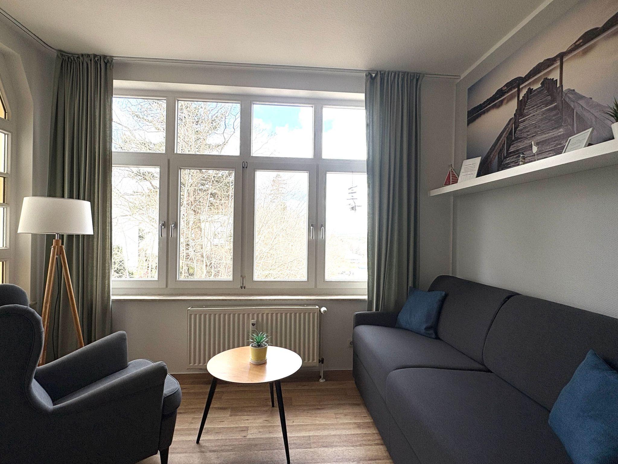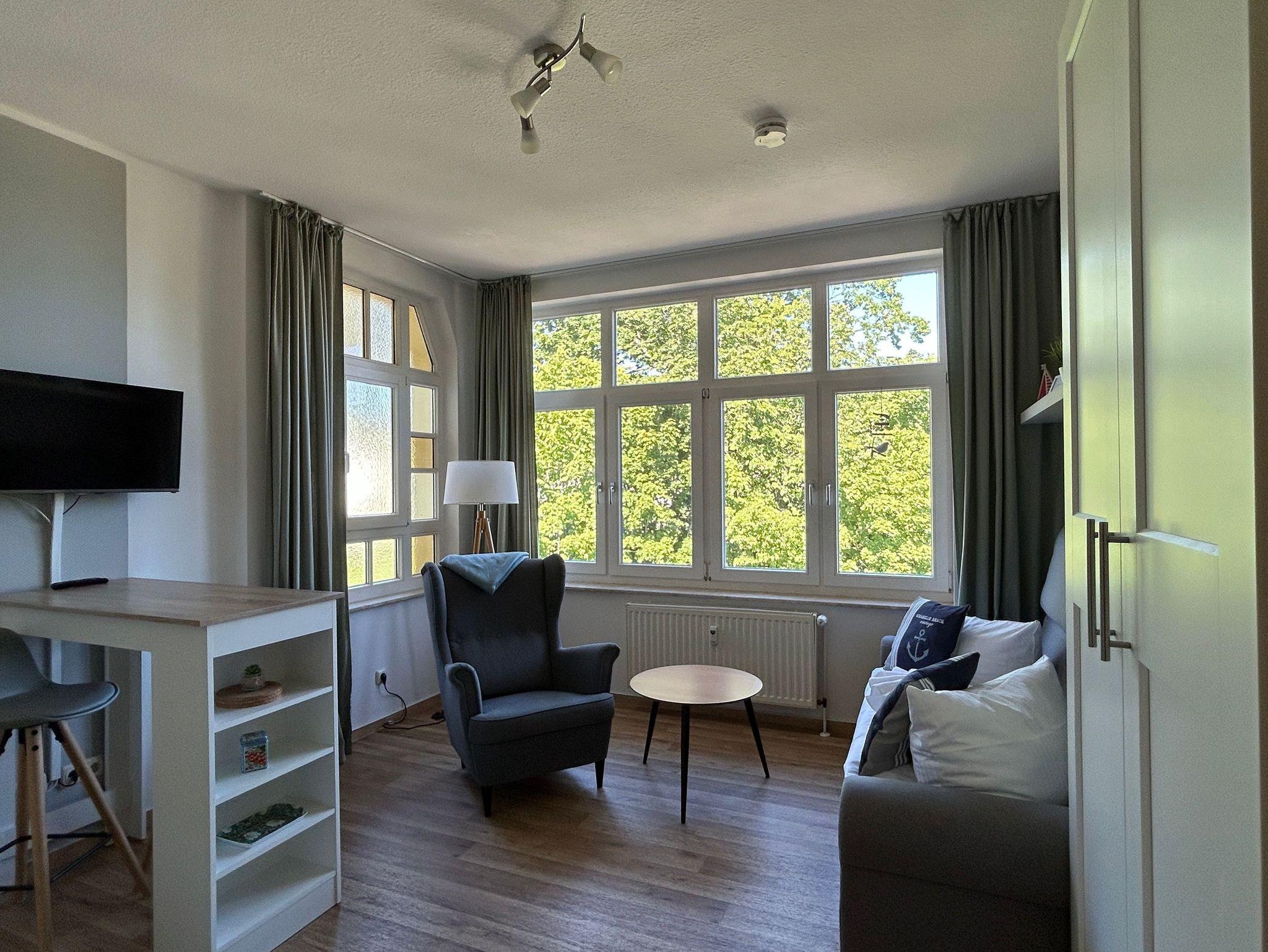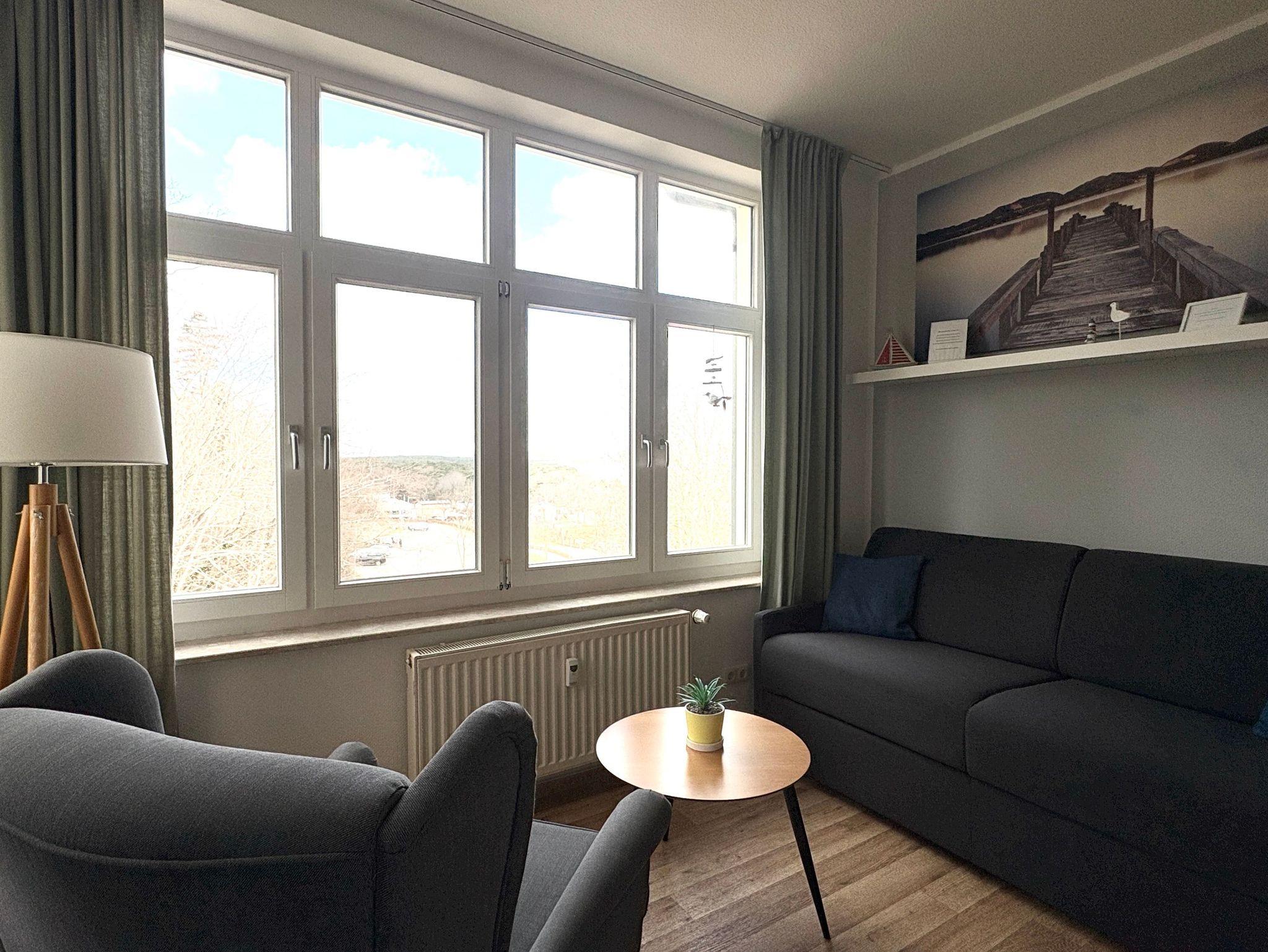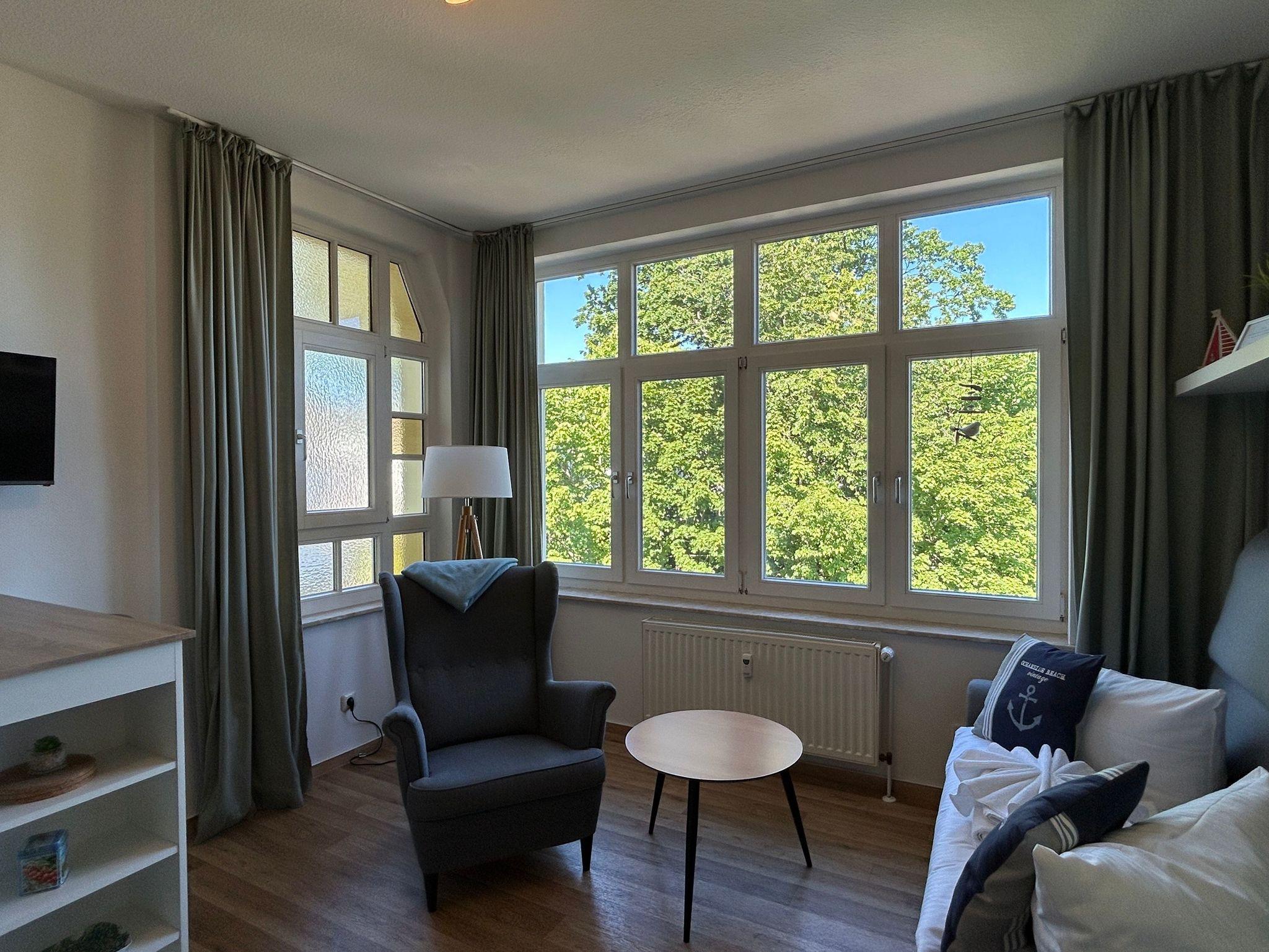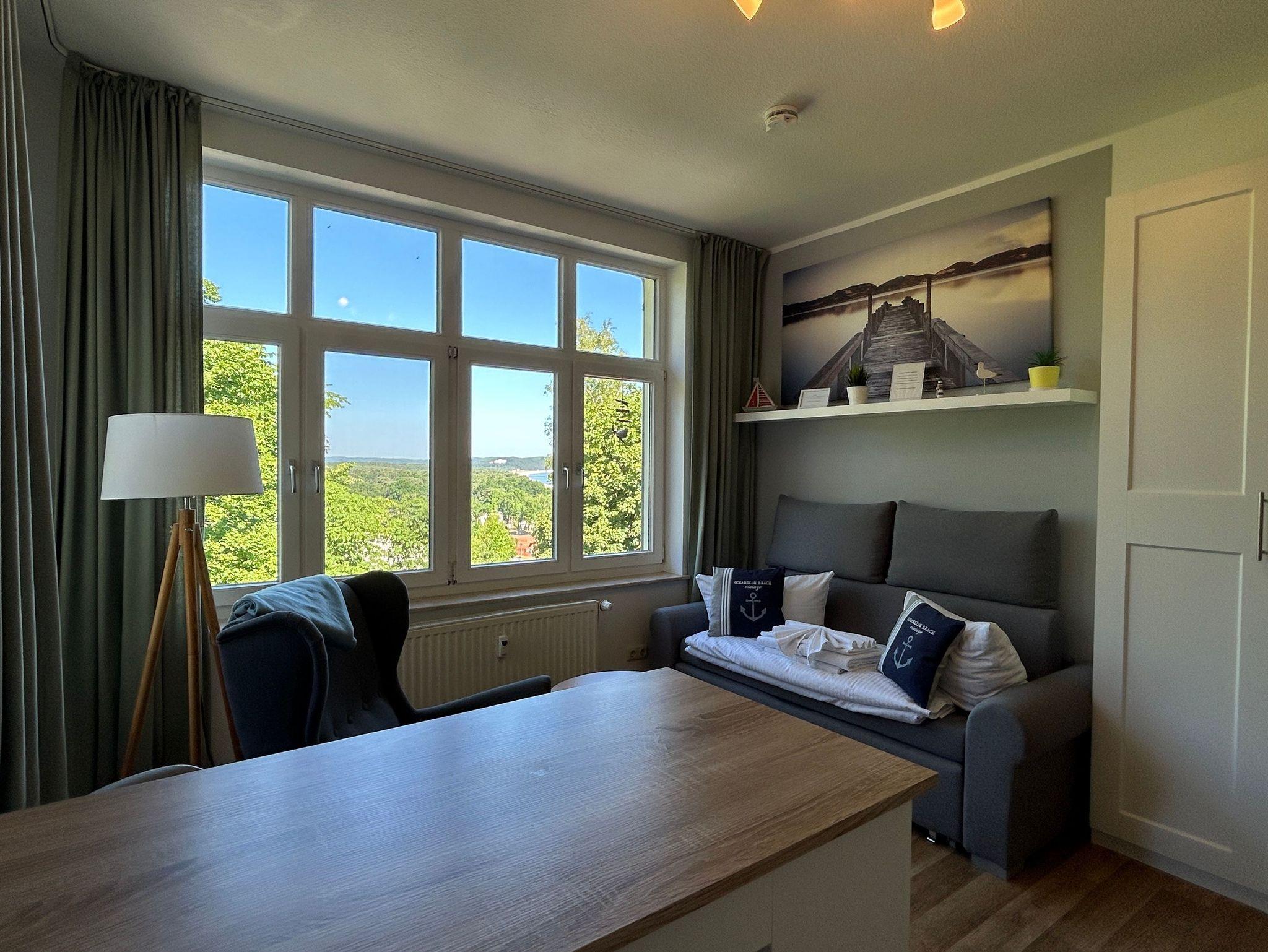 Gemütliche 1-Zimmer-Ferienwohnung mit Meerblick und moderner Ausstattung in Göhren, ideal für einen entspannten Urlaub zu zweit.