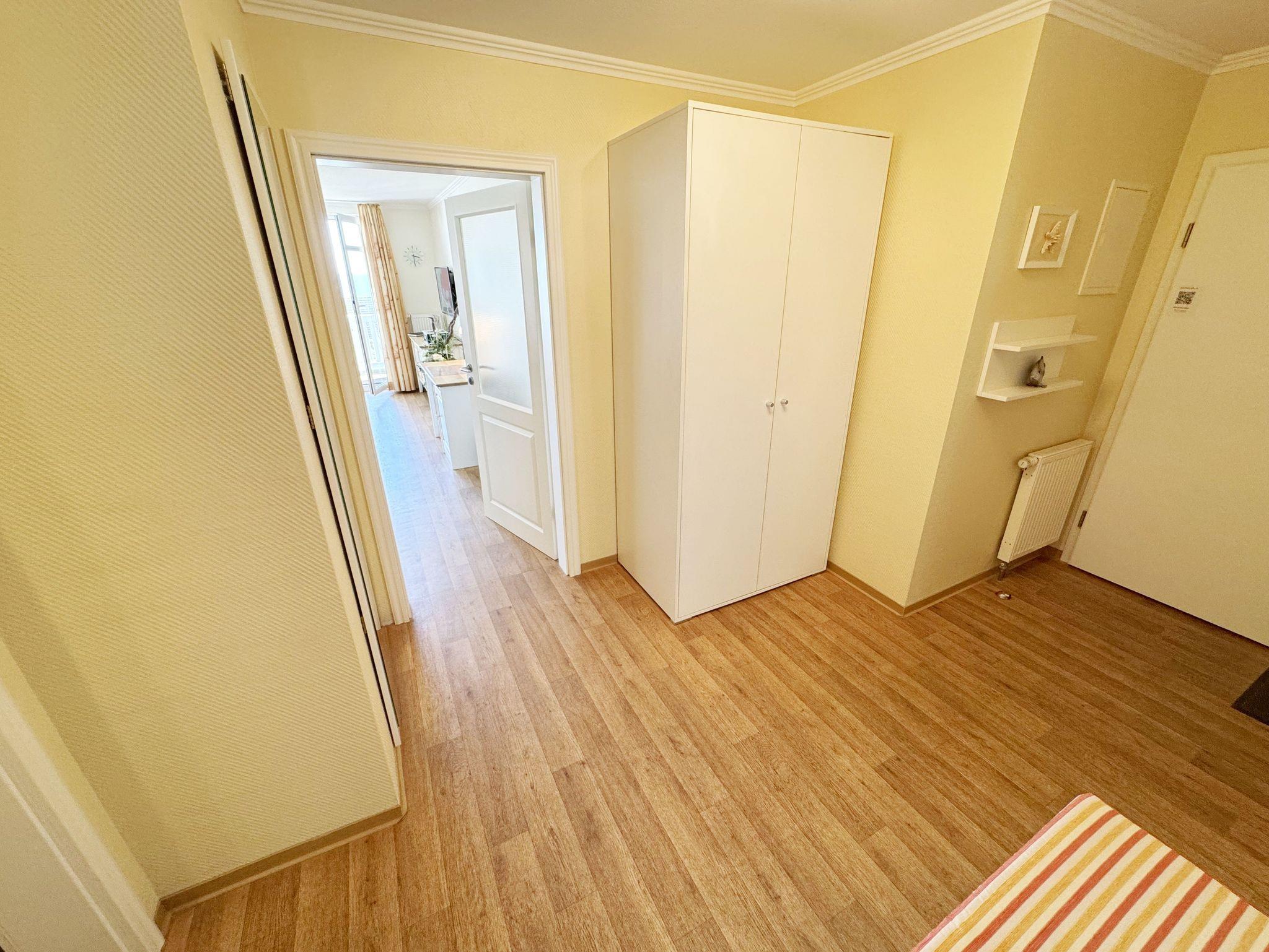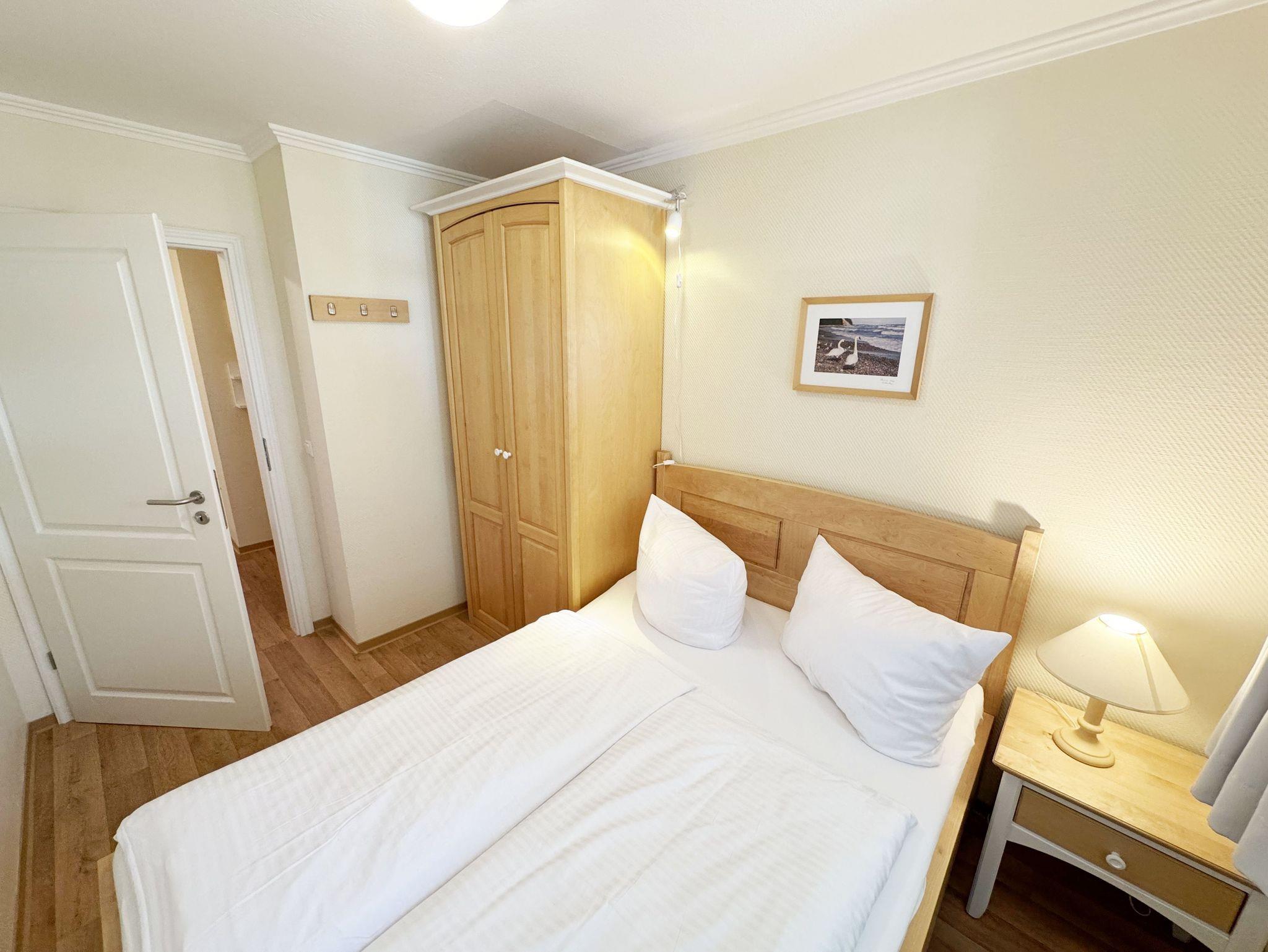 Die vom DTV mit vier Sternen ausgezeichnete Nichtraucherferienwohnung beherbergt max. 4 Erwachsene + 1 Kleinkind bis 3 Jahre im Kinderreisebett bei ca. 61qm und befindet sich im 2. Obergeschoss im Haus Having. Sie ist hell und freundlich eingerichtet, in warmen Tönen gehalten, hochwertig und zugleich funktional ausgestattet und bietet ein niveauvolles Ambiente. Der Flur im Eingangsbereich der Wohnung ist neben einer Garderobe mit Schuhbank und Wandspiegel auch mit einem großen Schrank mit ausreichend Stauraum ausgestattet. Das großzügige Wohnzimmer mit großer Fensterfront ist mit einer gemütlichen Couch, Couchtisch, einen Sessel mit Hocker, einer Leselampe, einen Schreibtisch, einen Smart-TV, einen Blu-Ray Player, eine Yamaha-Mini-Stereoanlage mit Bluetooth und USB-Anschluss, DAB-Radio sowie Lektüre rund um Rügen und Gesellschaftsspielen ausgestattet. Ein WLAN-Anschluss, welcher für Sie inklusive ist, rundet den technischen Bereich ab. Auf dem nach Süden ausgerichteten weitgehend überdachten großen Balkon mit Bestuhlung, einen Sonnenschirm und klappbarer Sonnenliege können Sie ausgiebig sonnenbaden und entspannt frühstücken und dabei eine traumhafte Aussicht über die Ostsee und die Halbinsel Mönchgut genießen. Im Wohnbereich befinden sich eine voll ausgestattete Küchenzeile mit Cerankochfeld, Backofen, Mikrowelle, Geschirrspüler, Kühlschrank mit Gefrierfach, Mixer, Kaffeemaschine, Senseo Pad Kaffeemaschine, Wasserkocher, Toaster sowie diverse Küchenutensilien. Ein bequemer Essbereich mit Lederfreischwingern schließt sich der Küchenzeile an. Im ersten Schlafzimmer finden Sie ein Doppelbett (1,80m x 2,00m/ H2/3) mit verstellbaren Lattenrosten, Nachttischablagen, einen Stuhl, sowie einen großen Kleiderschrank und ein TV-Gerät. Im zweiten und damit etwas kleineren Schlafzimmer befindet sich ein französisches Bett (1,40 x 2,00m, durchgehende Matratze/ H3) mit einer Nachttischablage und einem Kleiderschrank sowie ein Bügelbrett und Bügeleisen. Für einen erholsamen Schlaf finden Sie in beiden Schlafzimmern Verdunklungsmöglichkeiten, Insektenschutzgitter sowie helle Massivholzmöbel. Im innenliegenden Bad mit WC, Waschtisch und Dusche finden Sie zusätzlich einen Fön, einen Kosmetikspiegel, einen Hocker und ausreichend Ablageflächen. Alle Räumlichkeiten sind mit einem Vinylfußboden ausgelegt worden. Haustiere sind nicht erlaubt. Ein eigener PKW-Stellplatz (Nr.36) am Haus, sowie eine abschließbare Fahrradabstellmöglichkeit sind für Sie vorhanden. Hier können Sie auch Ihre E-Bikes problemlos aufladen. Eine Waschmaschine und ein Trockner kann in einem separaten Raum vom Haus Kaming exklusive genutzt werden. Die Erstausstattung eines Wäschepaketes (komplette Bettwäsche, 1 Duschhandtuch, 2 kleine Handtücher) ist inklusive. Ab 2 Paketen erhalten Sie einmalig 1 Geschirrhandtuch und 1 Duschvorleger hinzu. Haustiere sind in der Wohnung nicht erlaubt.