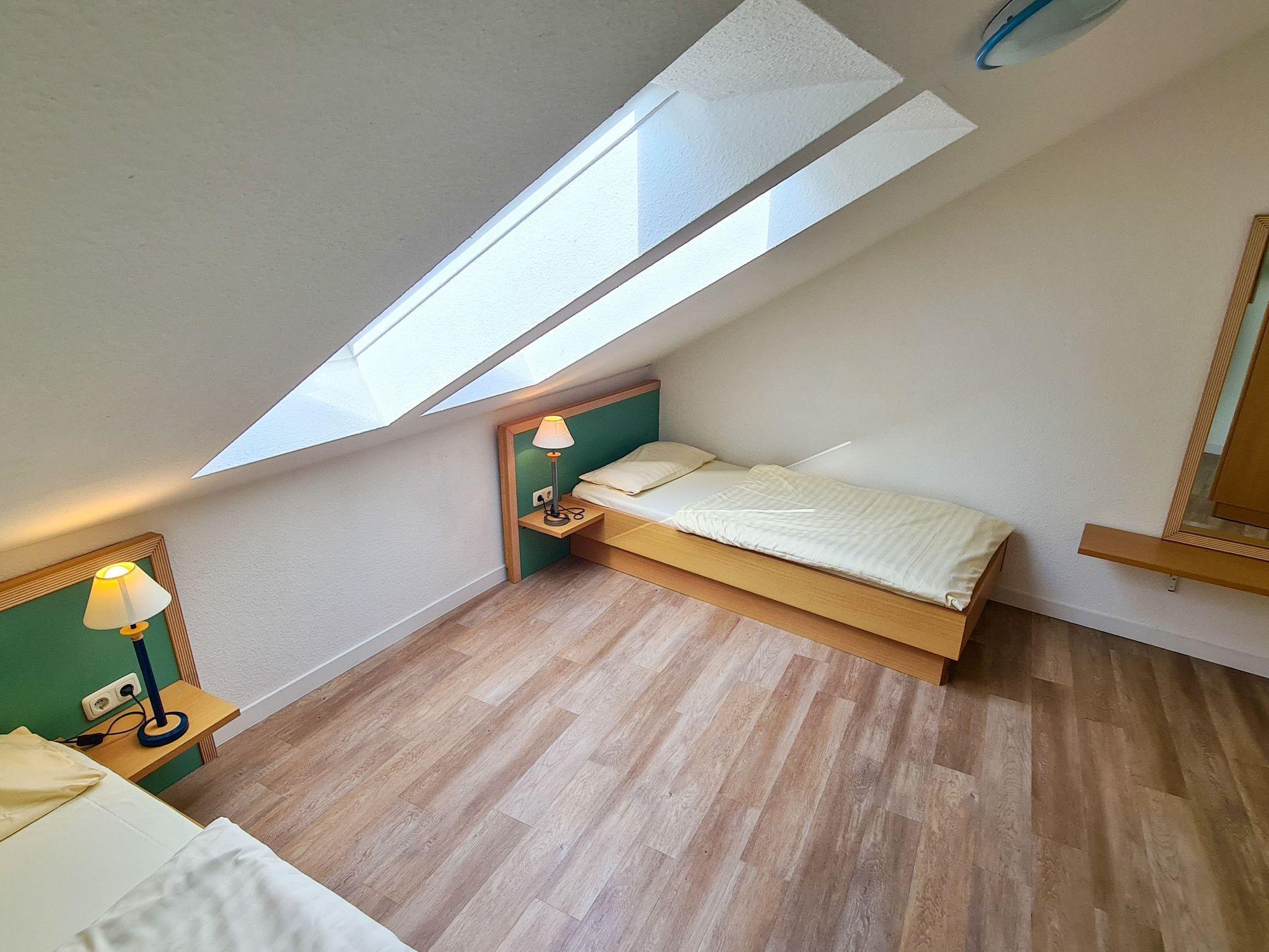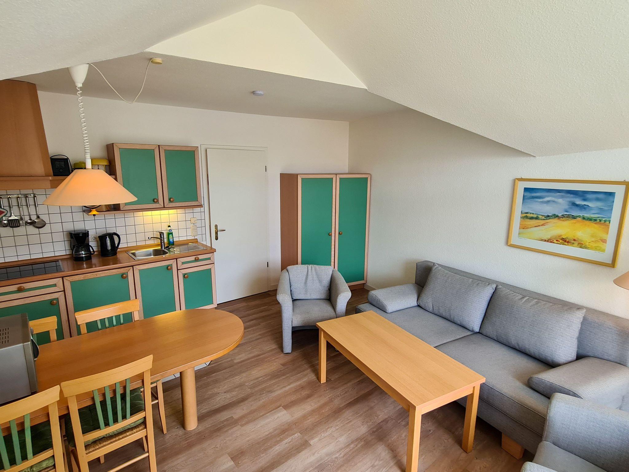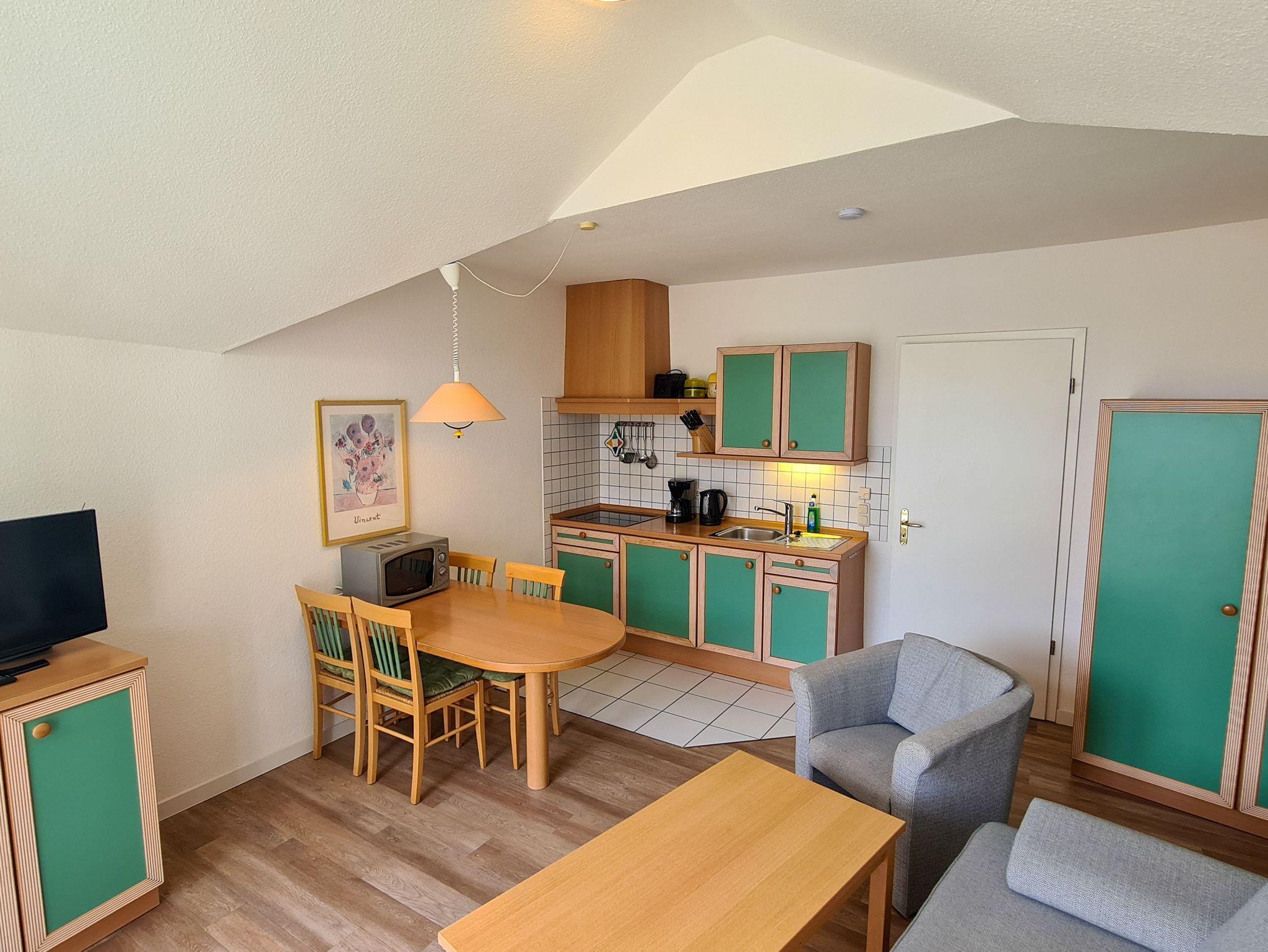Das modern ausgestattete 2-Raum-Nichtraucher-Appartement im Dachgeschoss ist 42 m² groß.