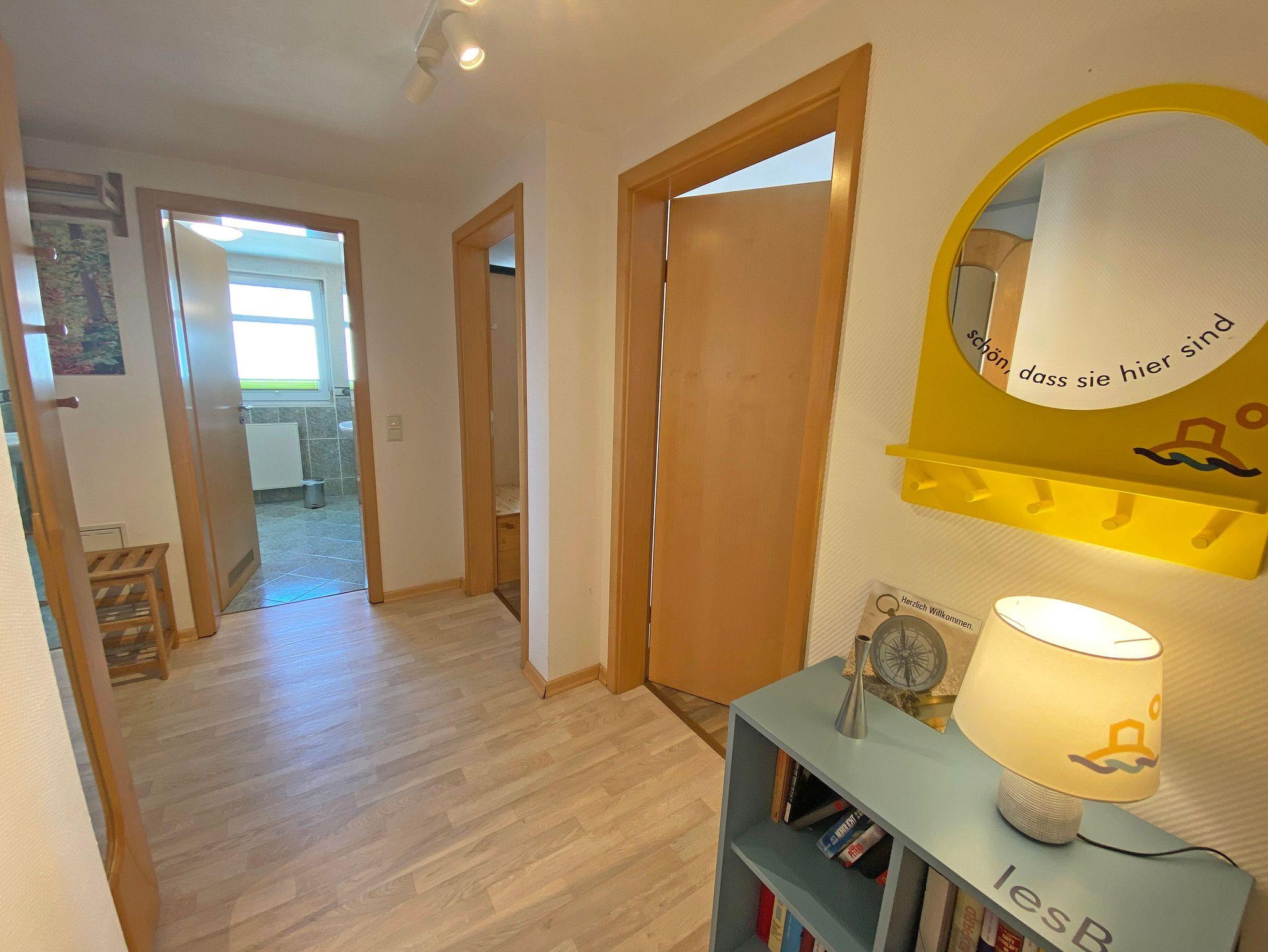 Unsere komfortable Nichtraucherwohnung von ca. 60 qm für 2 bis max. 4 Erwachsene und 1 Kleinkind bis 3 Jahre im Kinderreisebett verfügt über ein Schlafzimmer mit Doppelbett, Nachttischkonsolen und Kleiderschrank sowie ein zweites Schlafzimmer mit französischem Bett (1,40 m) und einen weiteren Kleiderschrank. Der Wohnbereich ist mit einer Sitzecke, Sessel, TV-Board, Smart-TV mit Radioprogrammen und DVD-Player eingerichtet. Von hier aus gelangen Sie auf den bestuhlten Balkon sowie auf den kleinen Seitenbalkon, von wo aus Sie die einmalige Sicht auf die Ostsee genießen können. Das Badezimmer ist mit einer Dusche, WC und Fön ausgestattet. Die Küchenzeile bietet einen Esstisch und 4 Stühlen, Geschirrspüler, 4 Cerankochfeldern mit Backofen, Toaster, Kaffeemaschine, Wasserkocher und diverse Küchenutensilien. Insektenschutzgitter sind vorhanden. Kinderreisebett (ohne Matratze und Bett Inlett) und Hochstuhl können für unsere kleinen Gäste gegen eine Gebühr gestellt werden. WLAN ist für Sie inklusive nutzbar. Ein PKW-Stellplatz (Nr. 09) sowie eine Unterstellmöglichkeit für Ihre Fahrräder ist am Haus vorhanden. 2 Haustiere sind gegen eine Gebühr gern gesehene Gäste. Die Erstausstattung eines Wäschepaketes (komplette Bettwäsche, 1 Duschhandtuch, 1 kleines Handtuch) können Sie bis 14 Tage gegen einen Aufpreis dazu buchen oder durch eigene ergänzen. Ab 2 gebuchten Paketen erhalten Sie einmalig 1 Geschirrhandtuch und 1 Duschvorleger hinzu.