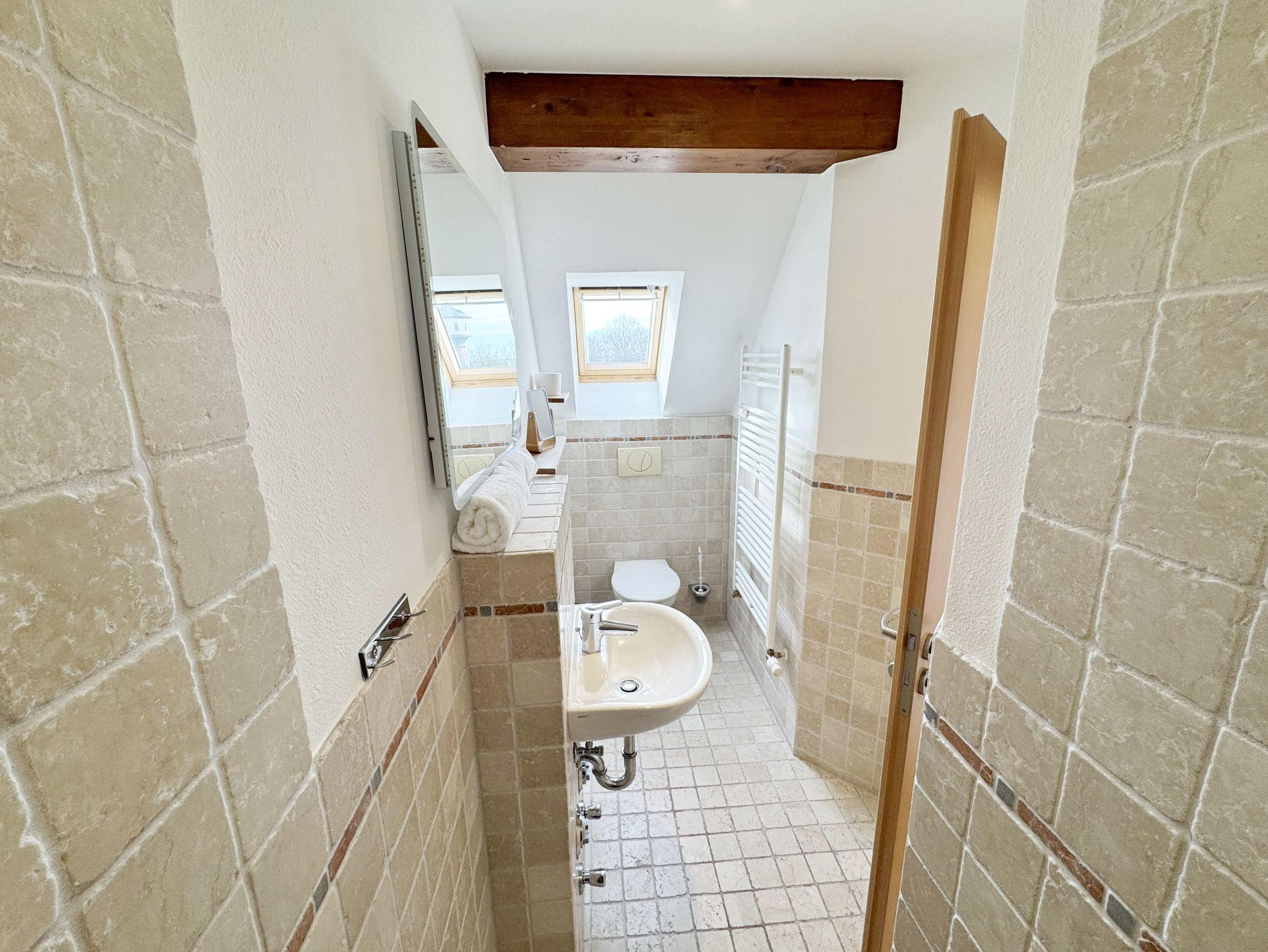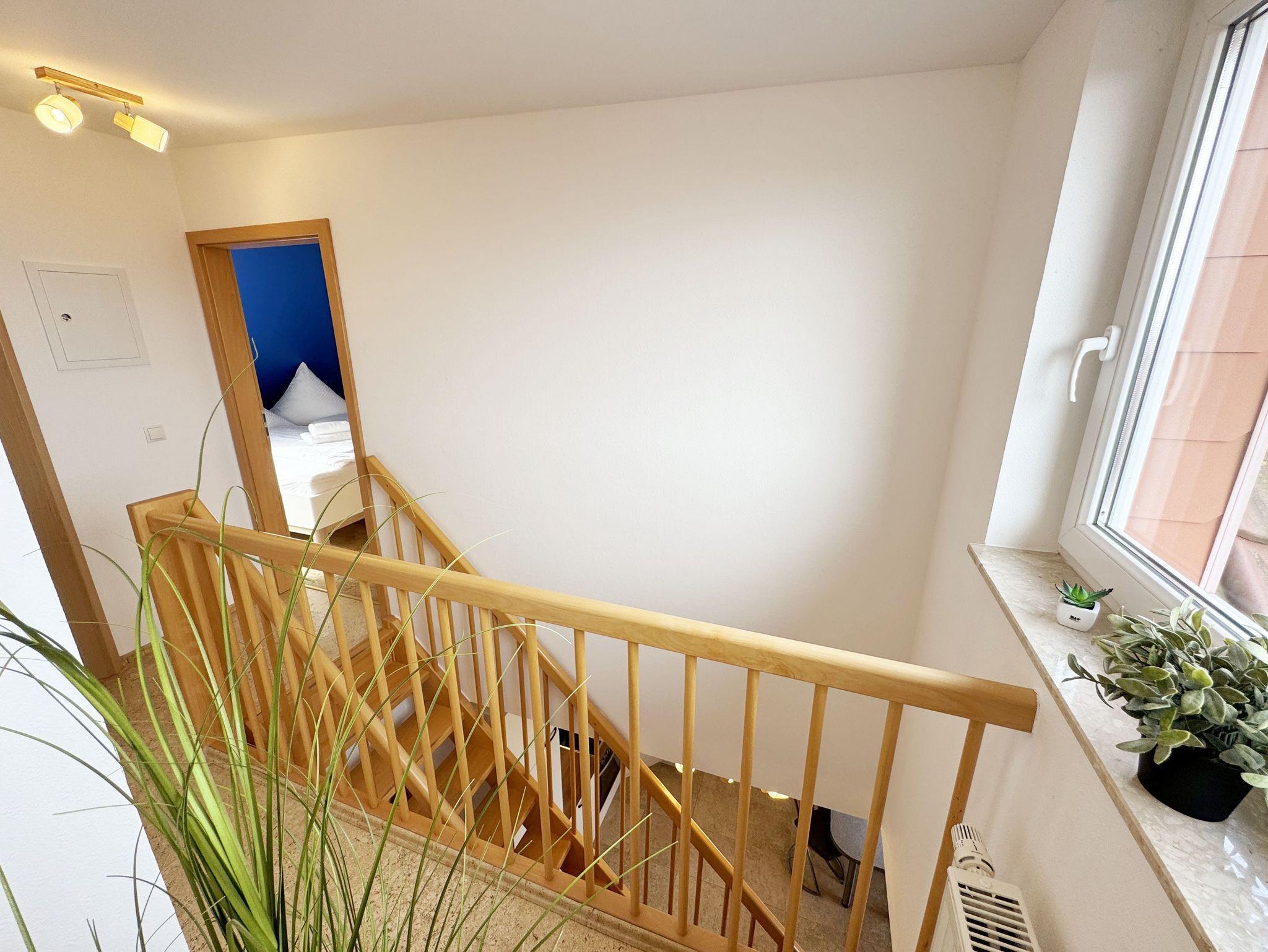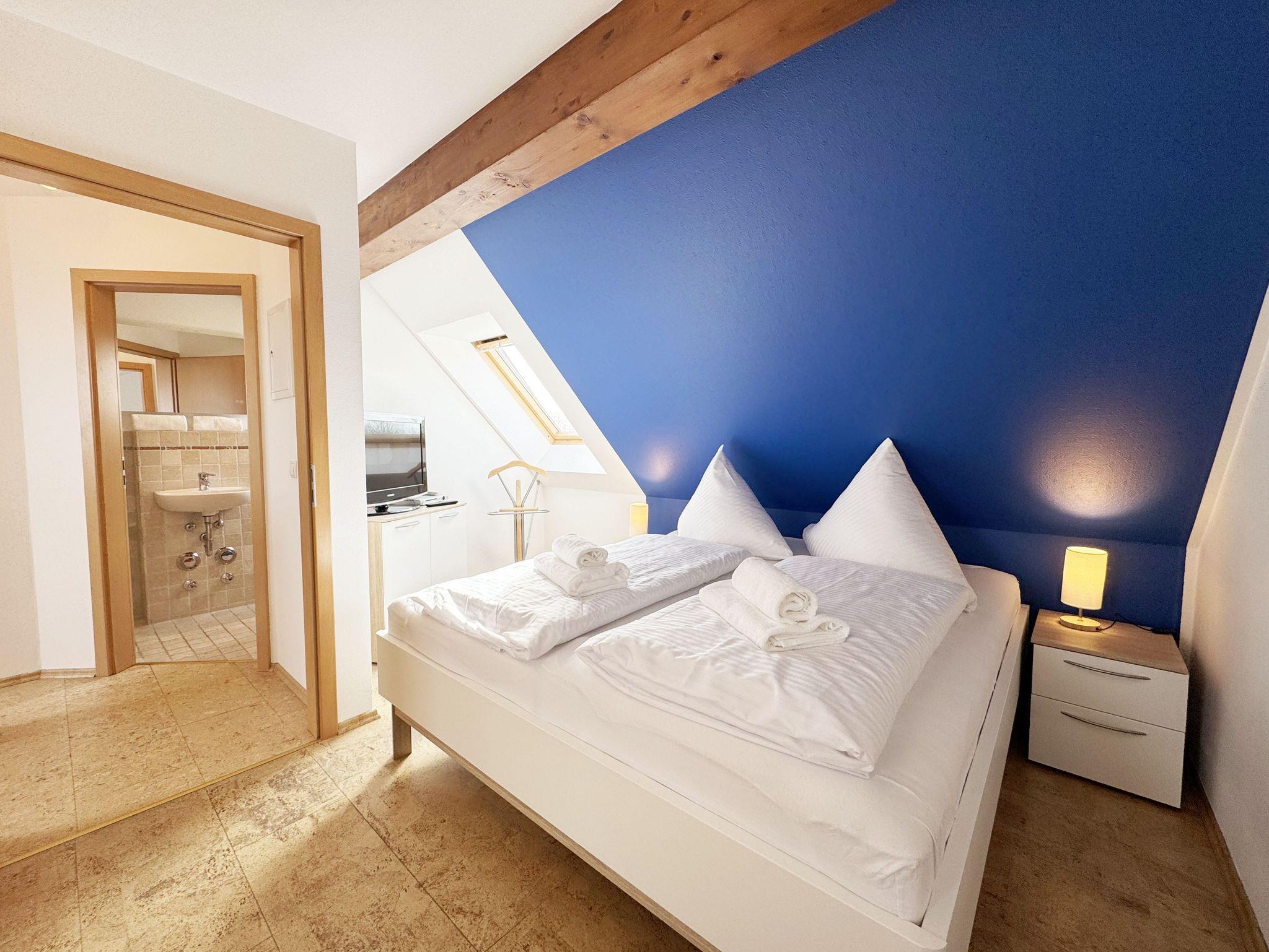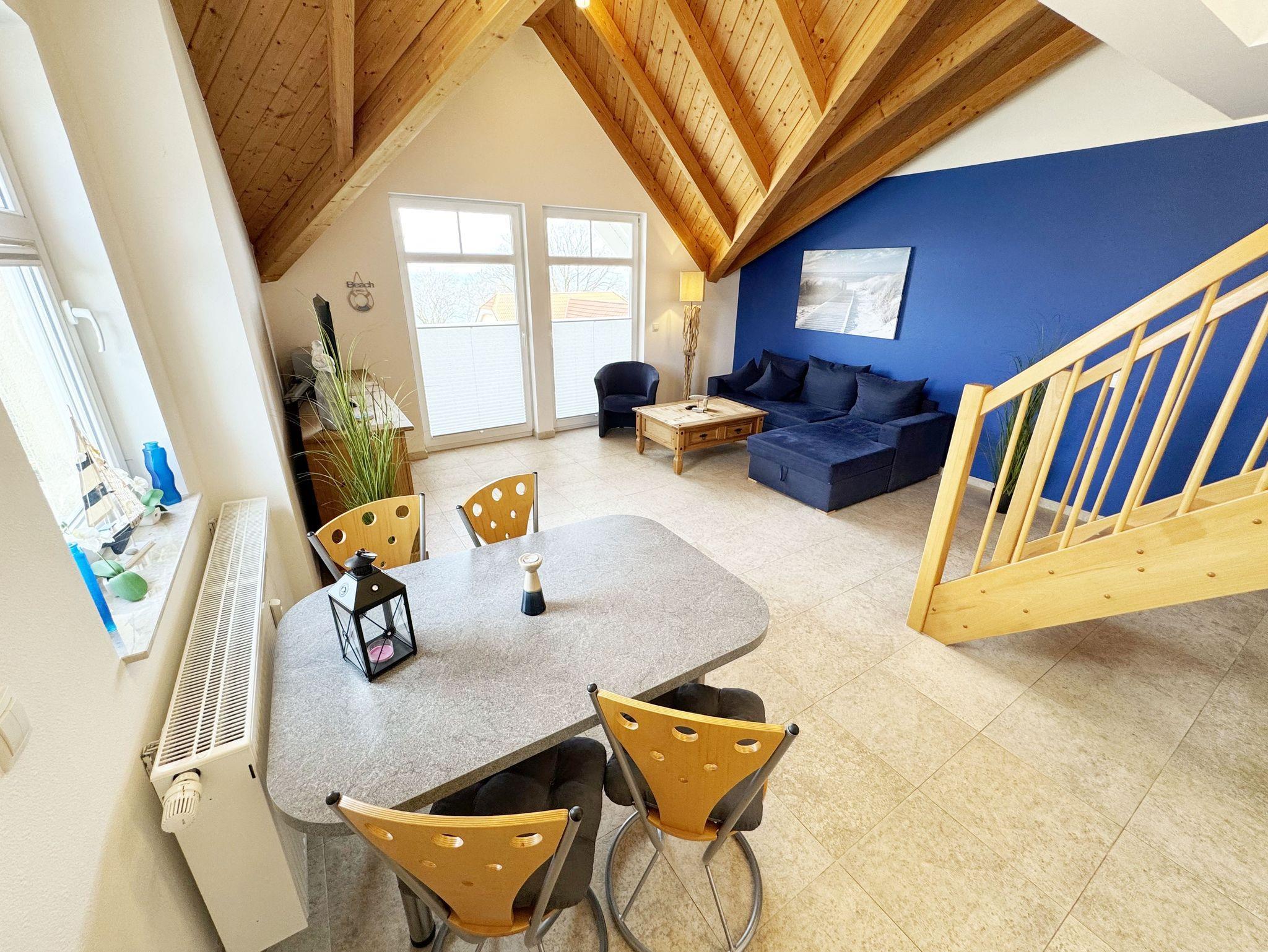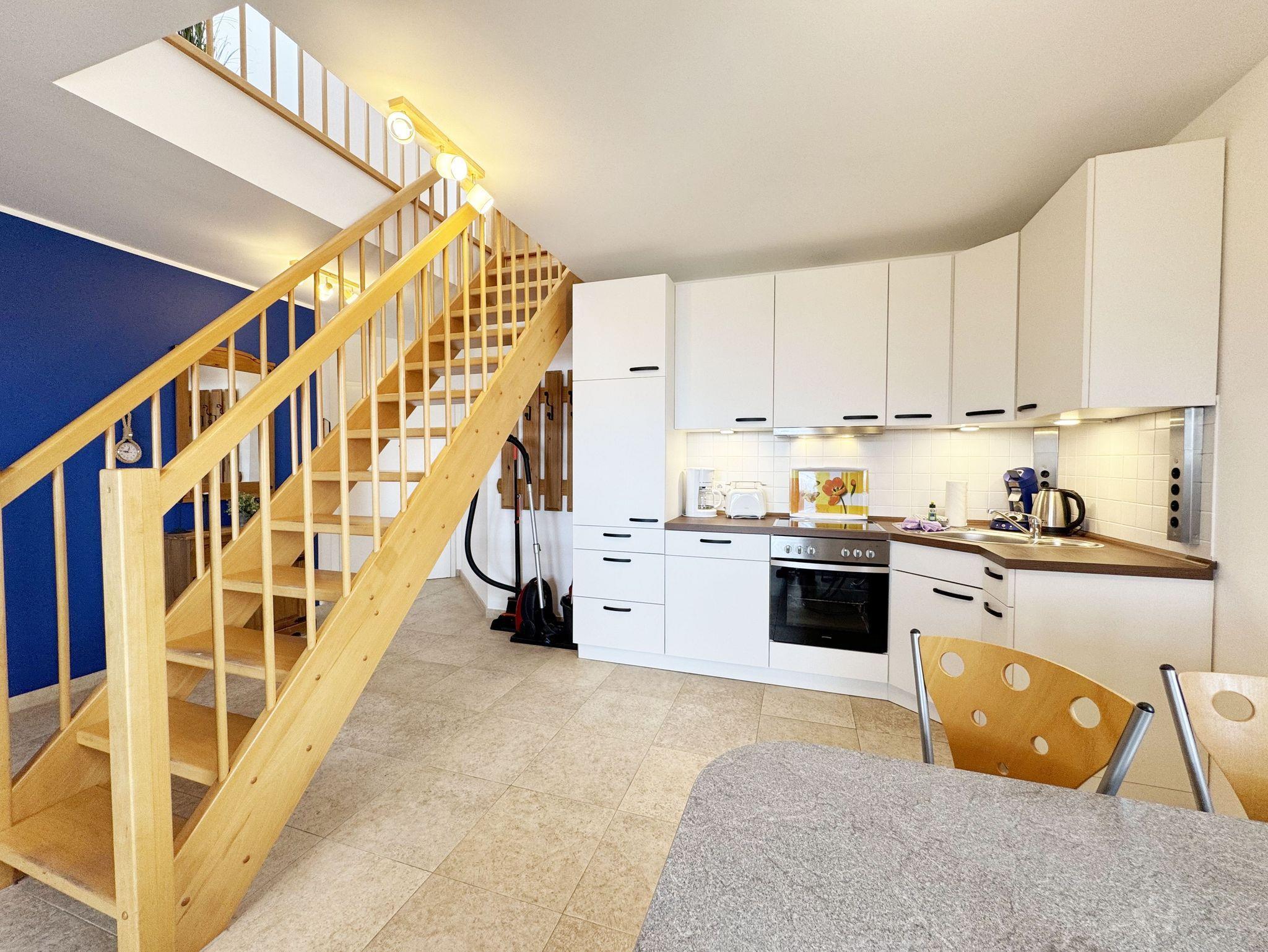 Die komfortable Maisonette Ferienwohnung (Nichtraucher) bietet mit ca. 53 qm Platz für 2 Personen und ein Kleinkind bis 3 Jahre im Kinderreisebett. Die Wohnung befindet sich in der 2. Etage. Der Wohn- und Essbereich besteht aus einer gemütlichen Couchecke, sowie einer Anrichte mit SMART-TV, DVD-Player, Radio und CD-Player. Sie brauchen auch im Urlaub auf einen Internetzugang (WLAN) in Ihrer Wohnung nicht zu verzichten. Dieser ist für Sie inklusive! Gleichzeitig finden Sie hier den angrenzenden Essbereich mit einer voll ausgestatteten modernen Küchenzeile mit Geschirrspüler, einer Spüle, einen Kühlschrank mit Eisfach, einen Backofen mit 4-Zonen-Cerankochfeld, einen Wasserkocher, einer Kaffeemaschine, einer Senseo-Padmaschine, diversen Küchenutensilien sowie einen Esstisch mit Bestuhlung. Vom Wohnbereich aus können Sie den bestuhlten Balkon mit Sonnenschirm erreichen. Hier können Sie bei einem Glas Wein den herrlich, traumhaften Panoramablick Richtung Nordstrand auf das Meer genießen. Das Schlafzimmer erreichen Sie über die Treppe, welche sich im Wohnbereich befindet. Hier finden Sie ein Doppelbett mit 2 einzelnen Matratzen (je 0,80 m x 2,00 m), eine Kommode mit SMART-TV sowie einen Kleiderschrank. Auf der gleichen Etage befindet sich das Bad welches über eine ebenerdige Dusche mit WC, einen Kosmetikspiegel und einen Fön verfügt. Insektenschutzgitter befinden sich zum Teil an den Fenstern. Bis zu 2 Haustiere können Sie gegen eine Gebühr dazu buchen. Der PKW-Stellplatz Nr. 09 befindet sich direkt am Haus. Die Erstausstattung eines Wäschepaketes (komplette Bettwäsche, 1 Duschhandtuch, 2 kleine Handtücher) können Sie bis 14 Tage vor der Anreise gegen einen Aufpreis dazu buchen oder durch eigene ergänzen. Ab 2 gebuchten Paketen erhalten Sie einmalig 1 Geschirrtuch und einen Duschvorleger dazu.