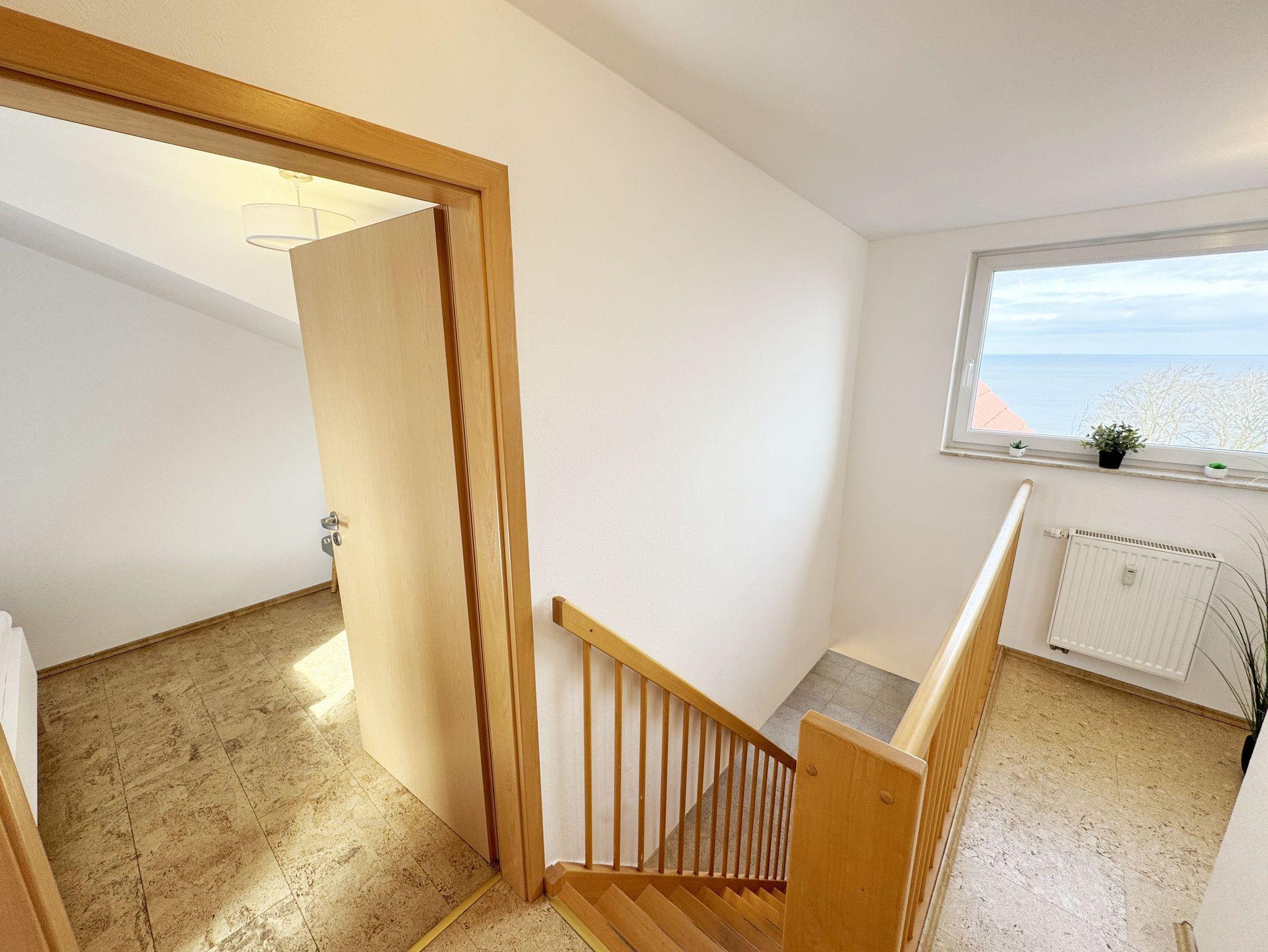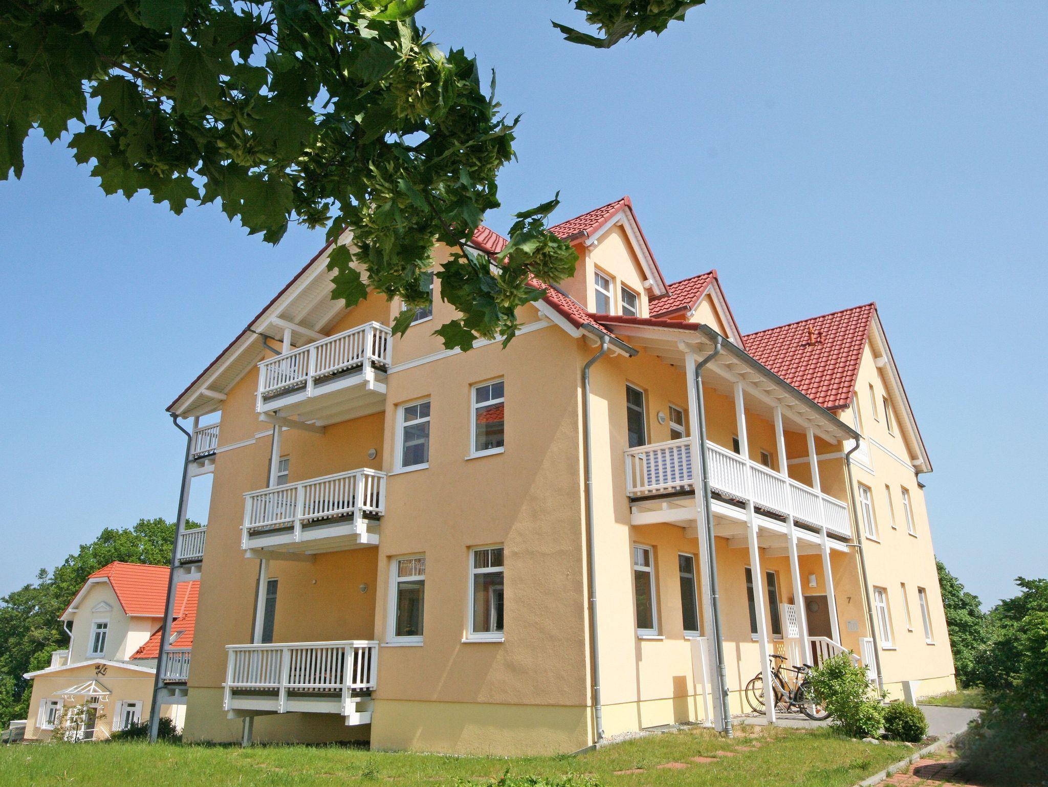 Die Villa Bergfrieden in Göhren bietet eine ruhige Lage mit herrlichem Meerblick und Balkon, nur wenige Minuten vom Strand entfernt.