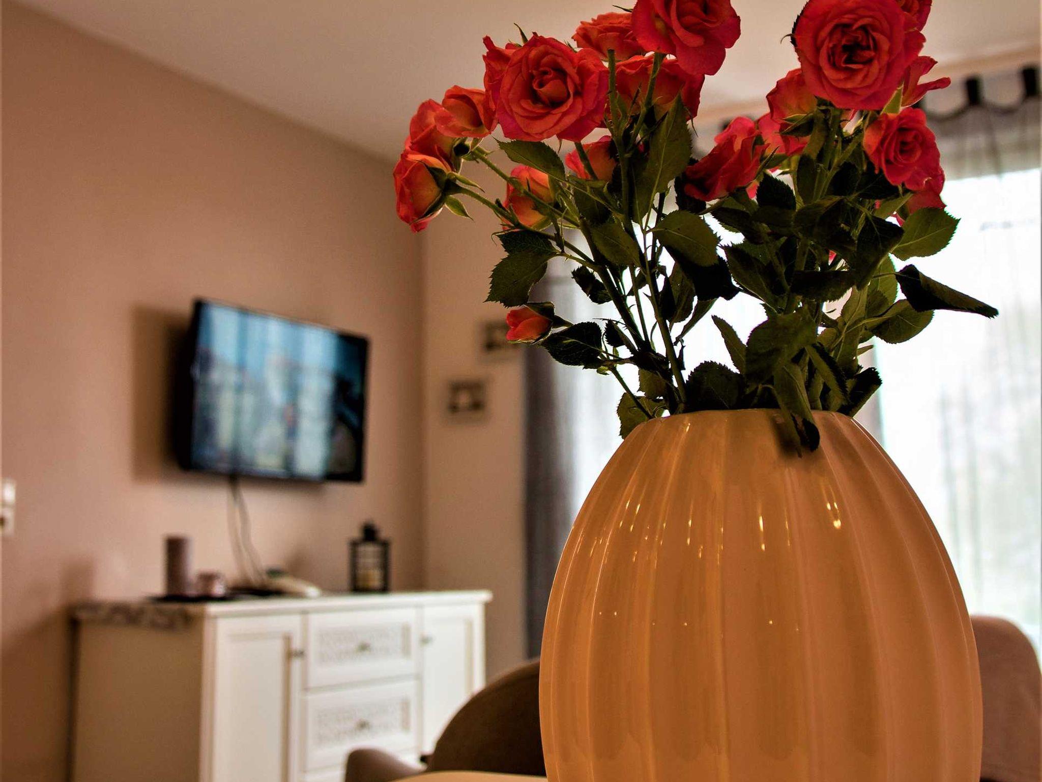 Unser komfortabel und gemütlich eingerichtetes Ferienappartement Lee liegt sehr ruhig und verfügt über einen separaten Eingang und WLAN-Internet. Das Appartement ist für maximal zwei Personen geeignet. Im Wohnzimmer bieten wir Ihnen eine Couch, Sessel und Tisch, einen Schrank und TV sowie Radio. Über eine Terrassentür gelangen Sie von hier direkt auf die schöne Sonnenterrasse mit Gartenmöbeln und Sonnenschirm. Von hier aus können Sie einen hervorragenden Ausblick auf die vor Göhren liegende Ostsee genießen.