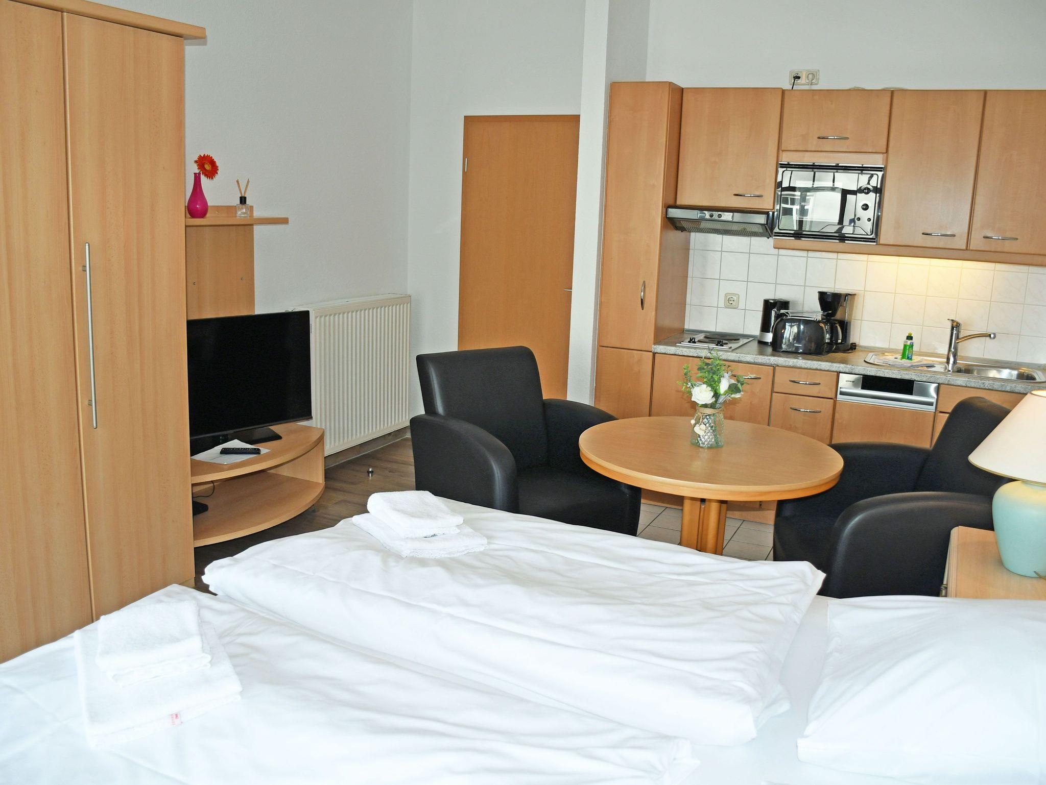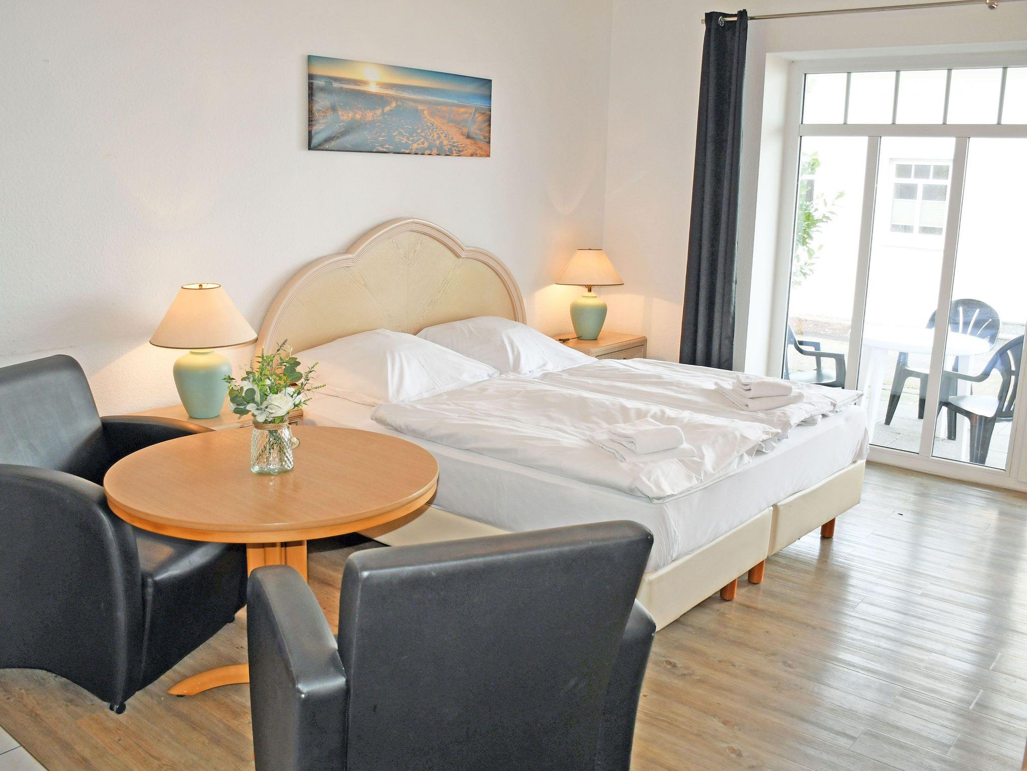 Gemütliches 1-Raum-Apartment mit Balkon, Seeblick und Strandnähe in Göhren, ideal für entspannte Ostseeurlaube.
