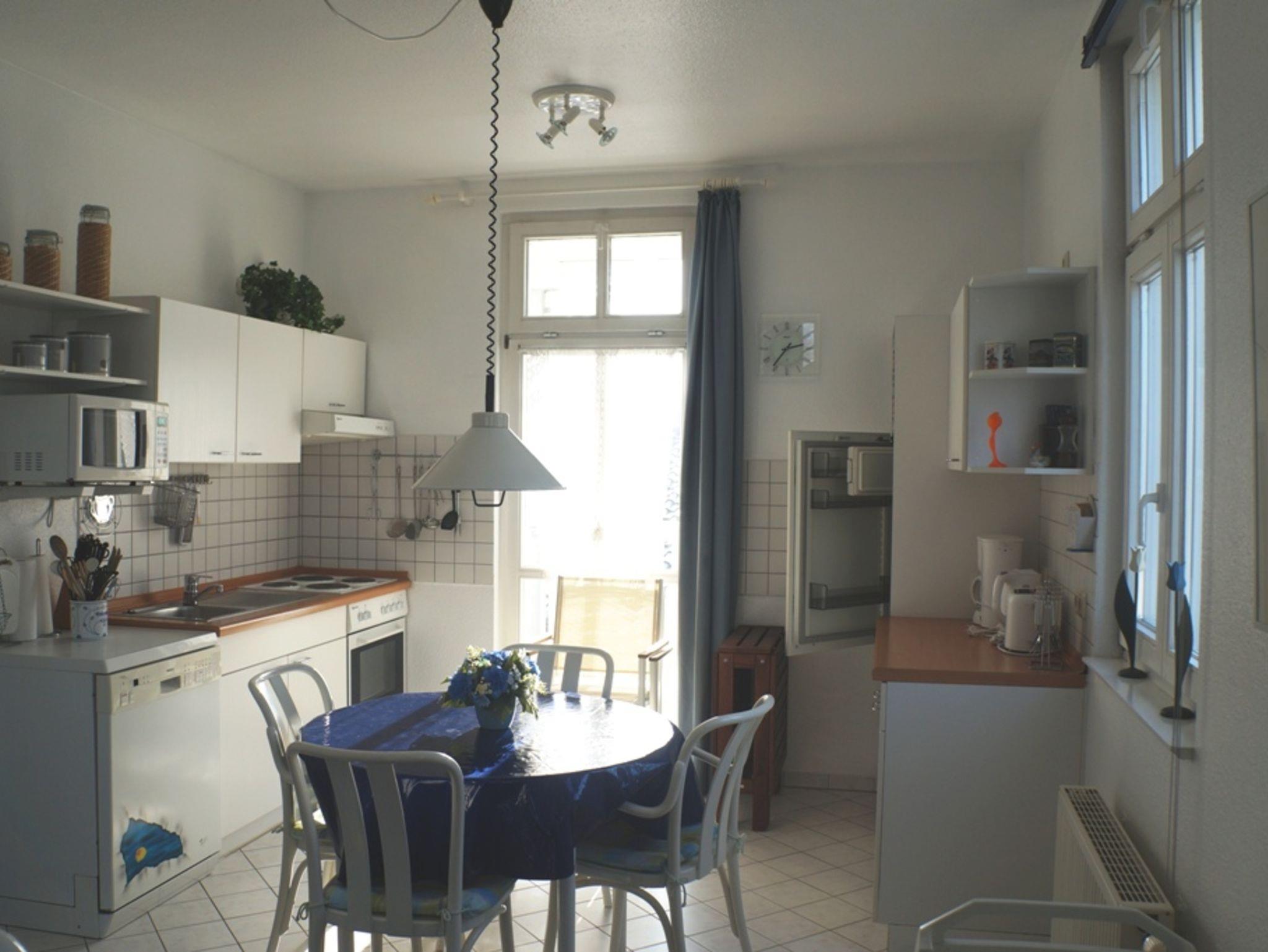 Sie bietet Ihnen 3 Zimmer, Duschbad und zwei Balkone, einer davon mit herrlichen Blick zur Ostsee, der andere über die Dächer des Ortes.