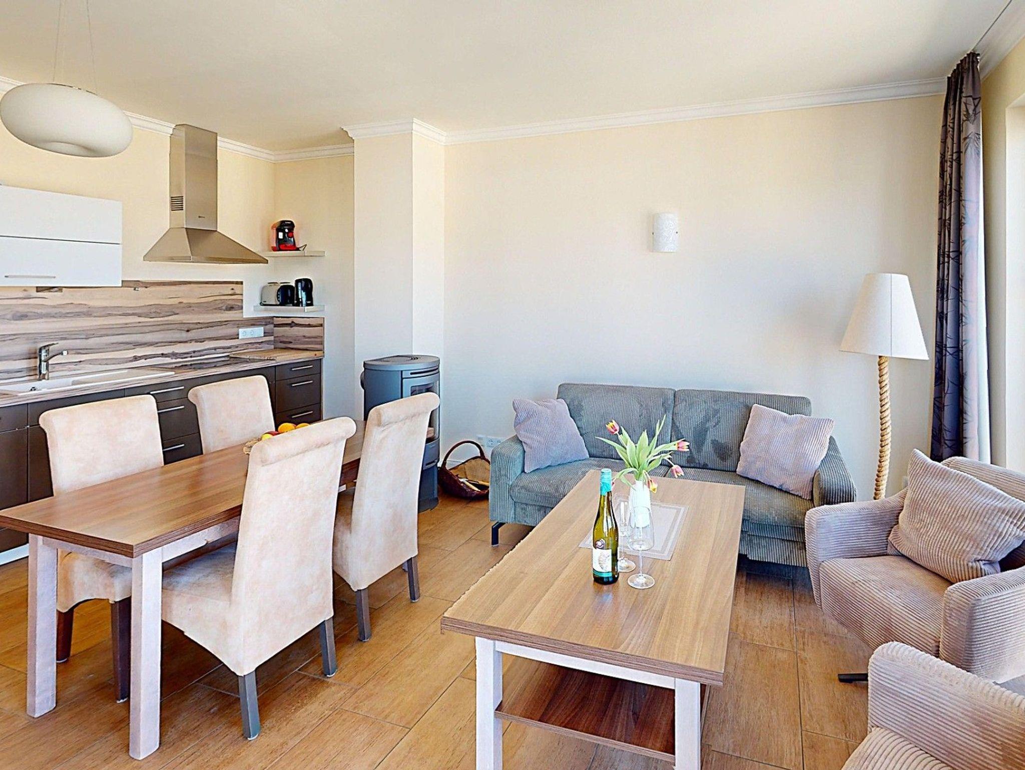 Komfortable Premium-Ferienwohnung mit Sauna und Kamin in der Residenz Villa Ostsee, Göhren, nah zum Strand und Ortszentrum.