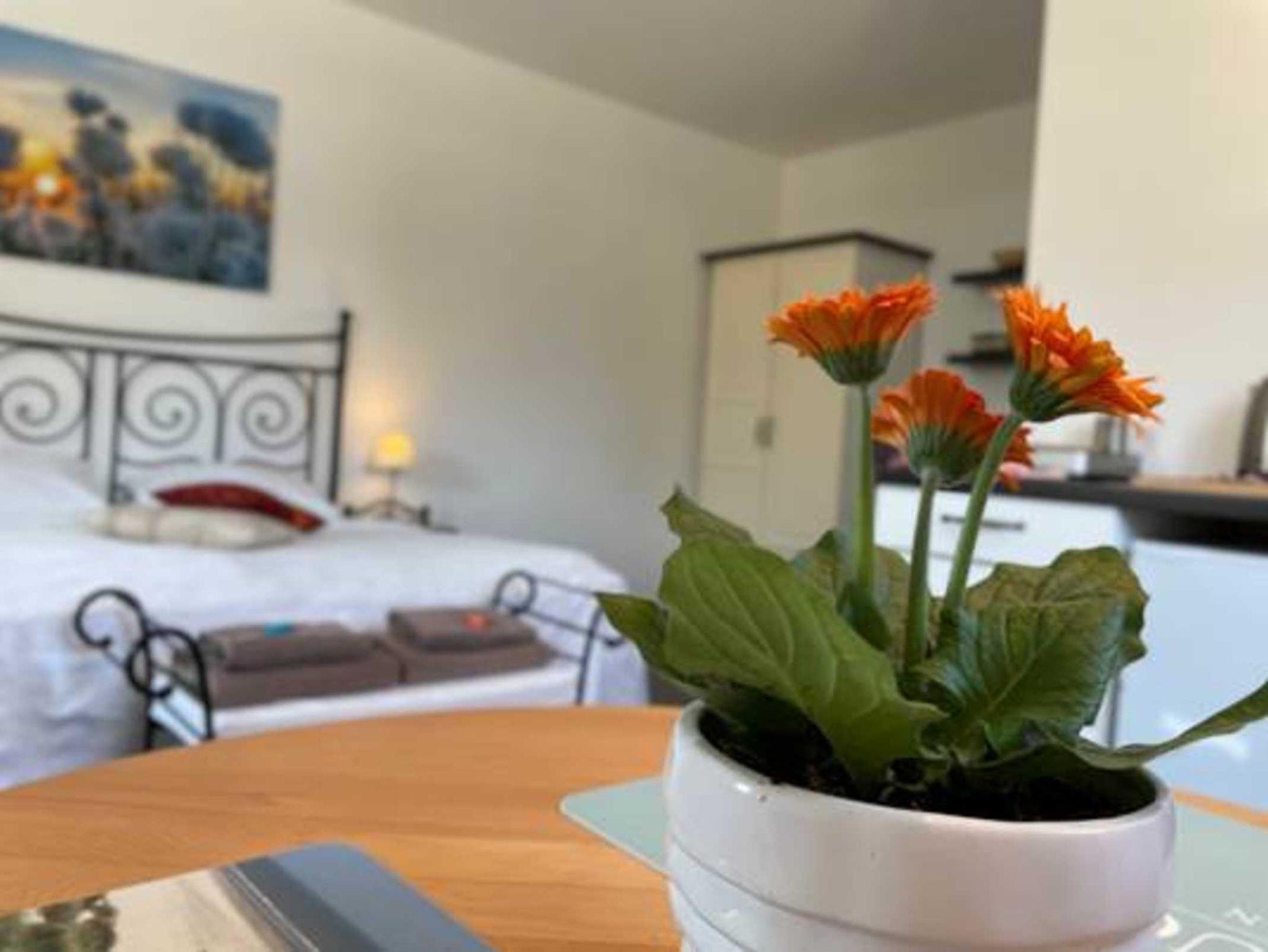 Unser 1- Raum Appartement ist für 2 Personen geeignet und ist ca. 28 m² groß. Es befindet sich im Erdgeschoss und verfügt über blickdichte Plisses und Fliegengitter. Es erwartet Sie in einem sehr gemütlichen Ambiente ein Wohnschlafraum mit einem Doppelbett einer Pantry mit Kühlschrank und Spüle, eine Induktionskochplatte (geeignet zum Kochen von Kleinigkeiten, nicht zum Braten) mit einem Topf, Kaffeemaschine, Wasserkocher, Toaster, Sat-TV (Flachbild), Dusche und WC. Bettwäsche und Duschtücher können bei Bedarf dazu gebucht werden. Ein Spannbettlaken, Geschirrhandtücher, Händehandtücher und Badvorleger werden in jedem Fall zur Verfügung gestellt und nicht extra berechnet.