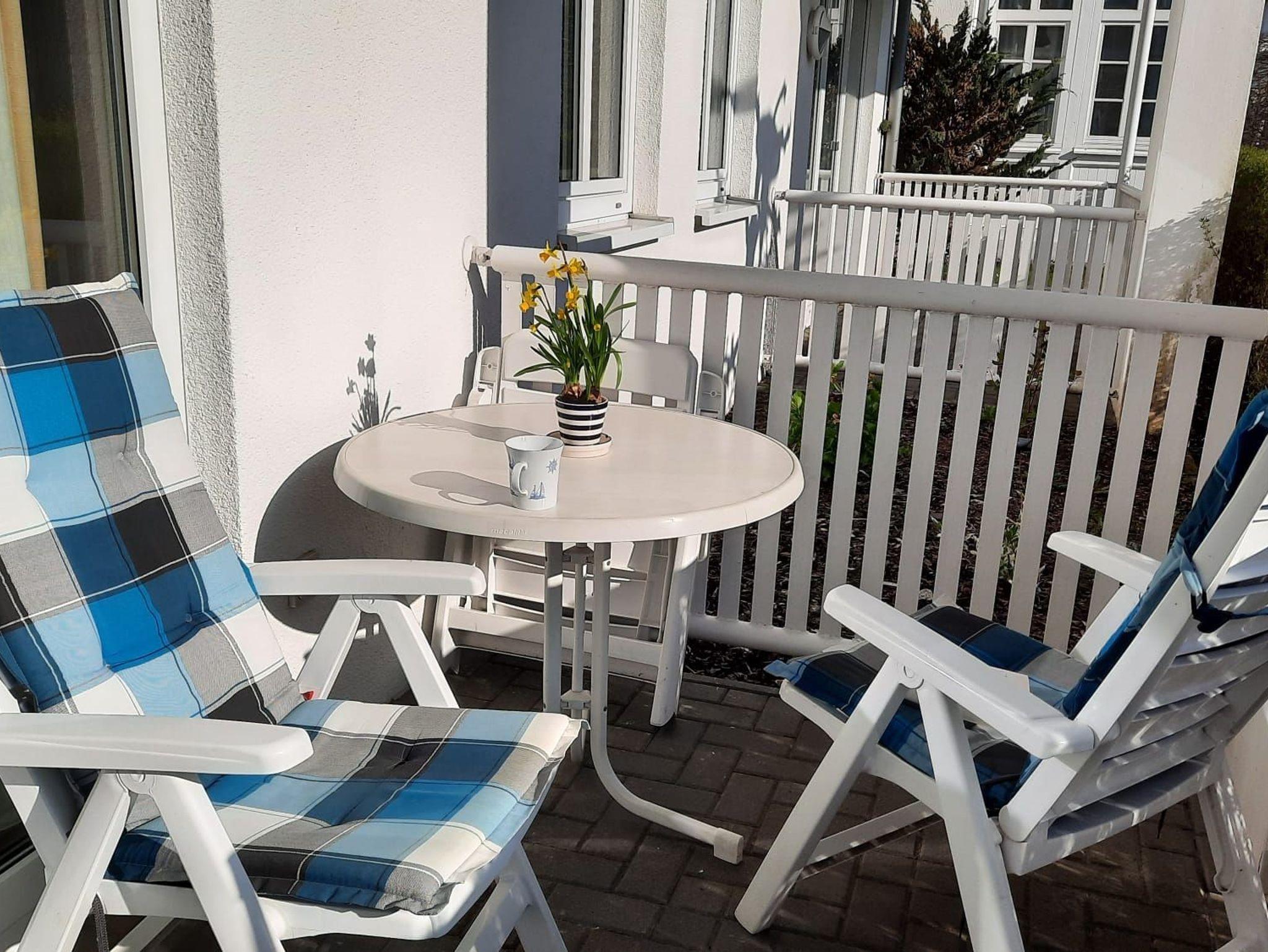 Gemütliche Ferienwohnung mit Terrasse in ruhiger Lage nahe Strandpromenade in Göhren, ideal für erholsame Tage an der Ostsee.