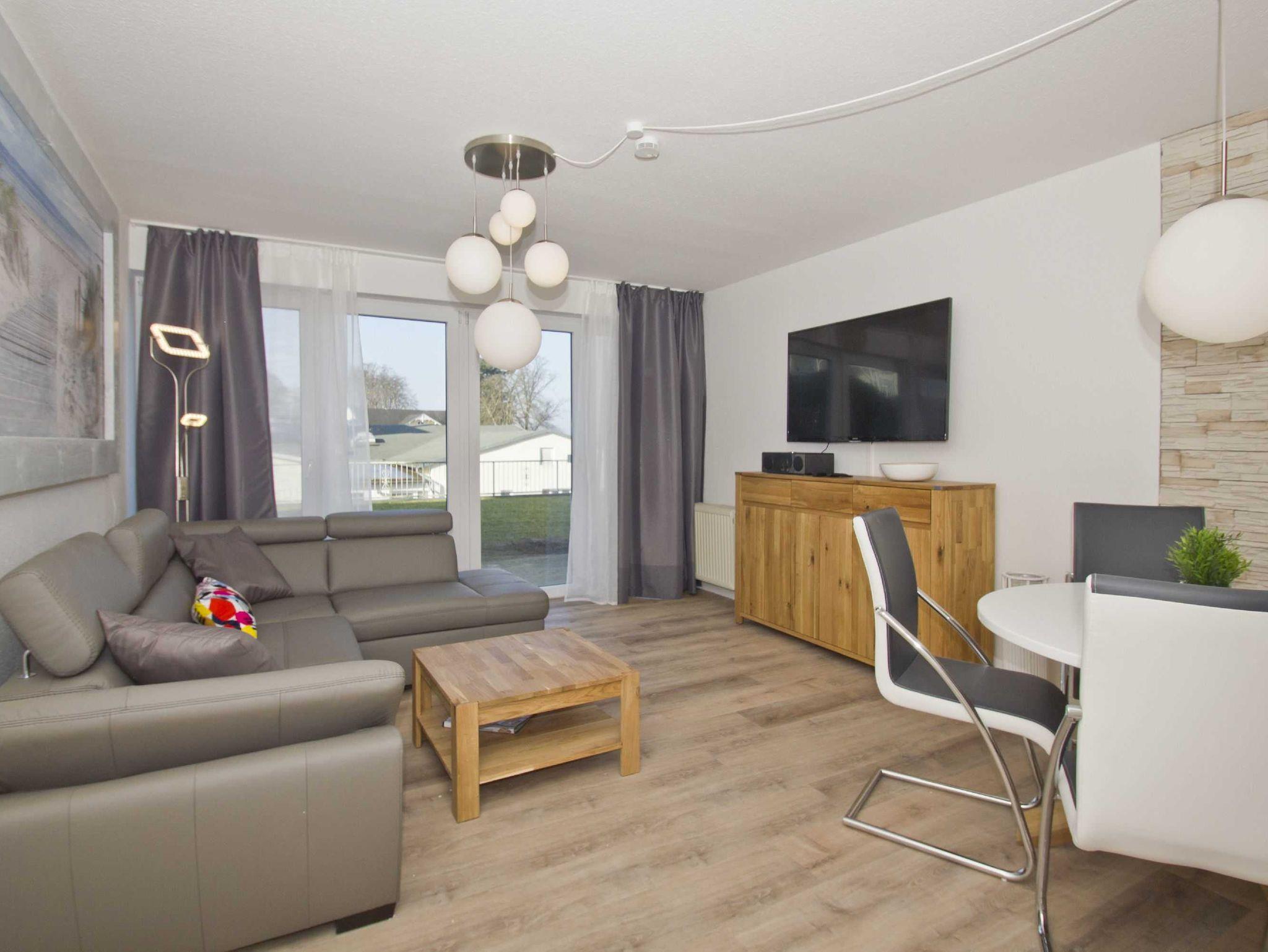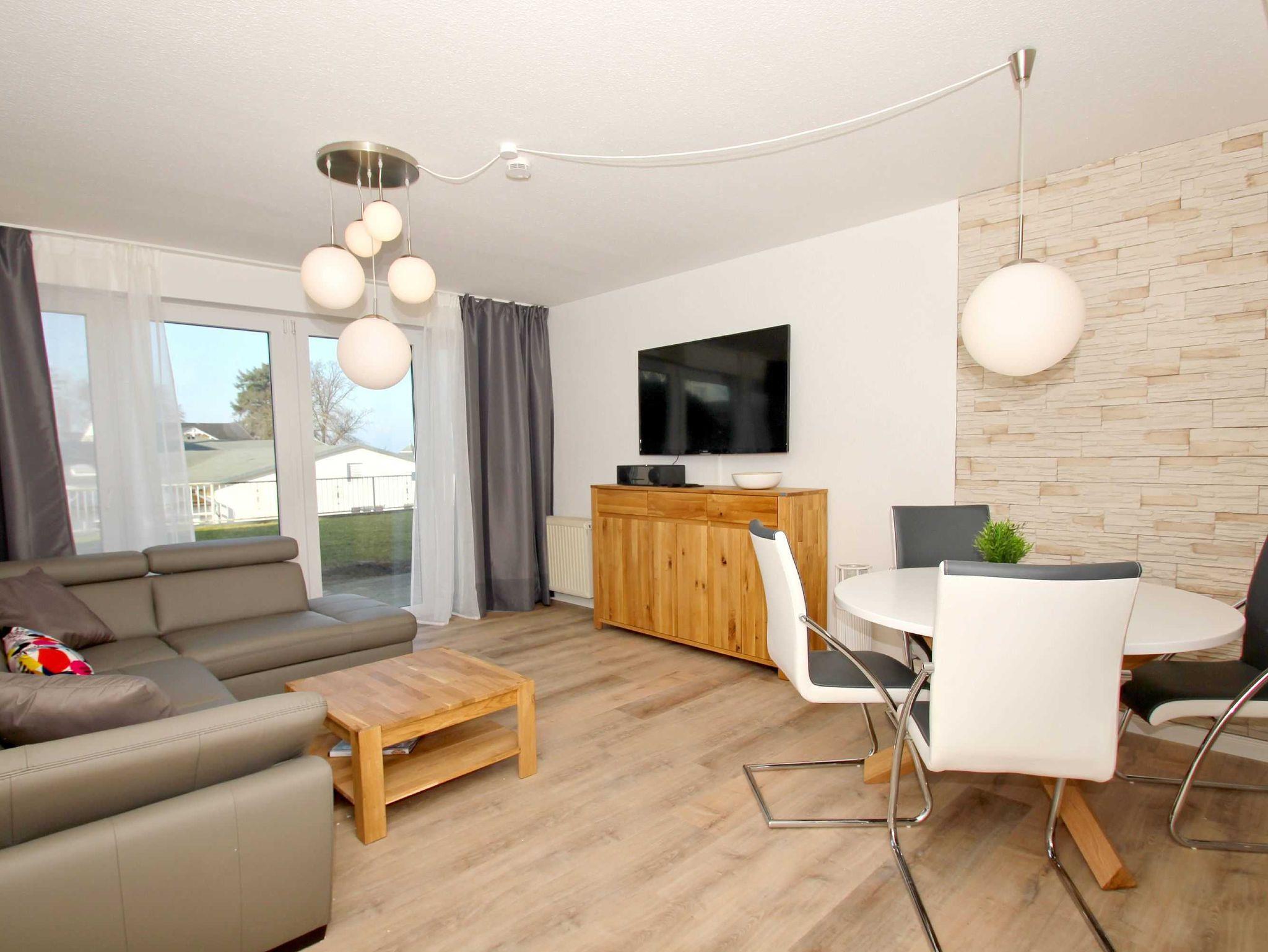 Dank der gelungenen Mischung aus traditionell rustikalen, gemütlich modernen und extravagant kreativen Einrichtungsdetails lädt der Wohnbereich der Ferienwohnung zu entspannenden Momenten vor und nach Ihren Ausflügen ein. Genießen Sie abends beispielsweise einen schönen Film - das komfortable Schlafsofa mit mehreren Kissen und der große Flachbild-TV sorgen für einen Hauch Kinoatmosphäre. Darüber hinaus beherbergt die Zone ein Radio mit integriertem CD-Player. Spielen Sie Ihre Lieblingsmusik ab und betrachten dabei durch die große Fensterfront die herrliche Gegend. Die vielen - und äußerst speziell gestalteten - Lichtquellen verströmen bei Dunkelheit ein wohliges Flair, in dem Sie unter anderem ein schönes Buch lesen oder mit Ihrer Familie den erlebten Tag noch einmal Revue passieren lassen können.