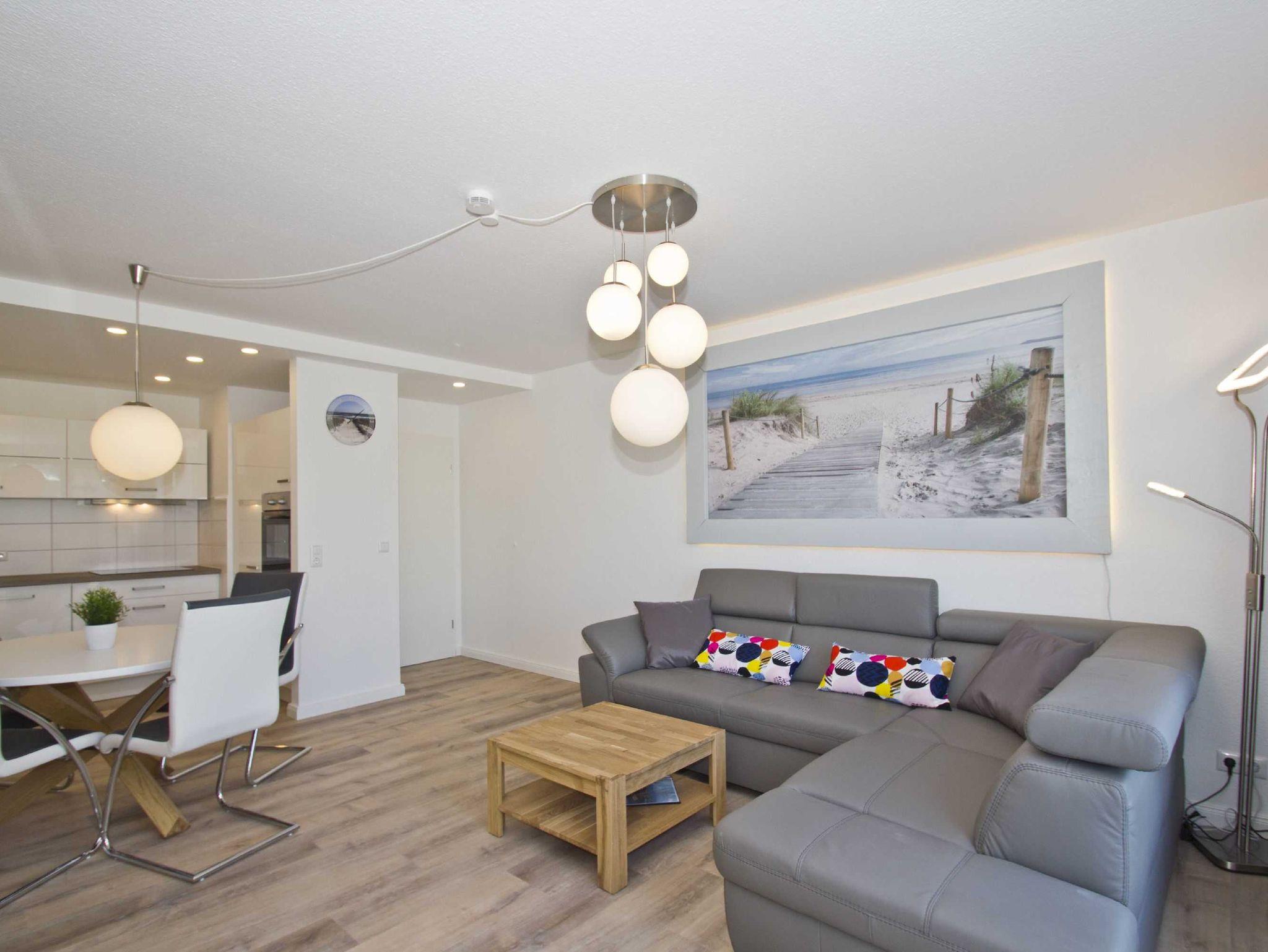 So hell und warm, wie Ihr nächster Urlaub im Ostseebad Göhren auf der Insel Rügen werden soll, so ist auch unsere stilvolle Ferienwohnung eingerichtet. Auf insgesamt circa 60 Quadratmetern finden Sie und Ihre Lieben einen bequemen Wohnraum mit integrierter offener Küche, ein separates Schlafzimmer sowie ein Badezimmer mit Dusche vor. Alle Räume sind mit modernen Möbeln, kreativen Dekorationselementen und jeder Menge nützlichem Zubehör ausgestattet. Freuen Sie sich auf eine Unterkunft zum Wohlfühlen.