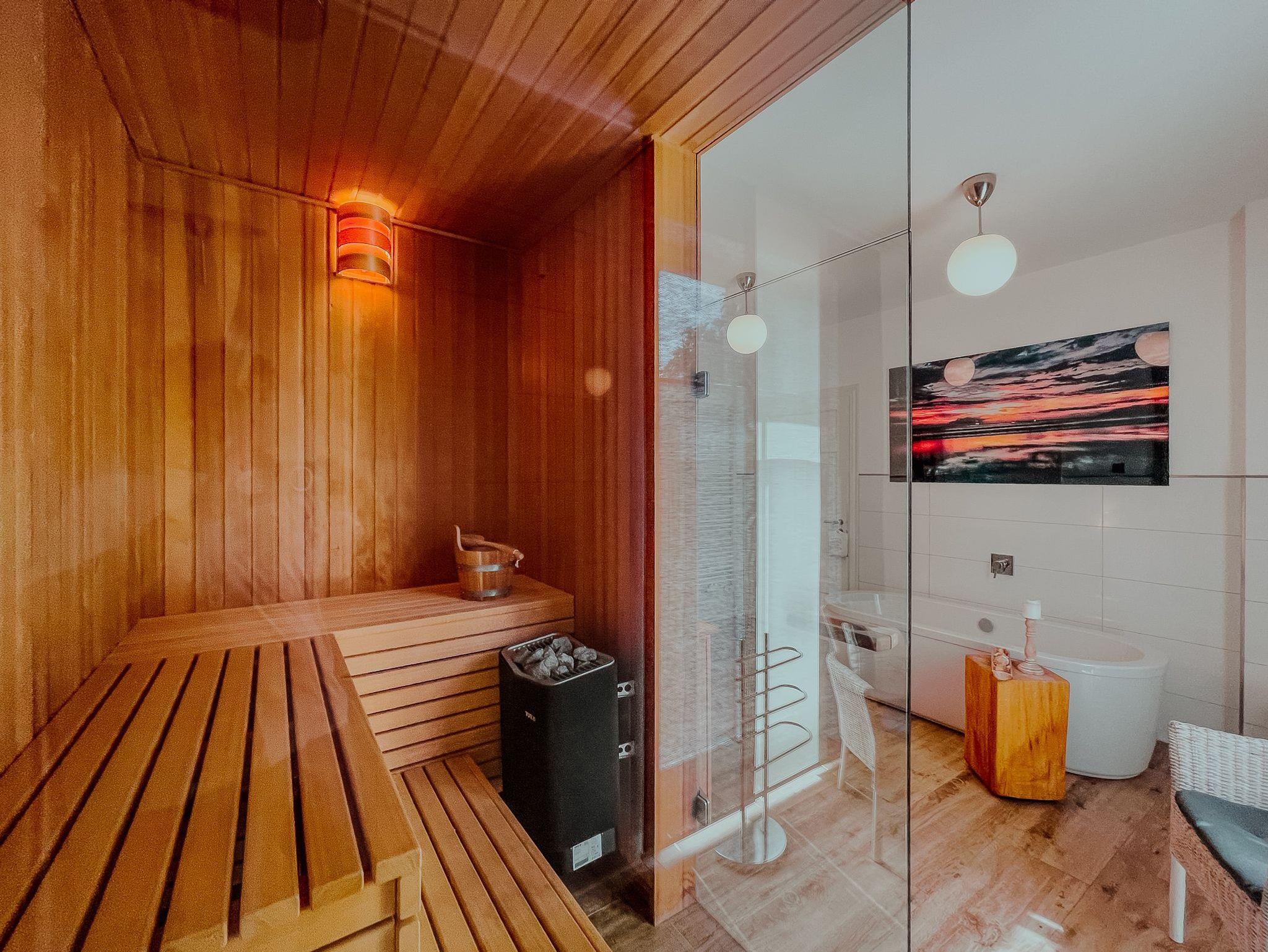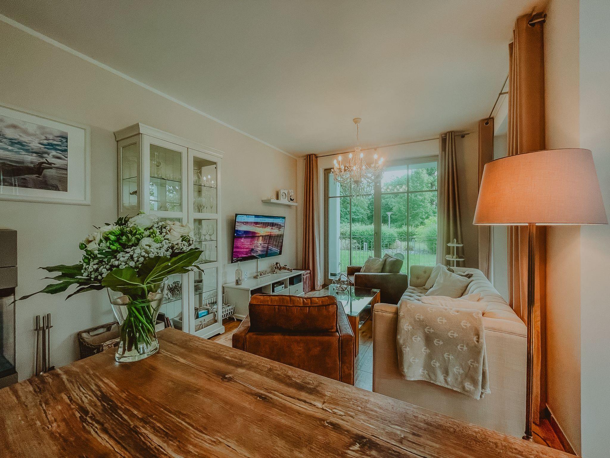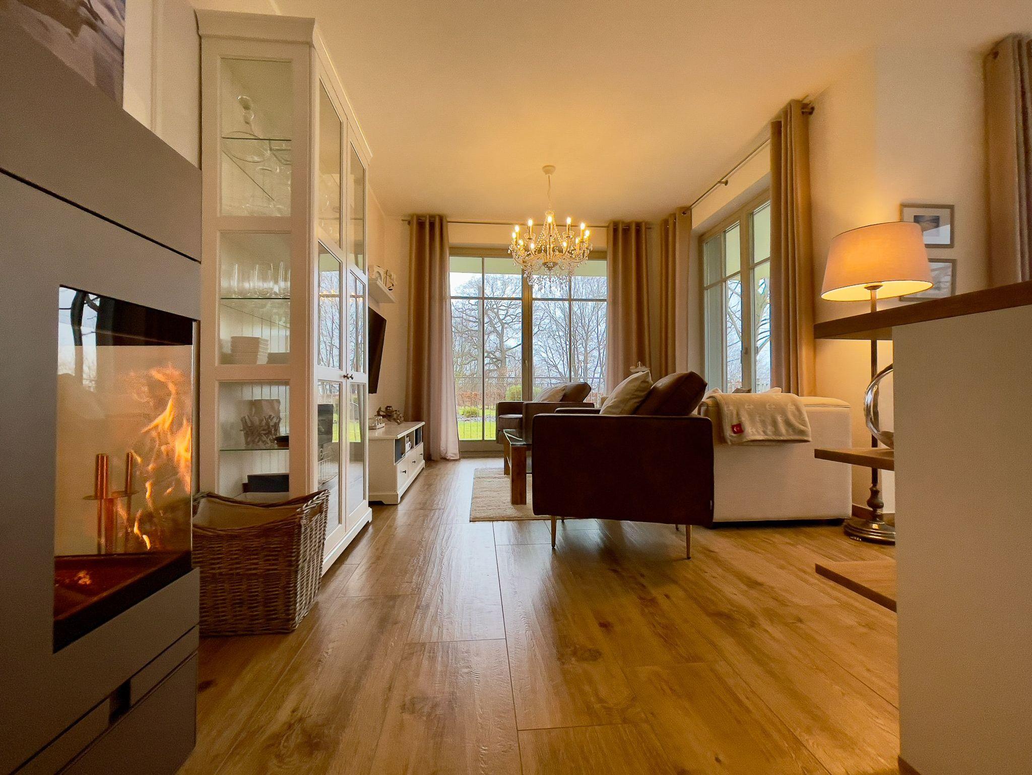 Exklusive Ferienwohnung mit Sauna, Kamin und zwei Terrassen in Göhren, ideal für Familien und Paare.