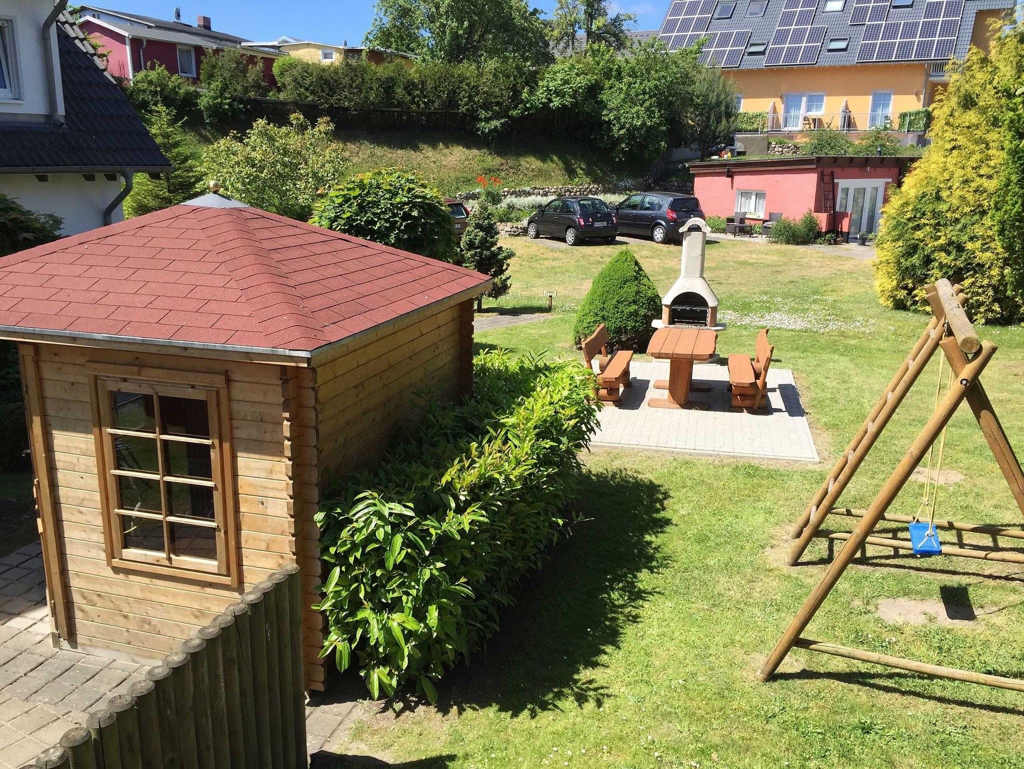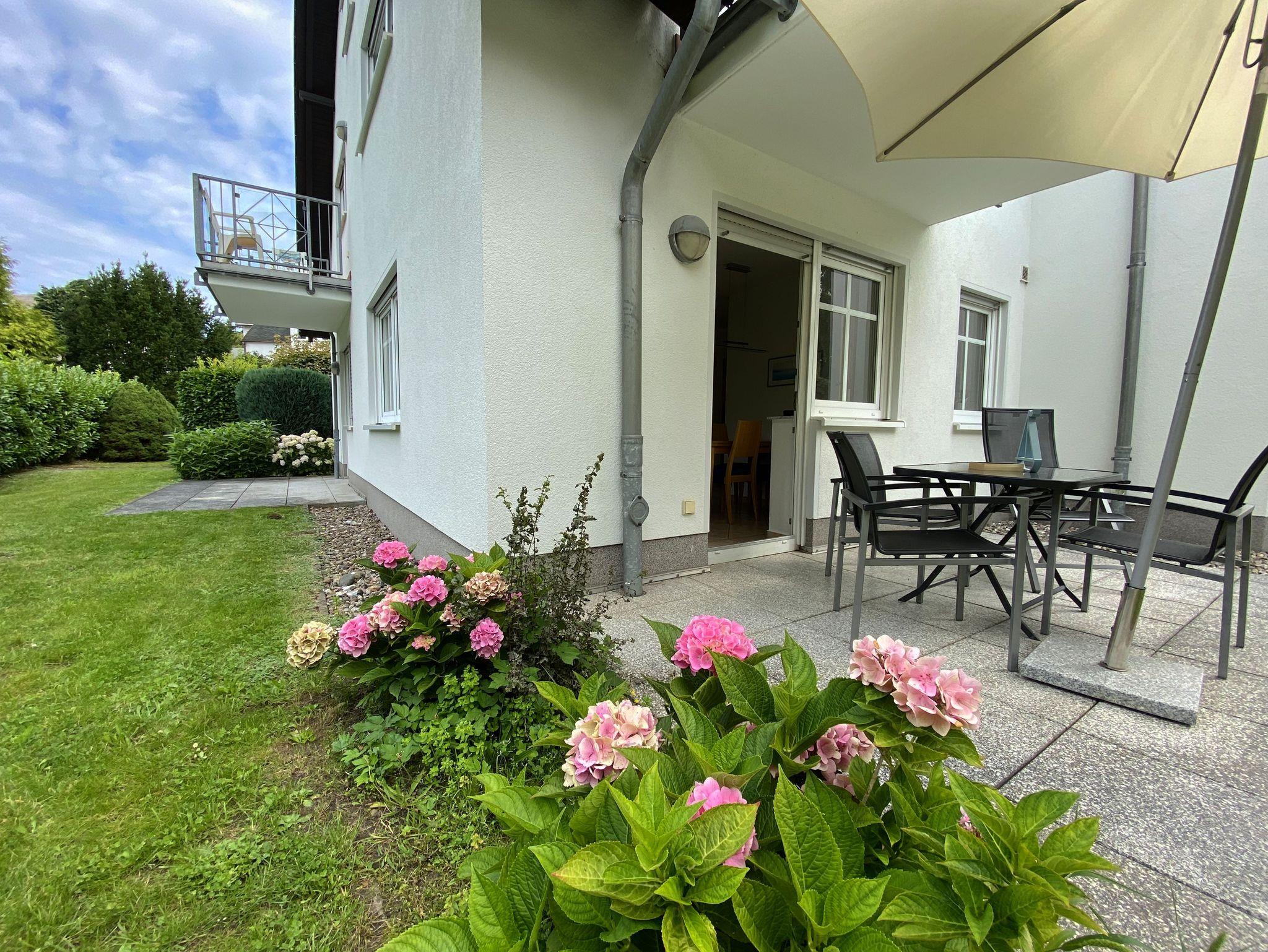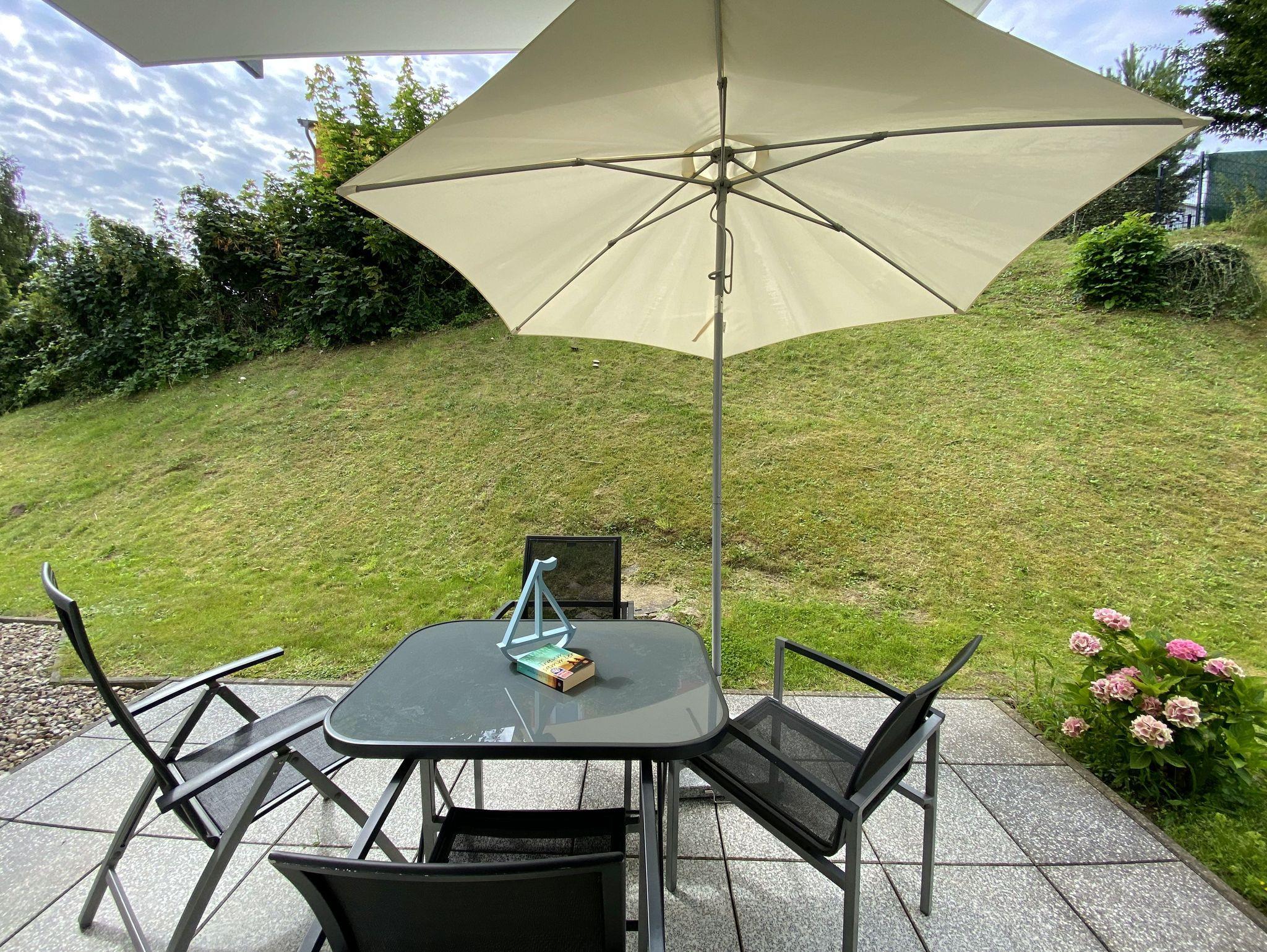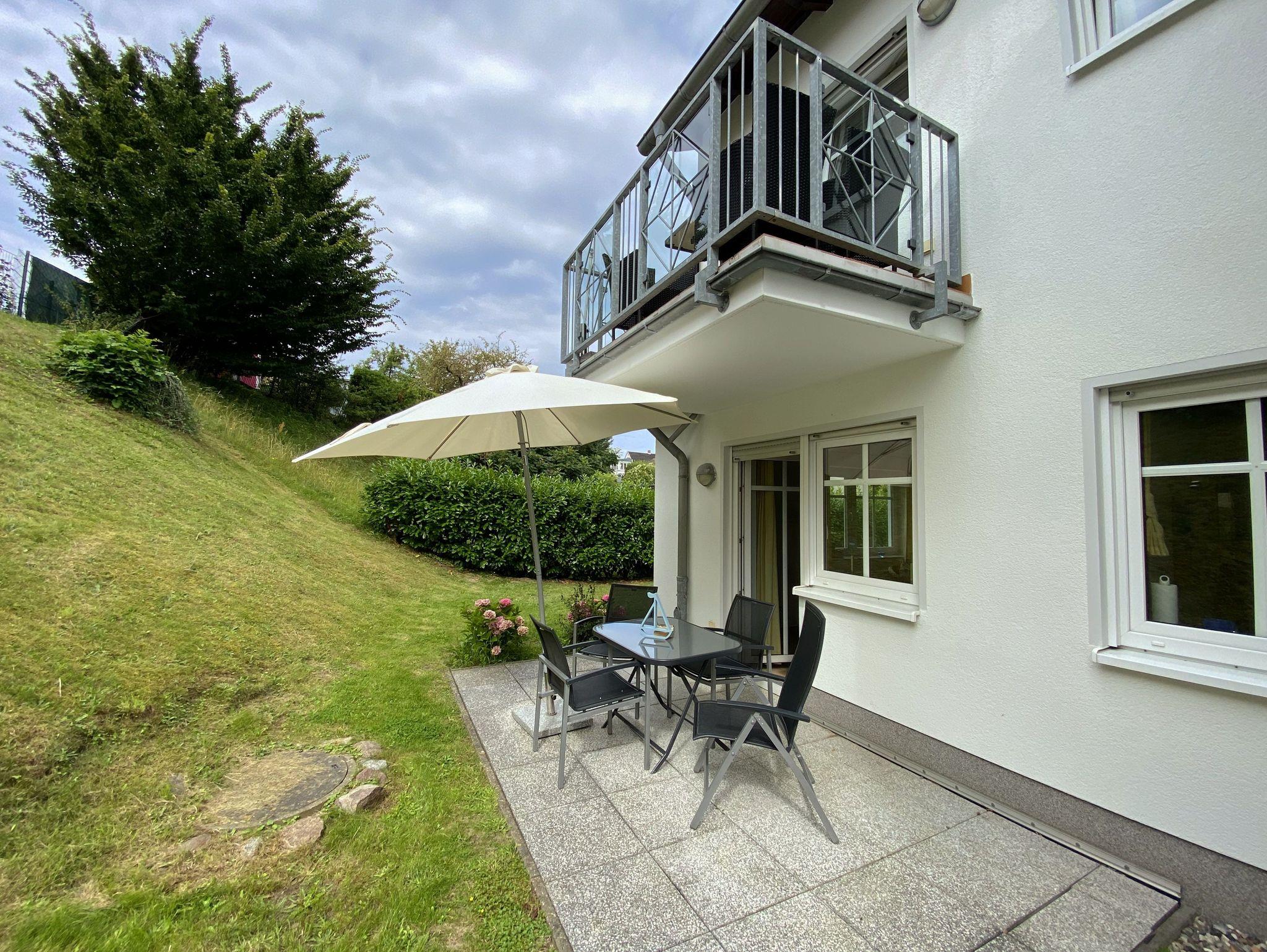 Komfortable Ferienwohnung in Göhren mit zwei Terrassen und Nähe zum Strand, ideal für Familien und Paare.