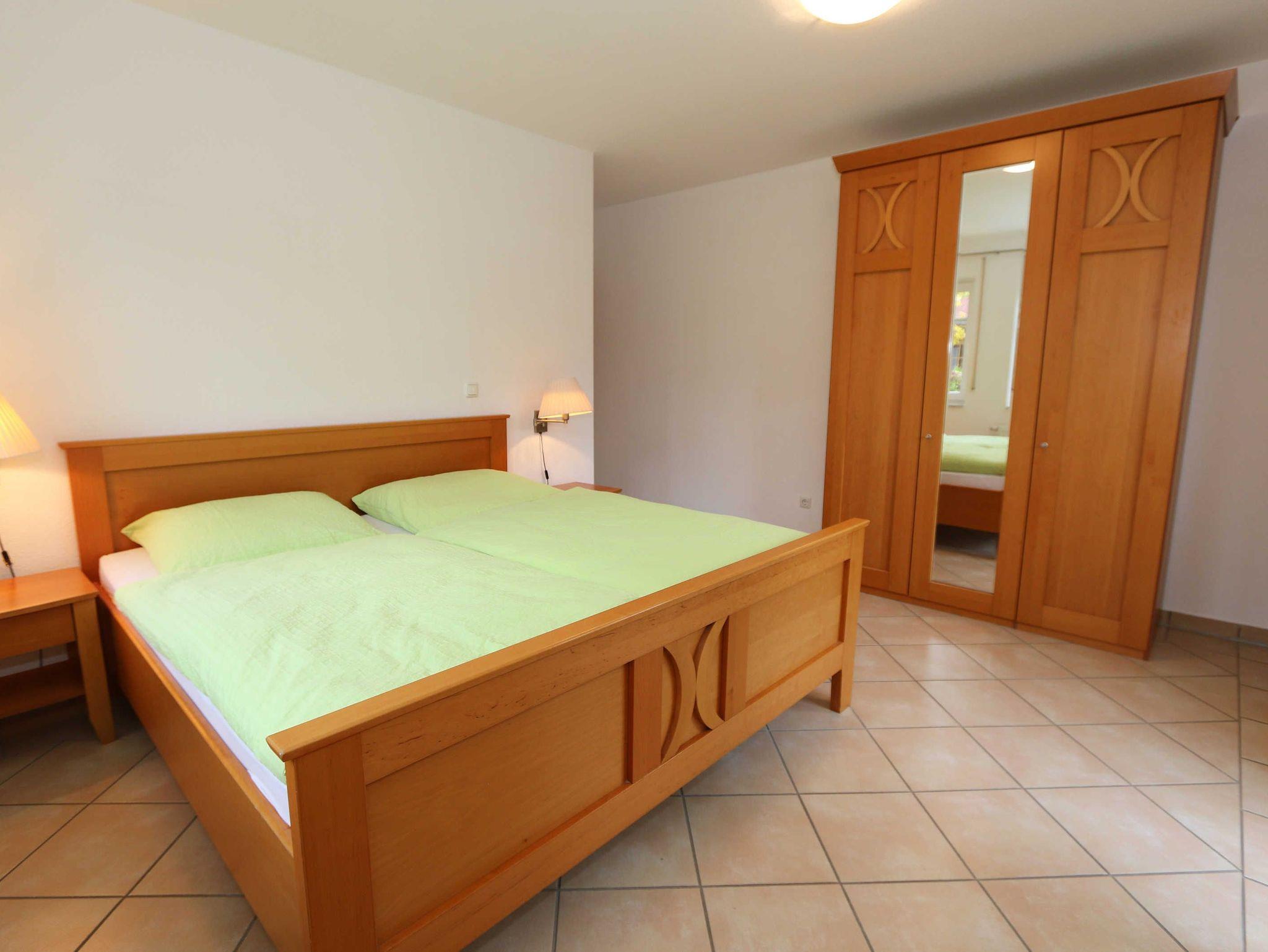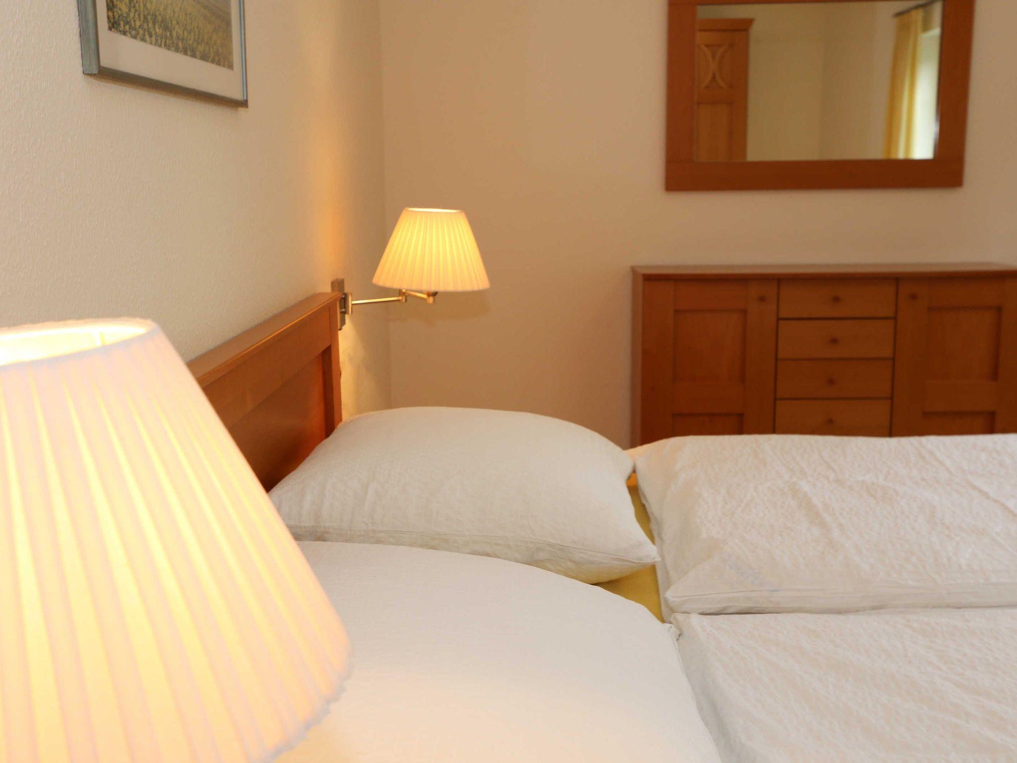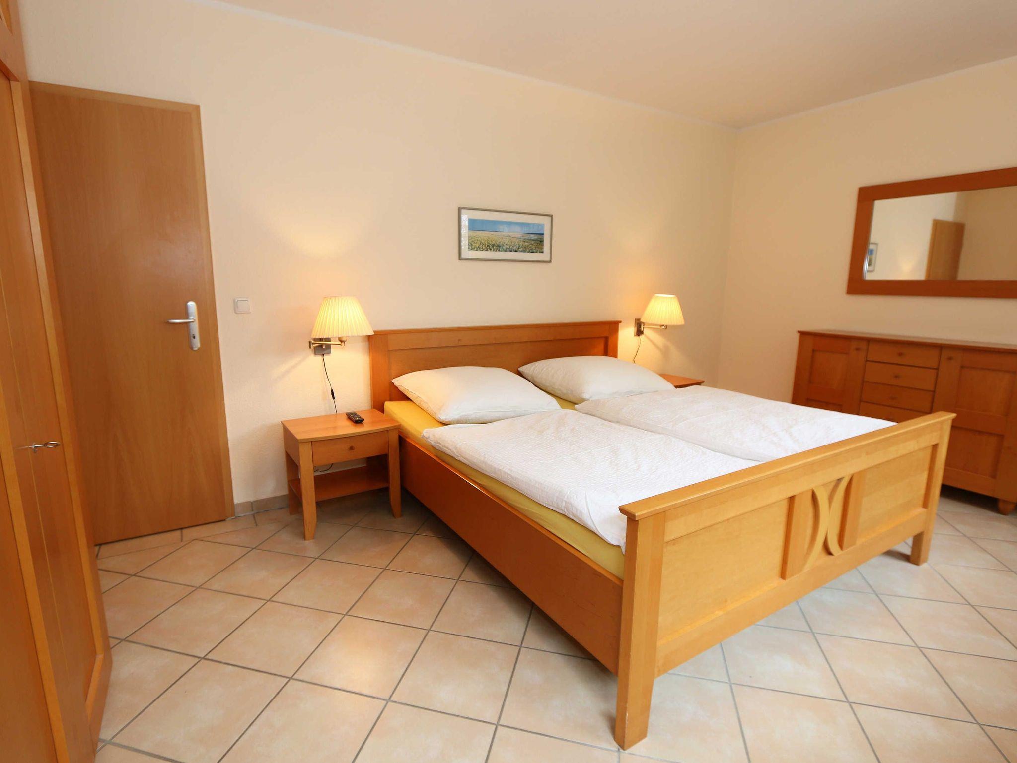 Die lichtdurchflutete, komfortable Nichtraucherwohnung verläuft auf über 78 m² und ist ideal für 2 bis 4 Personen geeignet. Ein Kleinkind (3 Jahre) im Kinderreisebett kann als Aufbettung (5. Person) untergebracht werden. Die beiden Terrassen (Richtung Westen und Süden) laden zum Verweilen ein und erlauben es Ihnen den ganzen Tag die mitwandernde Sonne zu genießen. Der kombinierte Wohn- und Essbereich ist mit einer hellen Küchenzeile ausgestattet. Die Küchenzeile beinhaltet ein Ceranfeld, Backofen, Geschirrspüler, Mikrowelle, Kühlschrank mit Gefrierfach, Kaffeemaschine, Senseo Kaffeeautomat, Toaster, Wasserkocher sowie diverse Küchenutensilien. Der dazugehörige Essbereich umfasst einen Esstisch mit 4 Stühlen. Ein Wohnbereich mit Sofa, Sessel, Couchtisch, Vitrine, Leselampe, Flatscreen-TV mit DVD-Player, Stereoanlage mit CD-Player und eine kleine Auswahl an Gesellschaftsspielen runden das Ganze ab. Das 1. Schlafzimmer ist mit einem Doppelbett (1,80 m x 2,00 m), 2 Nachtschränken, einen Flachbild-TV und Kleiderschrank ausgestattet. Das 2. Schlafzimmer verfügt ebenfalls über ein Doppelbett (1,80 m x 2,00 m) und 2 Nachtschränke und einen Kleiderschrank. Für einen ruhigen Schlaf sorgen in beiden Schlafzimmern Rollläden. Das großzügige Bad ist mit einer Dusche mit flachem Einstieg, Fön, WC und Waschtisch ausgestattet. In einem separaten Abstellraum, welcher zur Wohnung gehört finden Sie diverse Reinigungsutensilien sowie einen Wäscheständer. Auch im Urlaub brauchen Sie auf einen Internetzugang (WLAN über Hotspot) in Ihrer Wohnung nicht zu verzichten. Dieser ist inklusive. 1x Kinderreisebett (ohne Matratze und Bett Inlett) ist für unsere kleinen Gäste inklusive. Ein Hochstuhl kann gegen eine Extragebühr dazu gebucht werden. Haustiere sind nicht erlaubt. In einem Gemeinschaftsraum können Sie gegen einen Aufpreis eine Waschmaschine und einen Trockner nutzen. Der Parkplatz (Nr. 2) befindet sich direkt auf dem Grundstück. Ihre Fahrräder können Sie auf dem Areal in einen Fahrradschuppen unterstellen. Ein Gemeinschaftsgrillplatz mit massiven Holzbänken und Standgrill ist vorhanden. Die Erstausstattung eines Wäschepaketes (komplette Bettwäsche, 1 Duschhandtuch, 2 kleine Handtücher) können Sie bis 14 Tage vor Anreise gegen einen Aufpreis dazu buchen oder durch eigene ergänzen. Ab 2 gebuchten Paketen erhalten Sie einmalig 1 Geschirrhandtuch und 1 Duschvorleger hinzu.