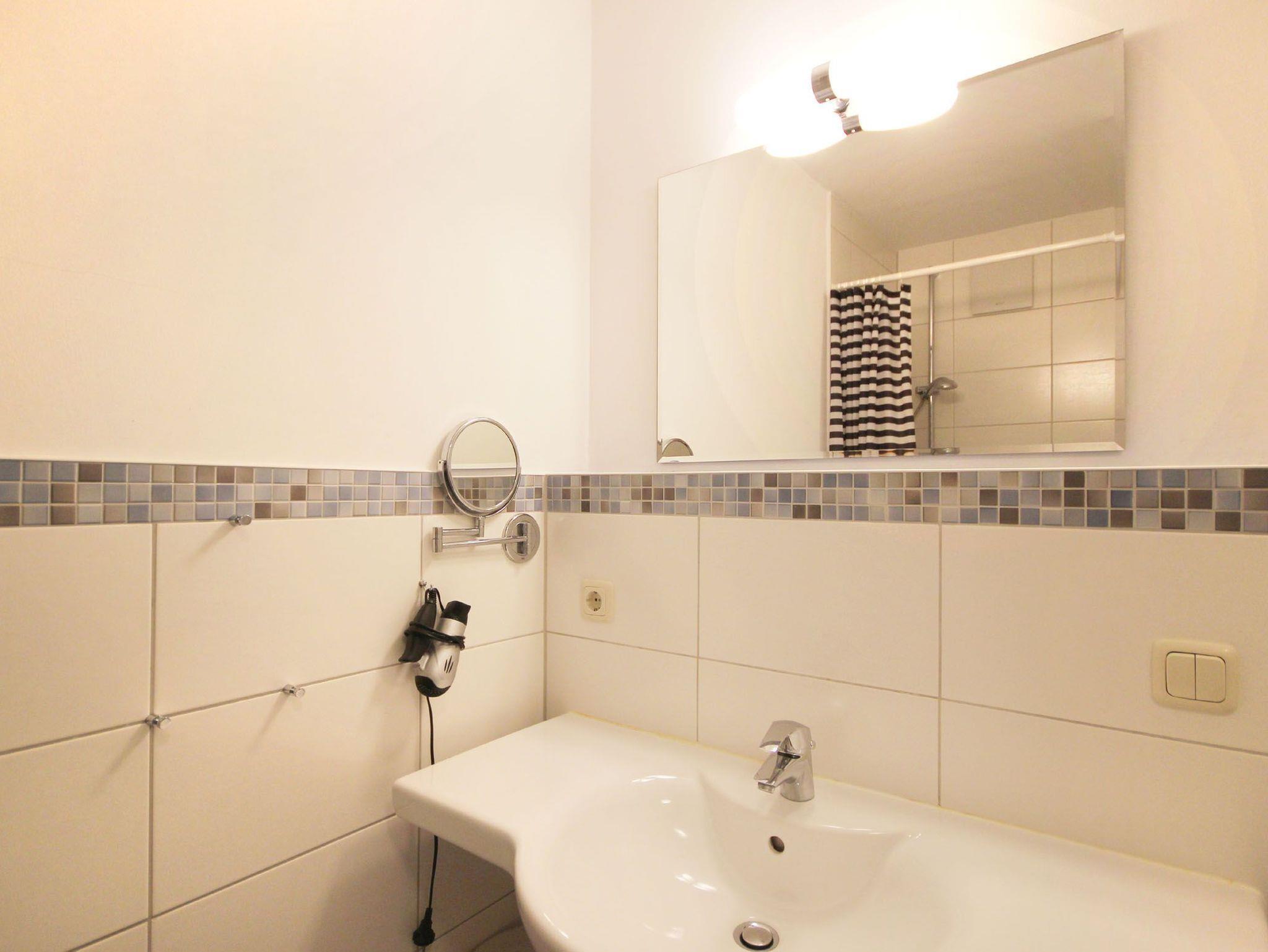 Diese freundliche Wohnung ist aufgeteilt in einen Wohnraum mit französischem Balkon und integrierter Küchenzeile, ein Schlafzimmer ebenso mit Zugang zum Balkon und ein Duschbad mit Waschtisch und WC. Das Wohnzimmer begrüßt Sie mit einem Schlafsofa und Sessel sowie Flachbild-TV. Das Schlafzimmer verfügt über ein Doppelbett (1,80m x 2m) sowie einen Kleiderschrank. Die Küchenzeile ist mit Backofen, Geschirrspüler, Cerankochfeld, Kühlschrank mit kleinem Gefrierfach, Cerankochfeld, Mikrowelle, Kaffeemaschine, Wasserkocher und Toaster ausgestattet. Highlights: Kostenfreies WLAN sowie ein frei wählbarer PKW-Stellplatz direkt am Haus. Haustiere sind in dieser Wohnung herzlich willkommen.