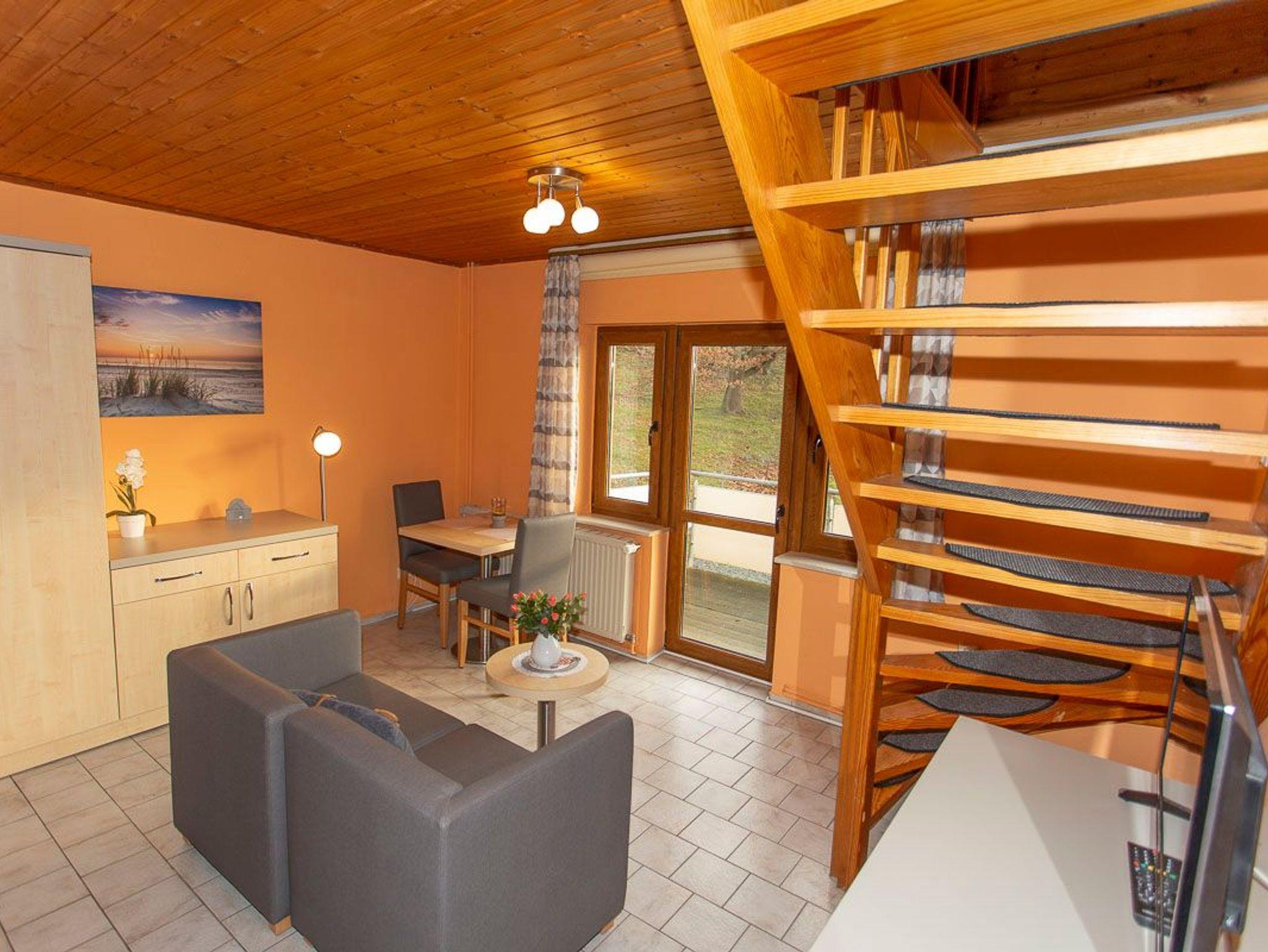 In diesen Maisonette- Ferienwohnungen ist die Belegung nur mit zwei Personen möglich. Jede Wohnung hat W-LAN und einen eigenen Parkplatz.