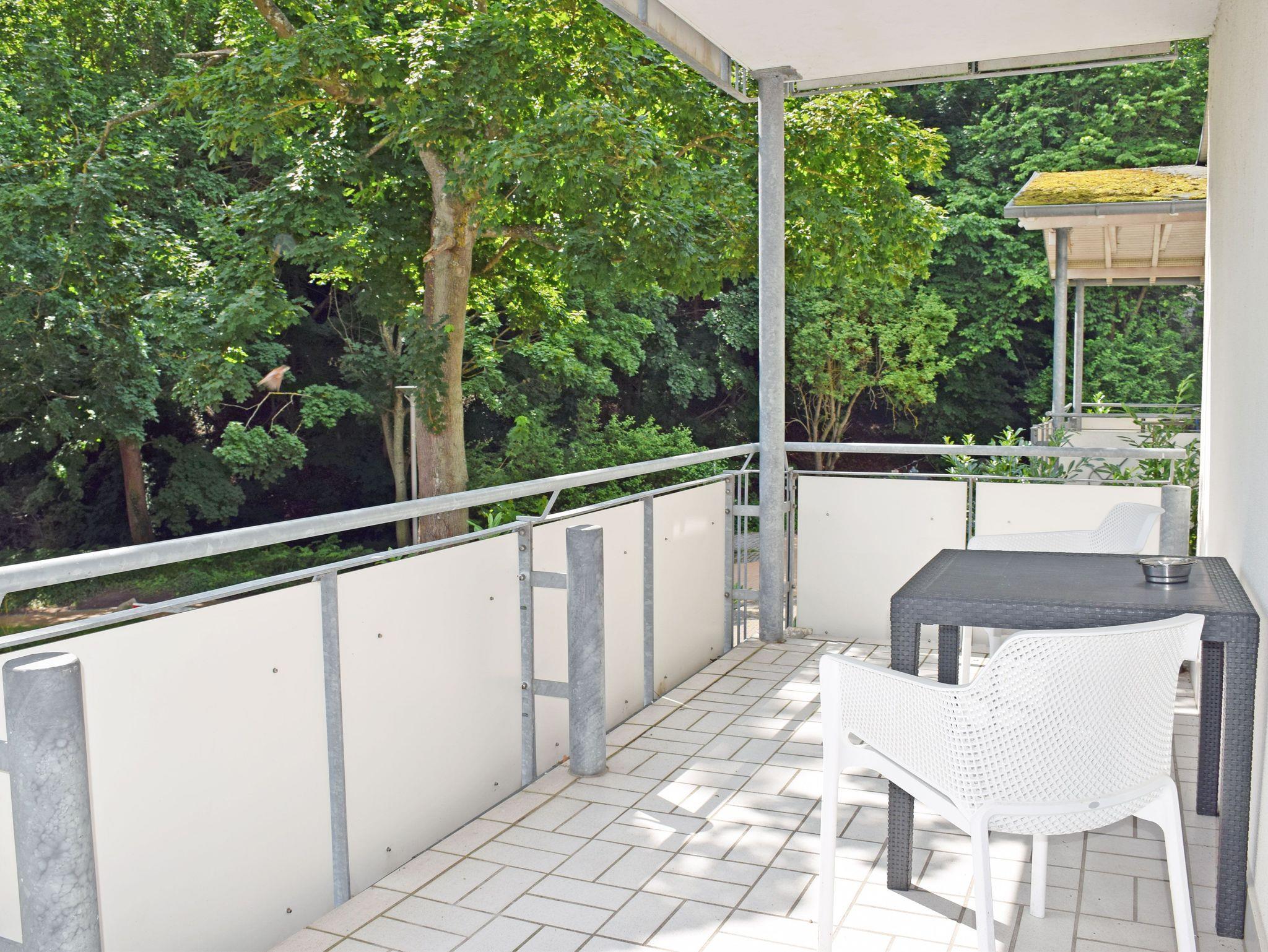 Balkon (Nr. 6, 7 und 9) oder Terrasse (Nr. 4 und 5) mit Gartenmöbeln