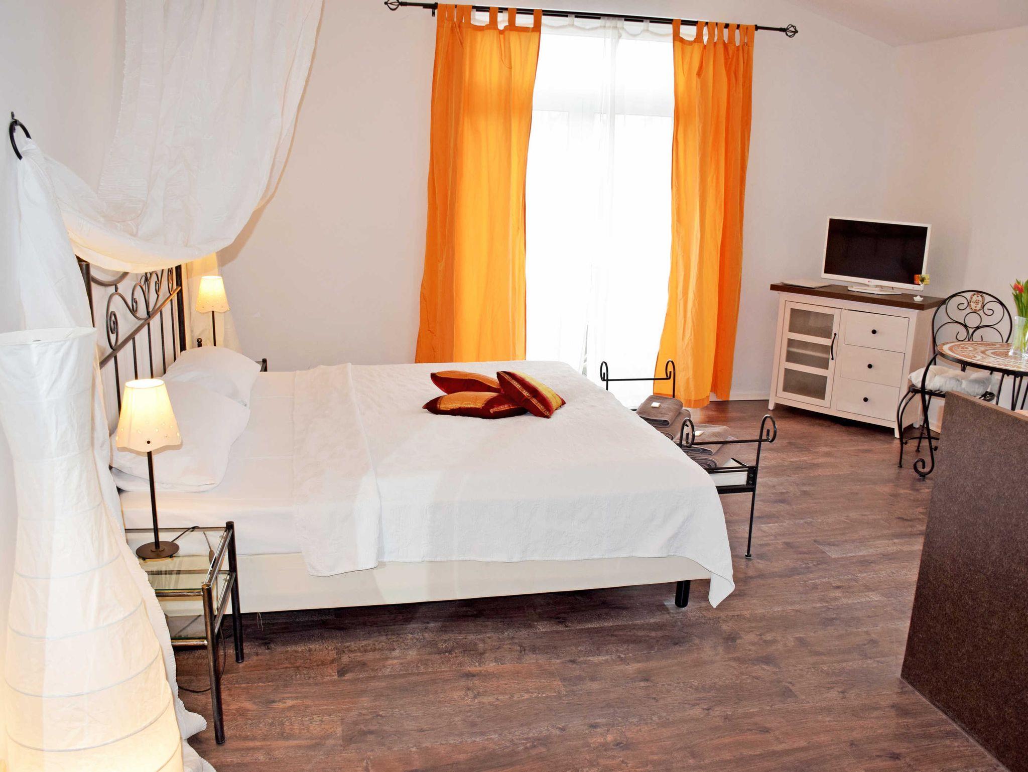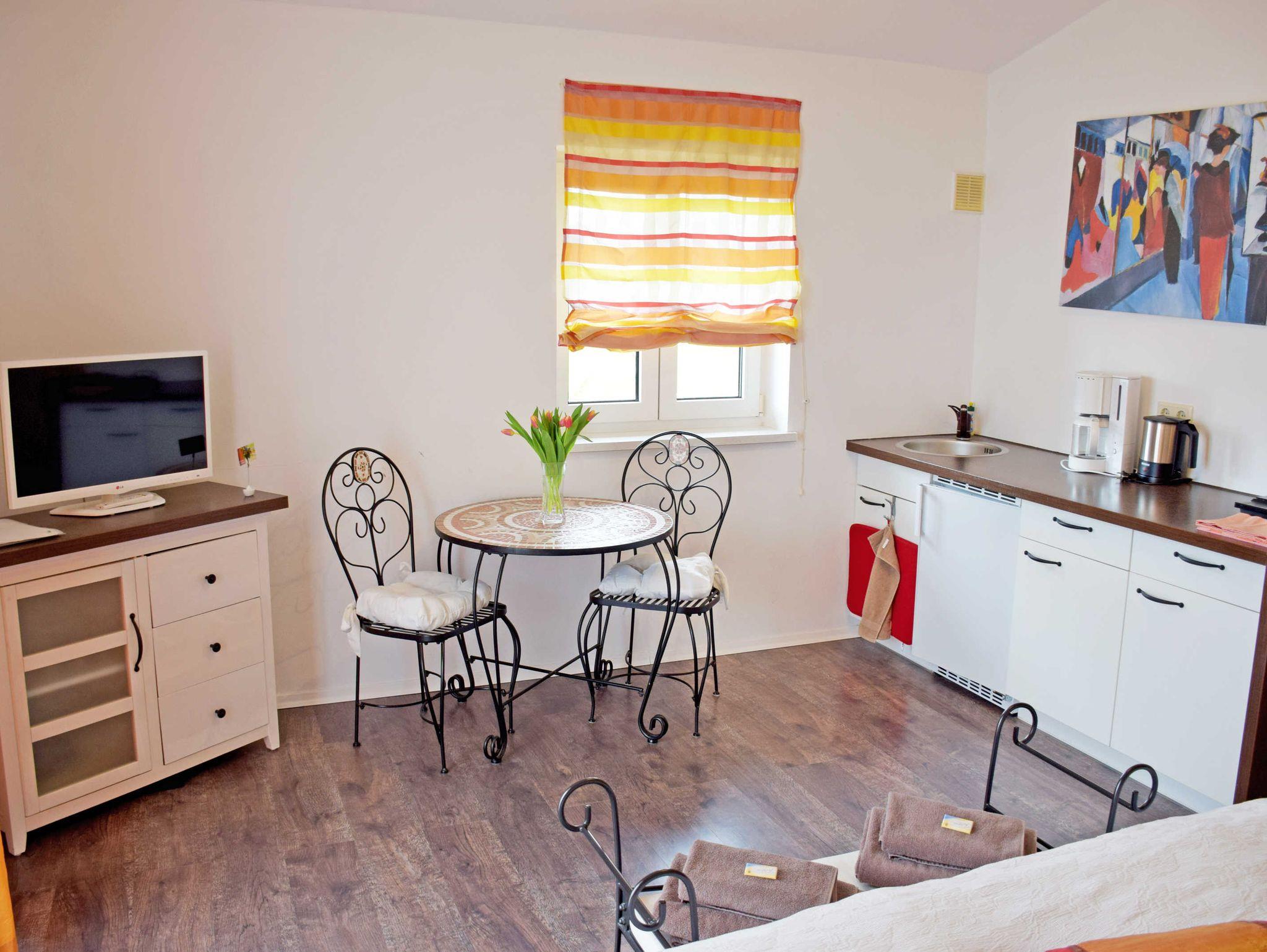Es erwarten Sie sechs geräumige und stilvoll eingerichtete Appartements für je zwei Personen (Apartment 6 für 3 Personen).