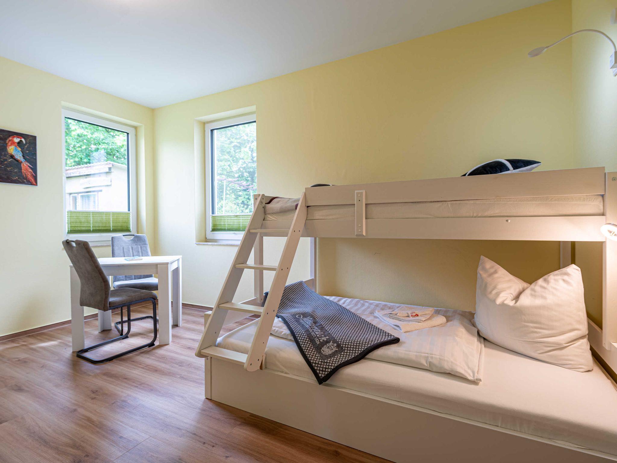 Schlafen 2: Doppelstockbett (unten 1,40 x 2,00 m oben 0,90 x 2,00 m) Verdunkelungsmöglichkeit, Insektenschutz