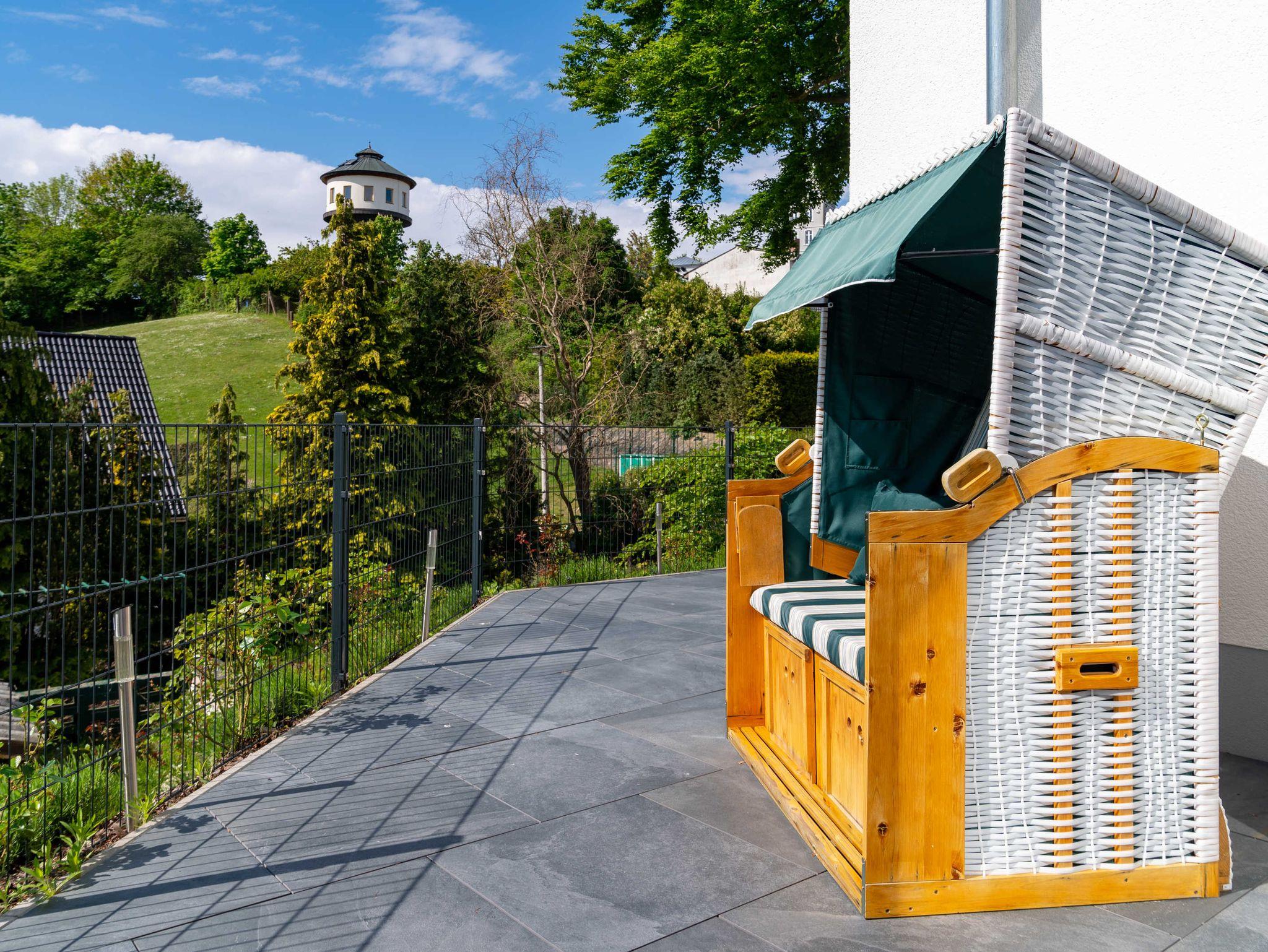 Große Süd- Ost- Terrasse mit Blick ins Biosphärenreservat, Sitz- und Liegemöglichkeit, Elektrogrill