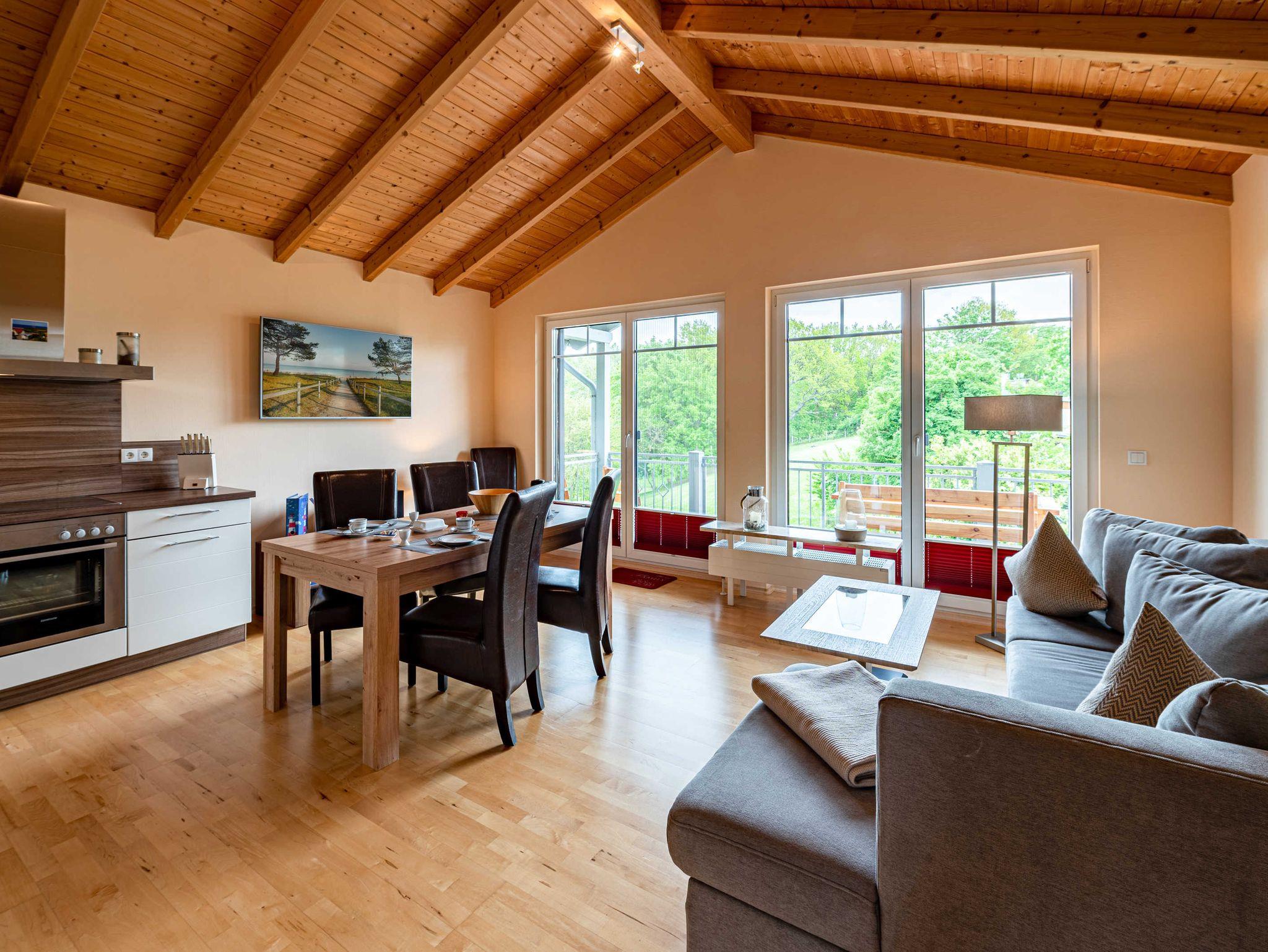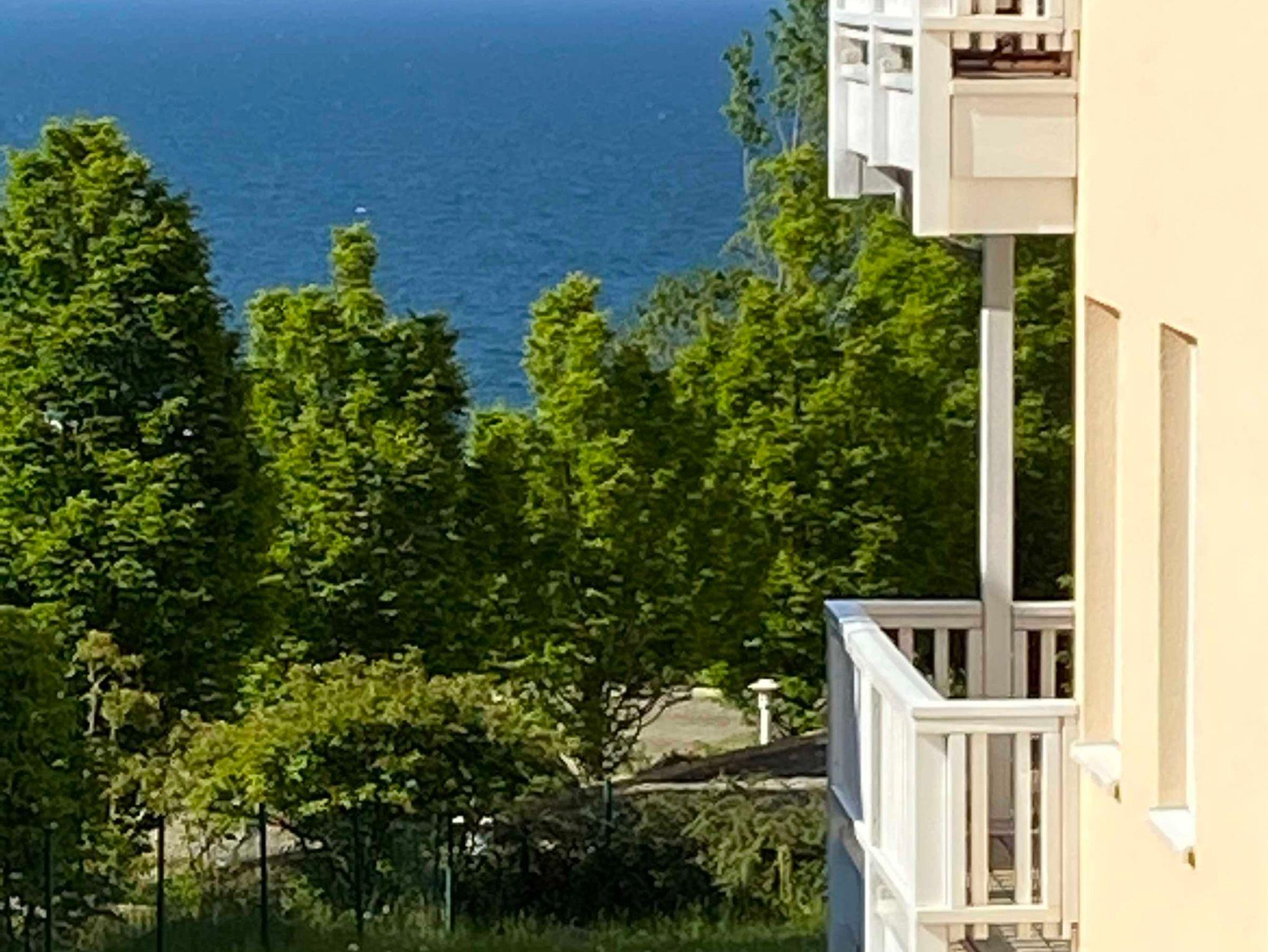 Moderne Ferienwohnung mit Meerblick, Sauna und Balkon in ruhiger Lage nahe Strand und Wald.