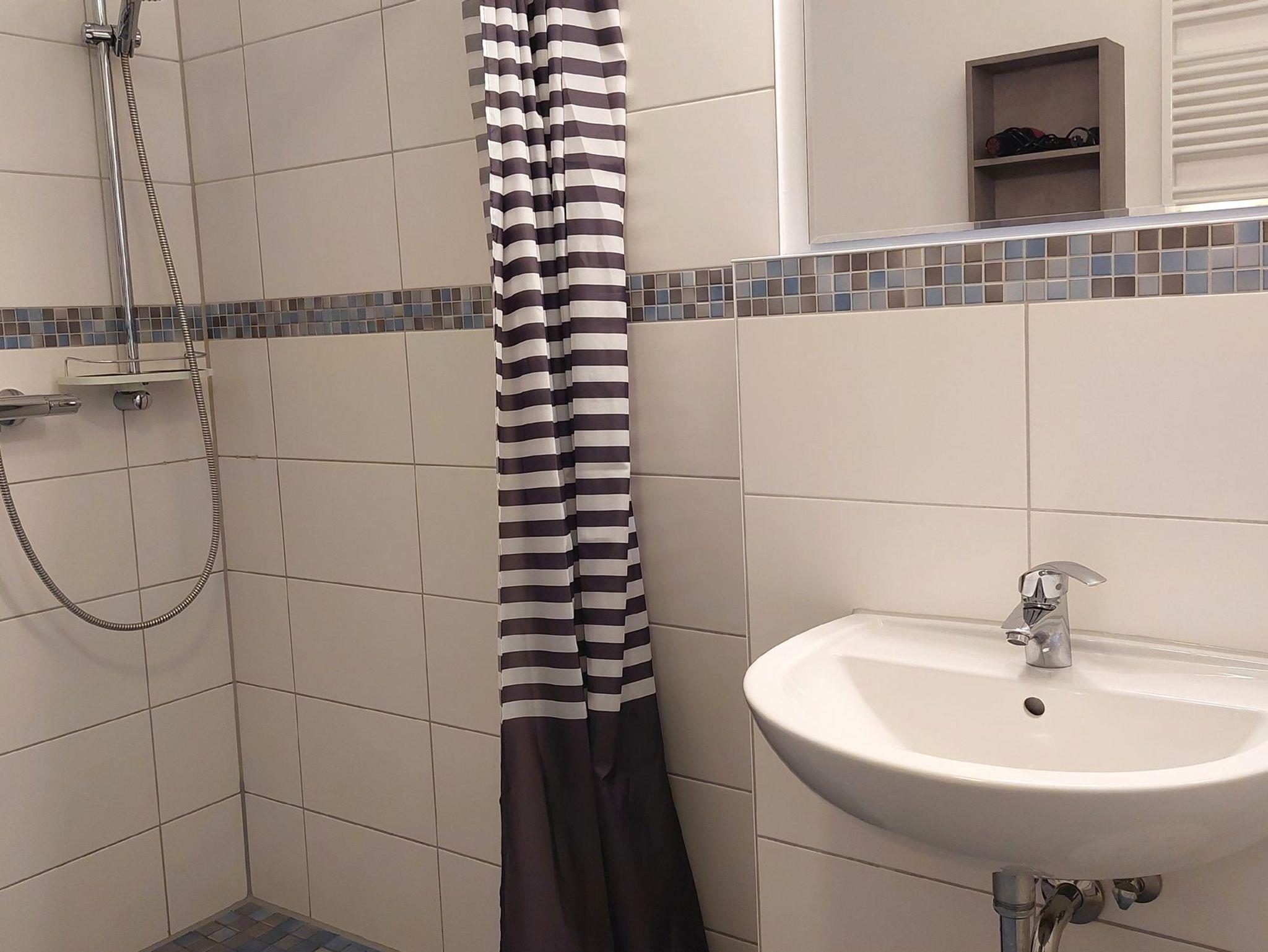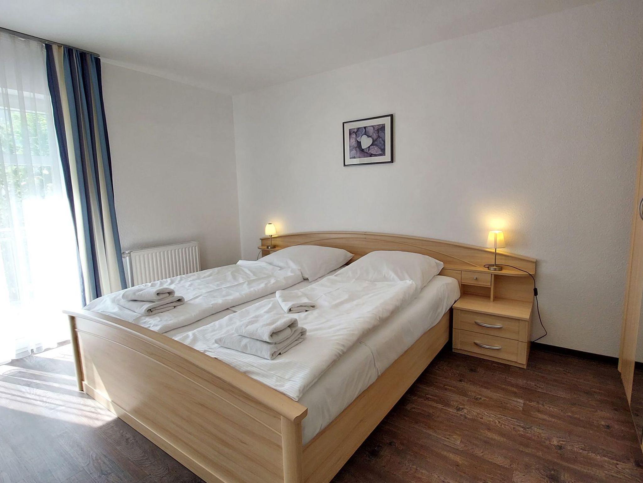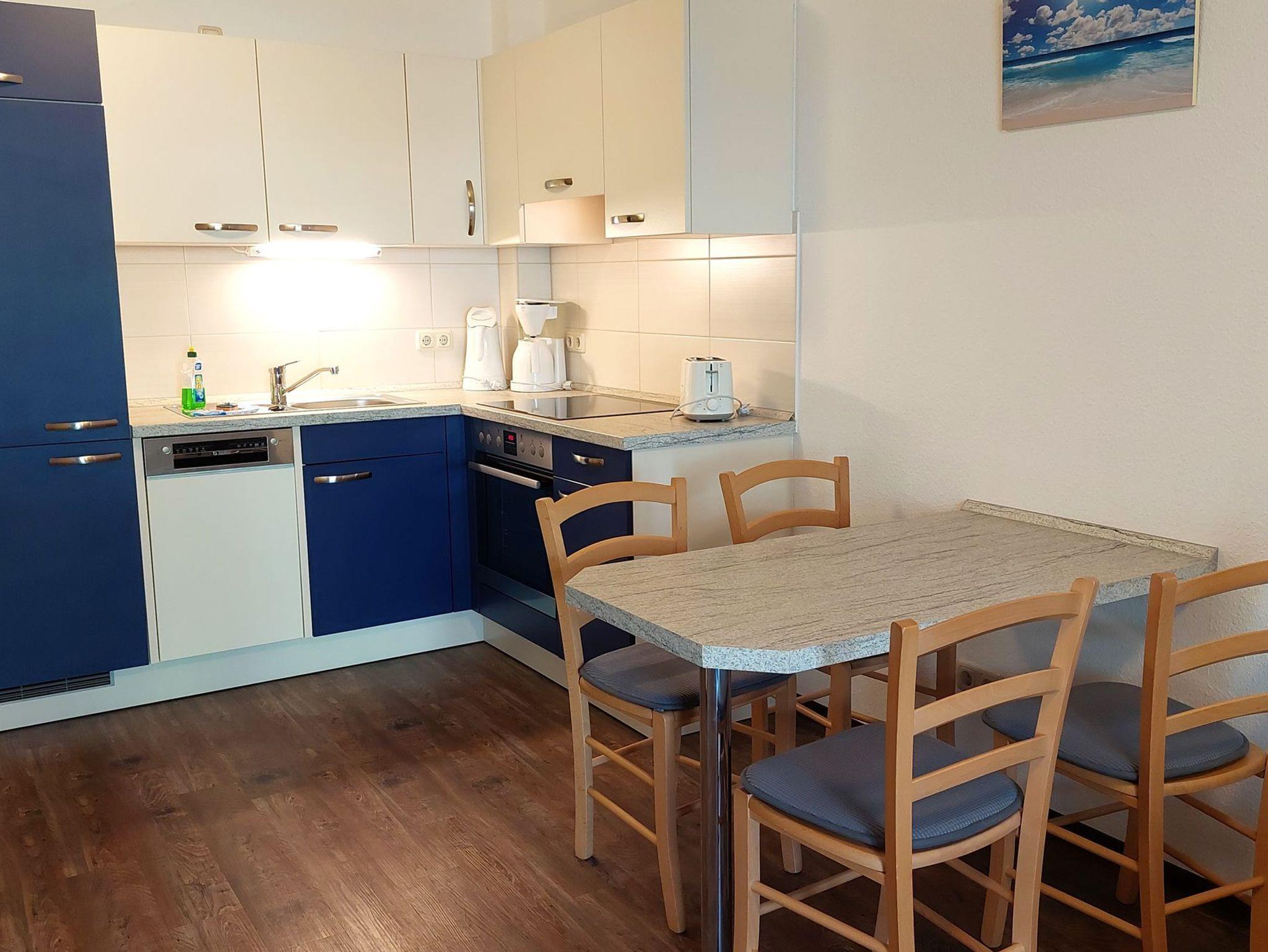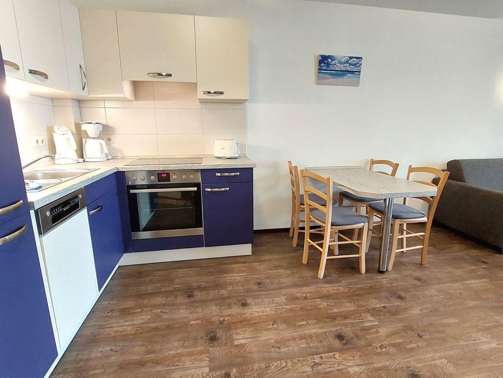 Diese freundliche Wohnung ist aufgeteilt in einen Wohnraum mit Terrasse und integrierter Küchenzeile, ein Schlafzimmer ebenso mit Zugang zur Terrasse und ein Duschbad mit Waschtisch und WC. In dieser Wohnung gibt es besonders große ebenerdige Dusche. Das Wohnzimmer begrüßt Sie mit einem Schlafsofa und Sessel sowie Flachbild-TV. Das geräumige Schlafzimmer verfügt über ein Doppelbett (1,80m x 2m) sowie einen Kleiderschrank. Die Küchenzeile ist mit Backofen, Geschirrspüler, Cerankochfeld, Kühlschrank mit kleinem Gefrierfach, Cerankochfeld, Mikrowelle, Kaffeemaschine, Wasserkocher und Toaster ausgestattet. Highlights: Kostenfreies WLAN sowie ein frei wählbarer PKW-Stellplatz direkt am Haus. Haustiere sind in dieser Wohnung herzlich willkommen.