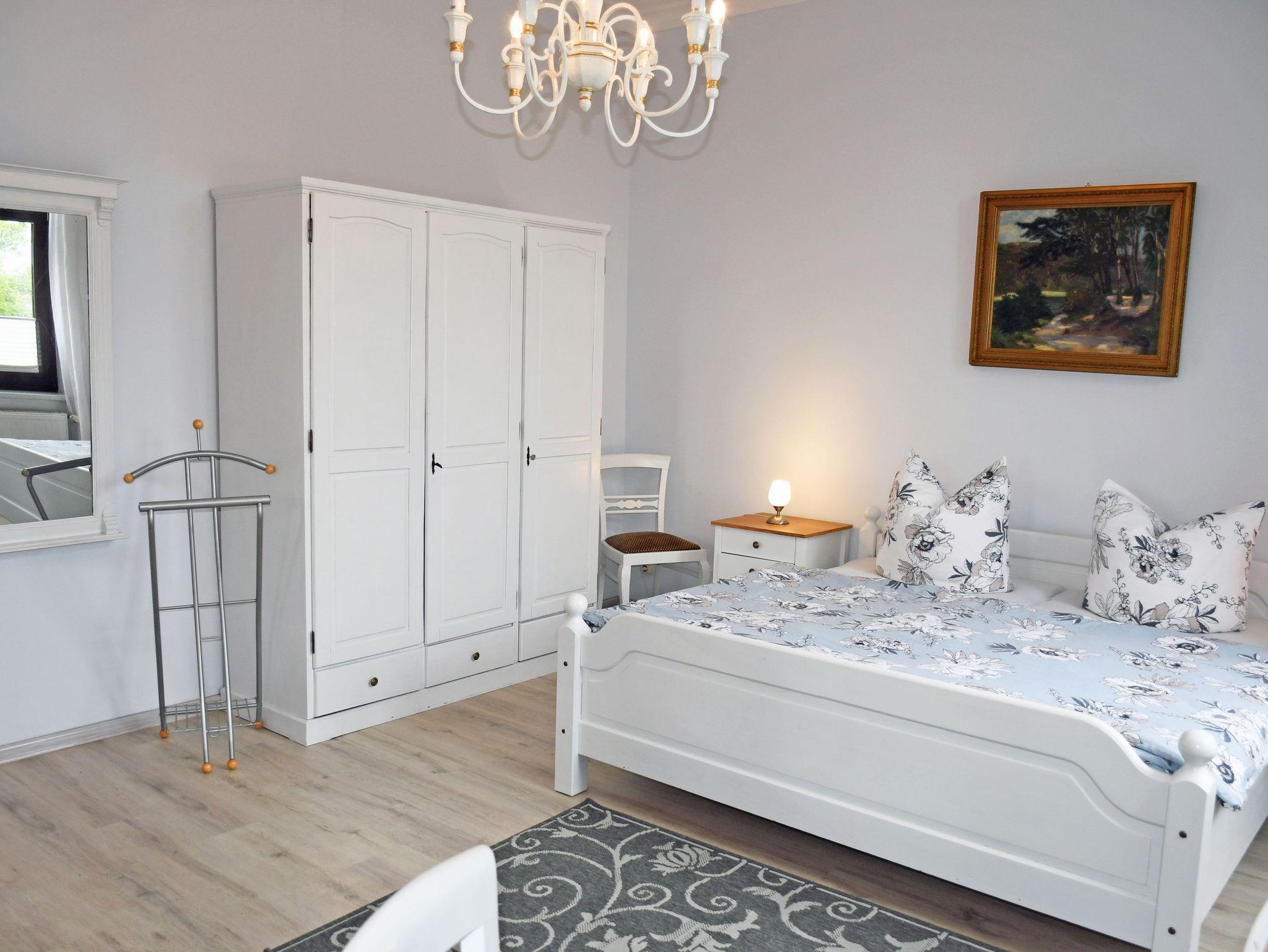 * Schlafzimmer mit einem Doppelbett (180 x 200 cm), großem Kleiderschrank und Nachtschränken